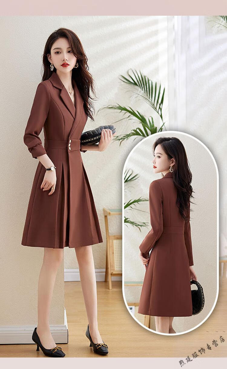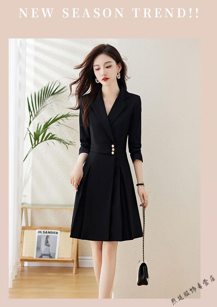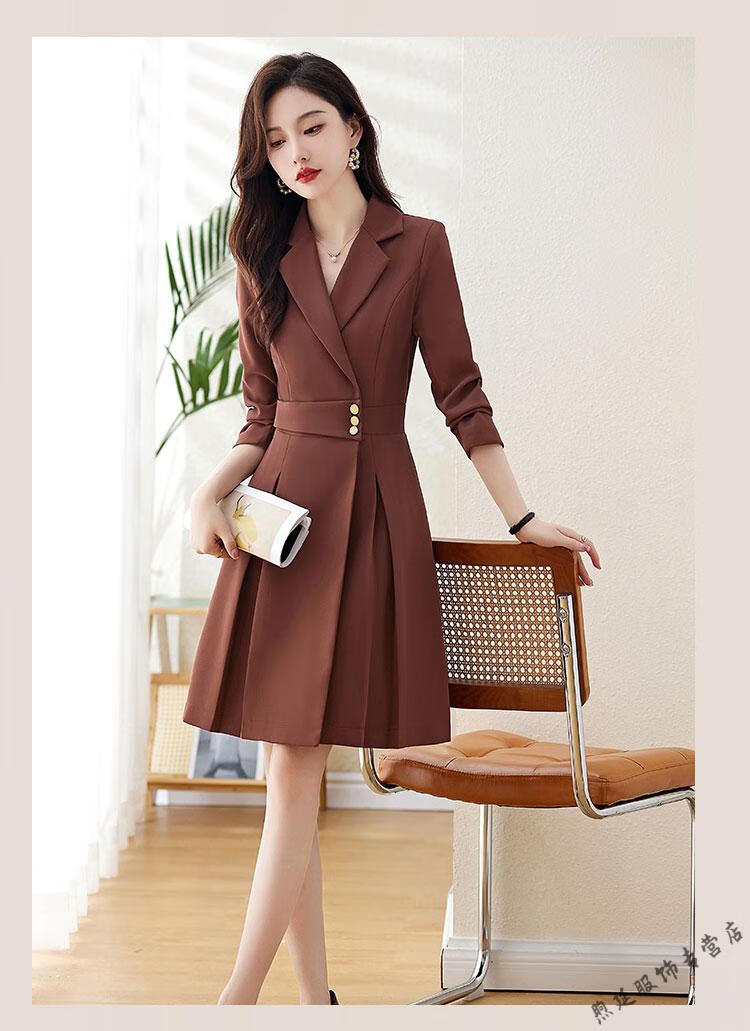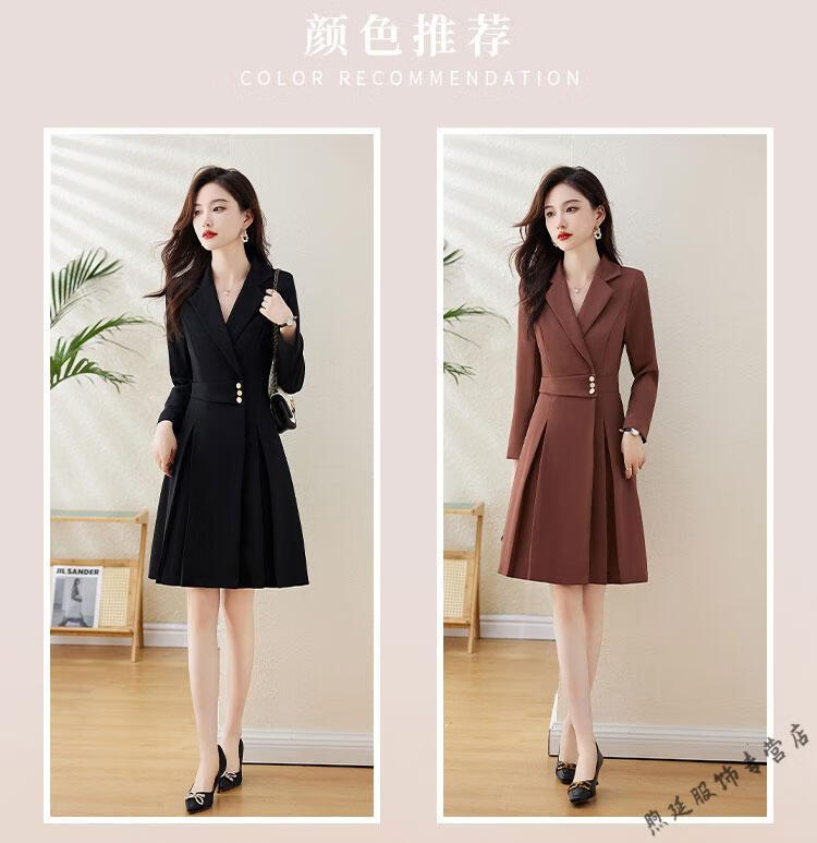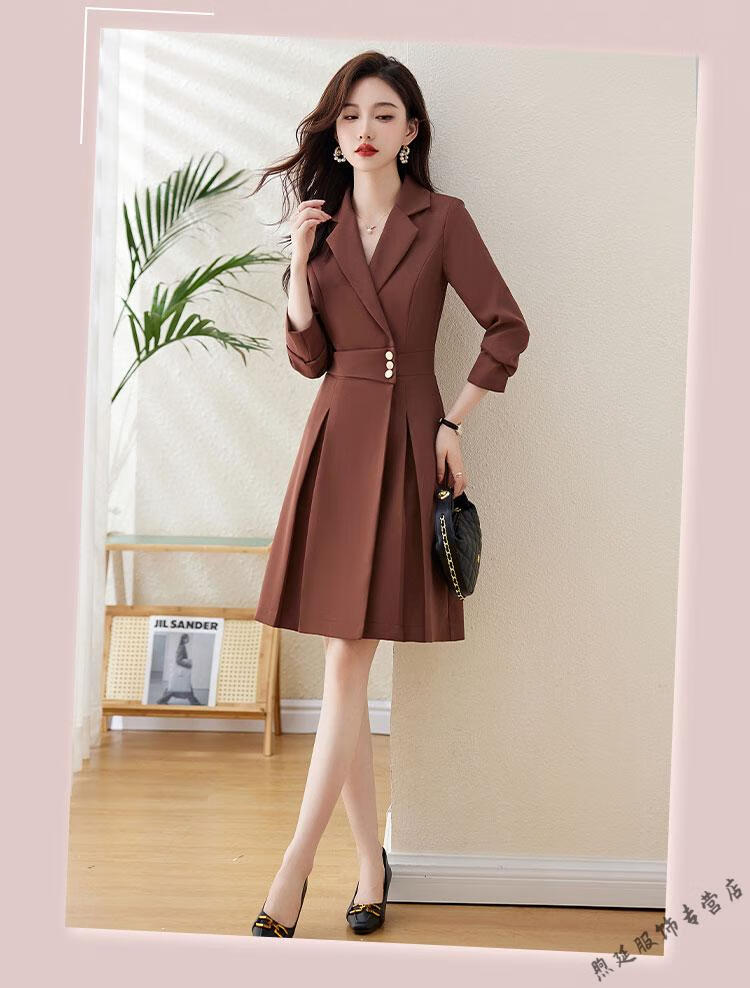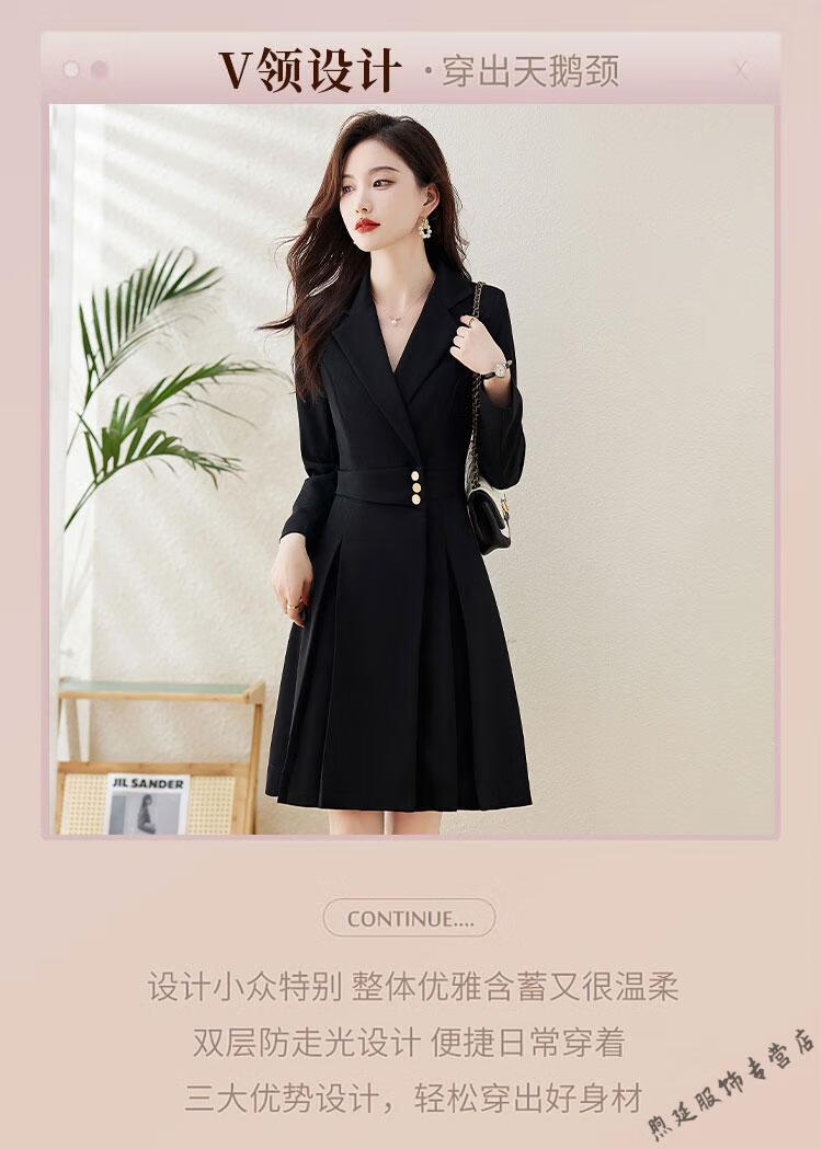 啄木鸟(TUCANO)西装连衣裙女小个子春秋款感气质名媛长袖修身职业装裙子25新款 米色 M