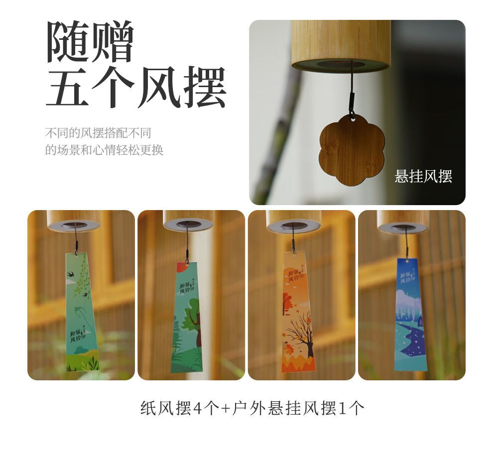 鲁儒四季和弦风铃唱诵风铃乐器瑜伽日式治愈系疗愈风铃竹风铃手工铃铛 【八音】四季-春风