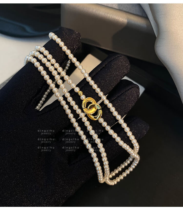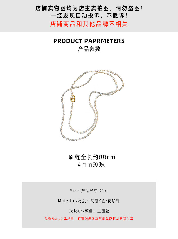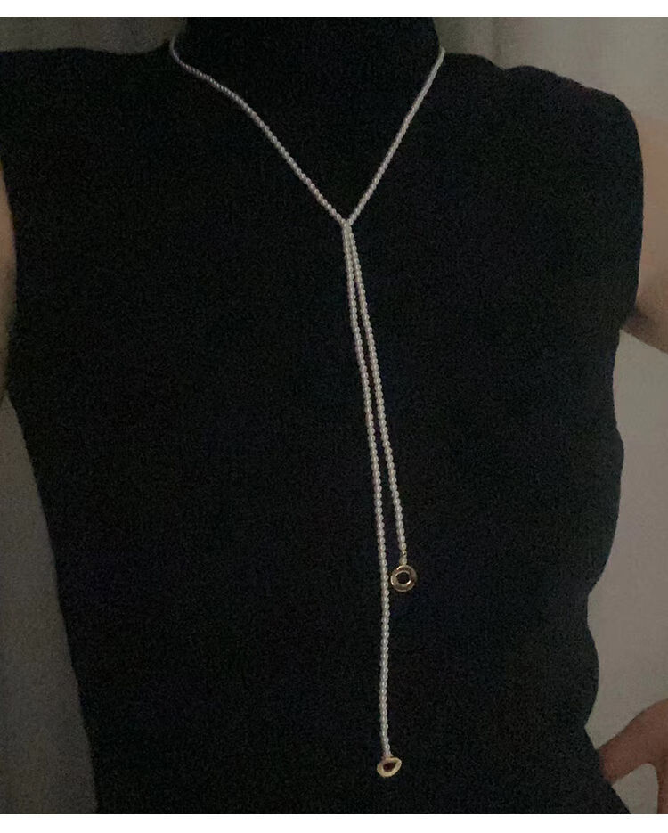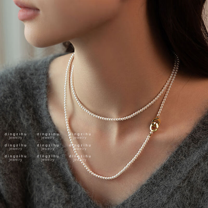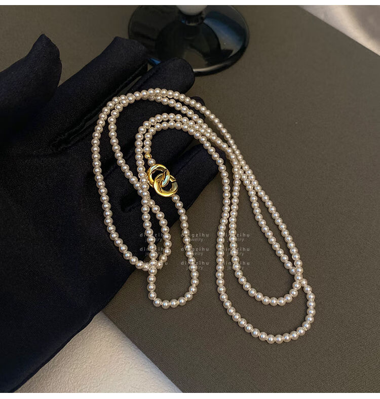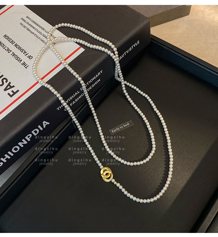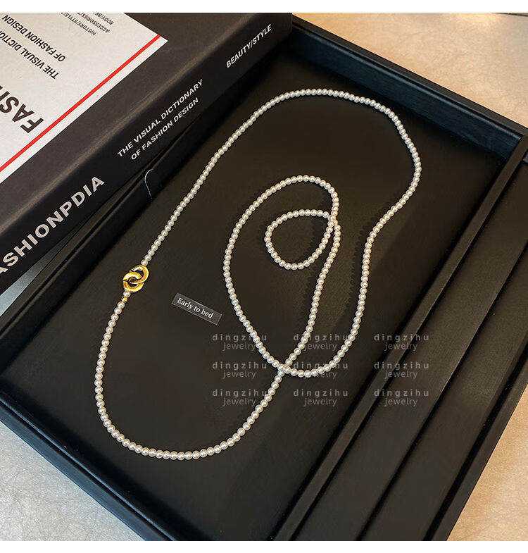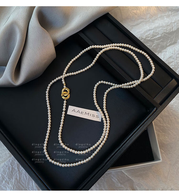 桓缘洋施家珠珍珠项链女2024新款秋冬轻奢感颈链长款叠戴毛衣链珠珍珠项 长约88c