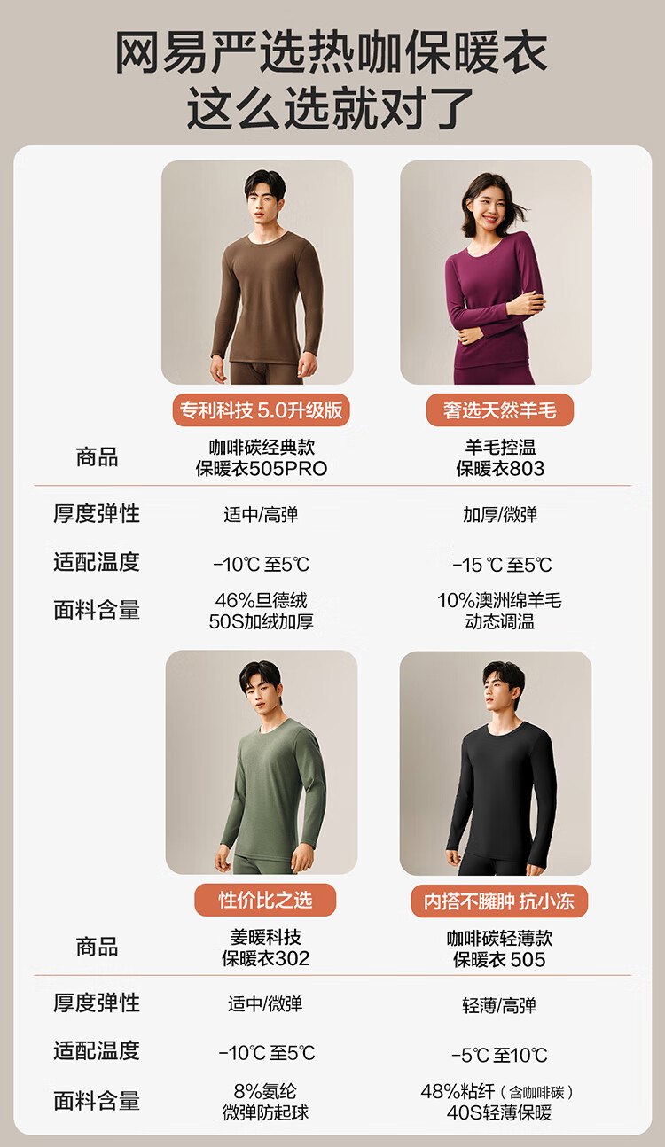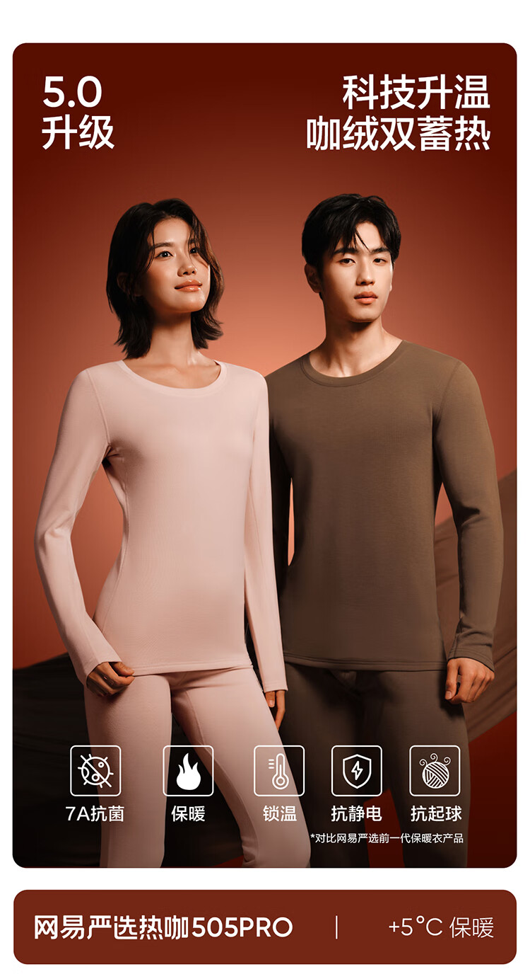 网易严选热咖505PRO加绒加厚保暖内衣46%德绒咖啡碳7A抗菌230g秋衣秋裤 A款7A抑菌-石涅黑-男 XL