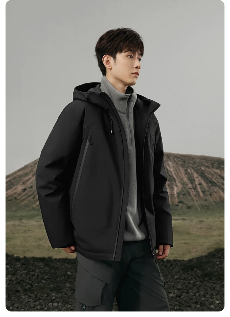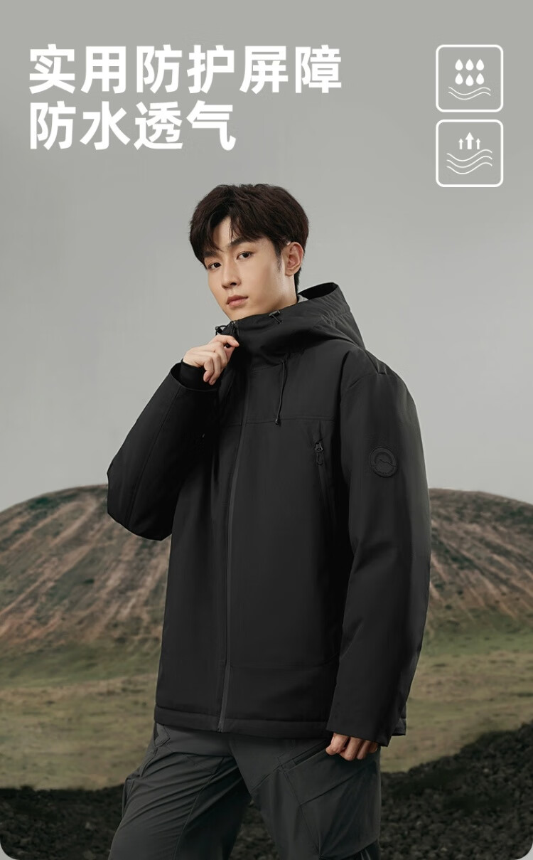 鸭鸭时尚【新山系系列】陈哲远同款羽绒服男短款纯色保暖厚外套A 基础黑色 S 90-110斤