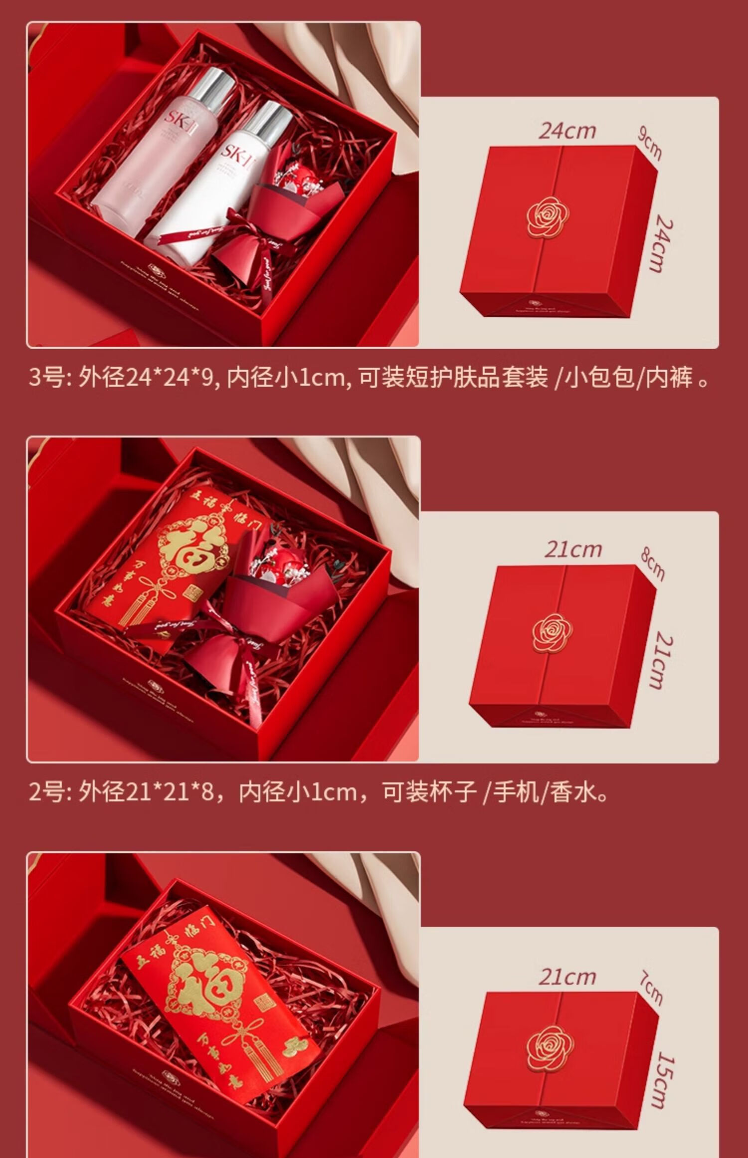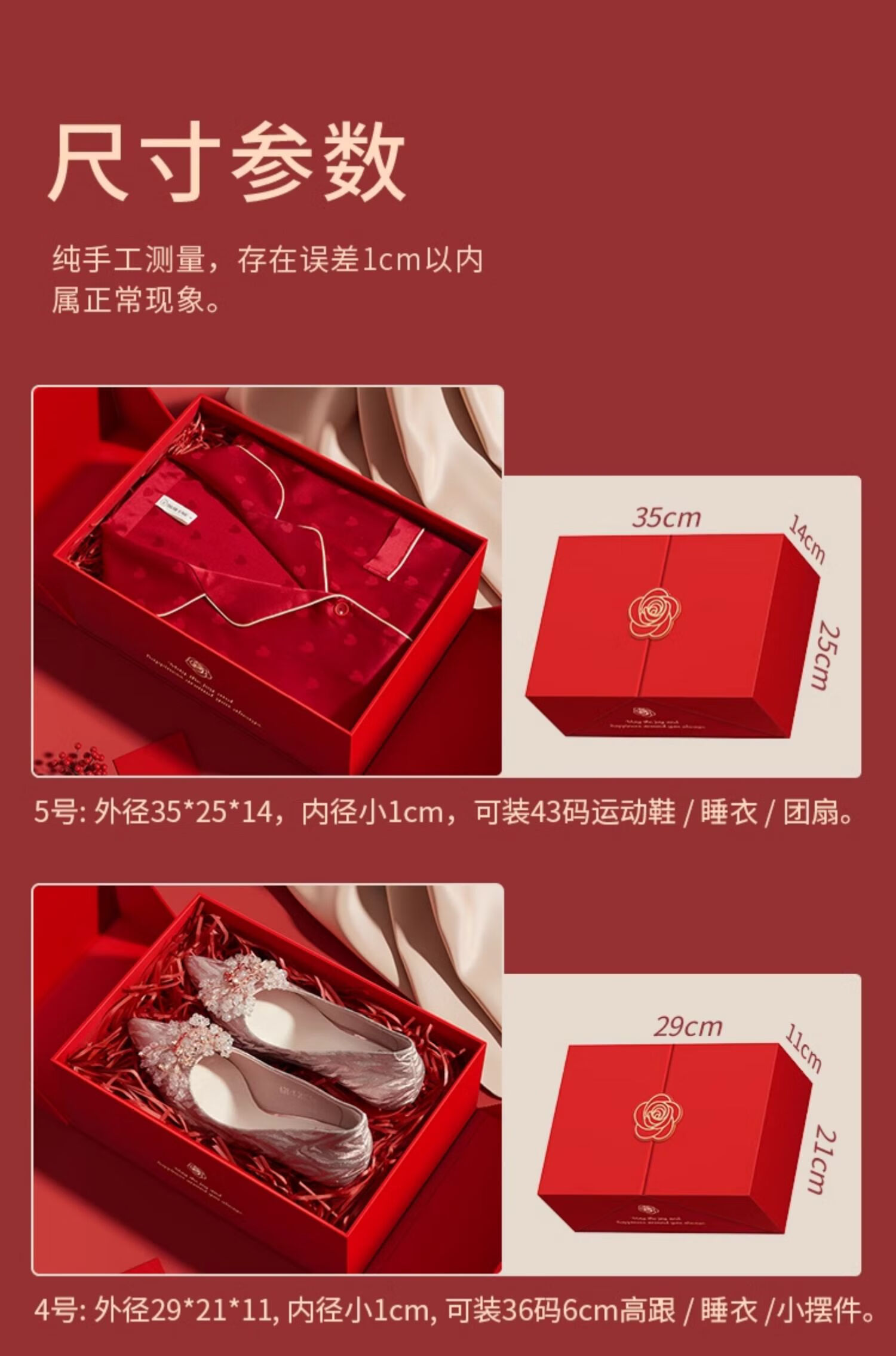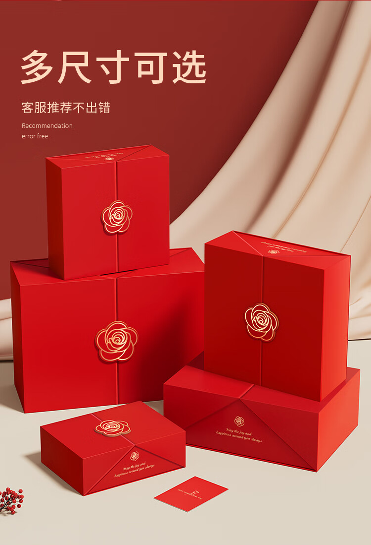 礼美达结婚红色礼盒空盒子生日礼物盒礼品盒新婚伴手礼高级感惊喜包装盒 礼物盒+拉菲草+灯+小喜字+礼袋 5号35*25*14cm(可装鞋子/团扇)
