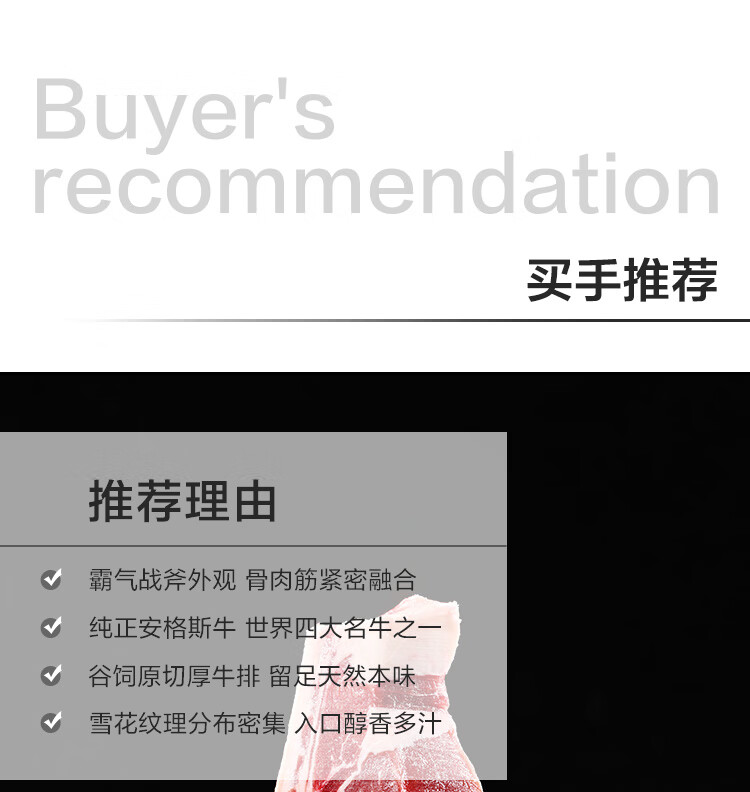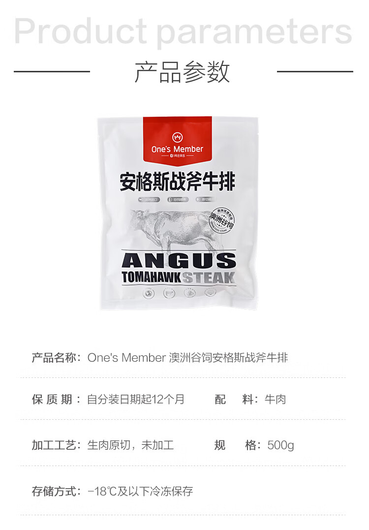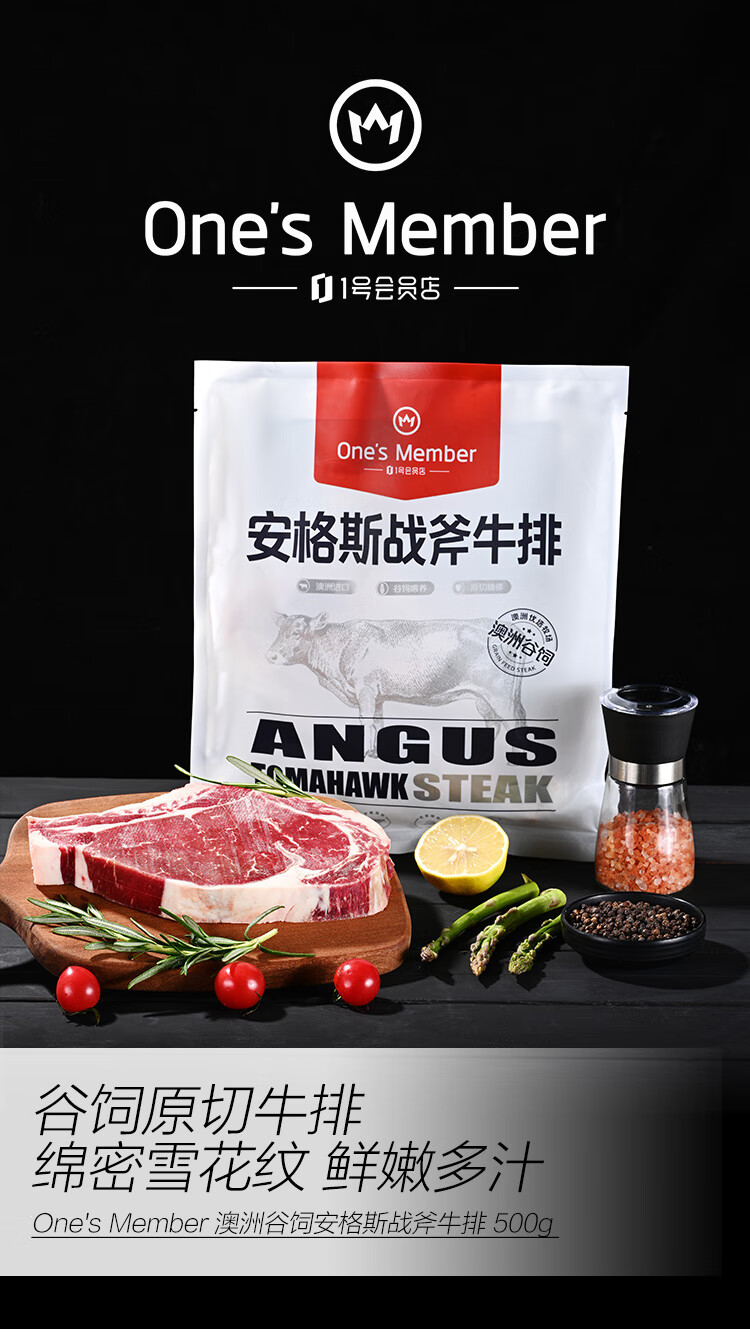 1号会员店 澳洲谷饲安格斯战斧牛排 1斤 生鲜牛肉 谷饲原切牛排 烧烤食材