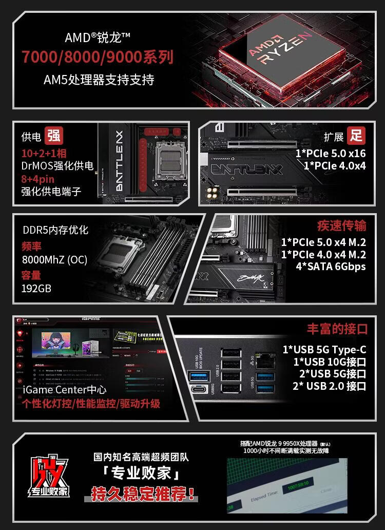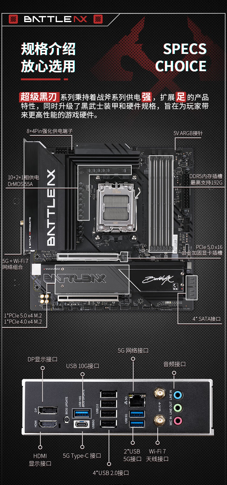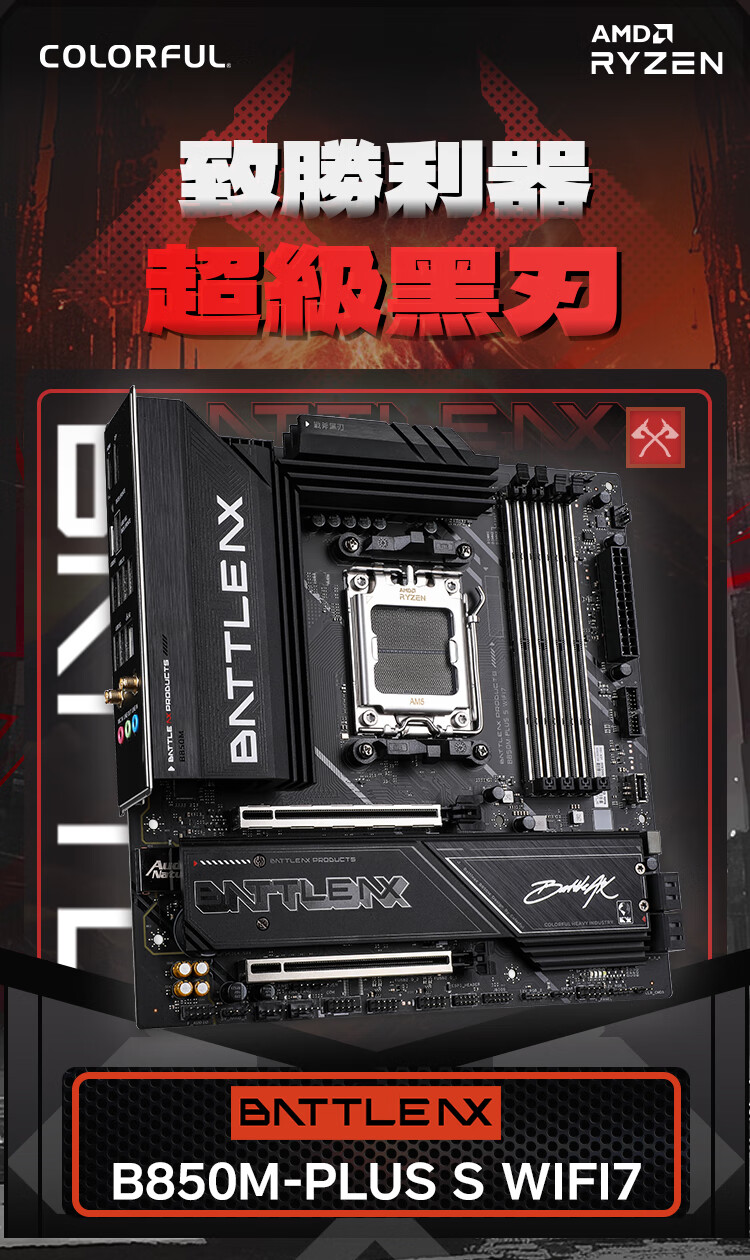 七彩虹(Colorful)BATTLE-AX B850M-PLUS S WIFI7 V14 超级黑刃 主板支持CPU 7800X3D/9800X3D/9700X(AMD B850/ AM5)