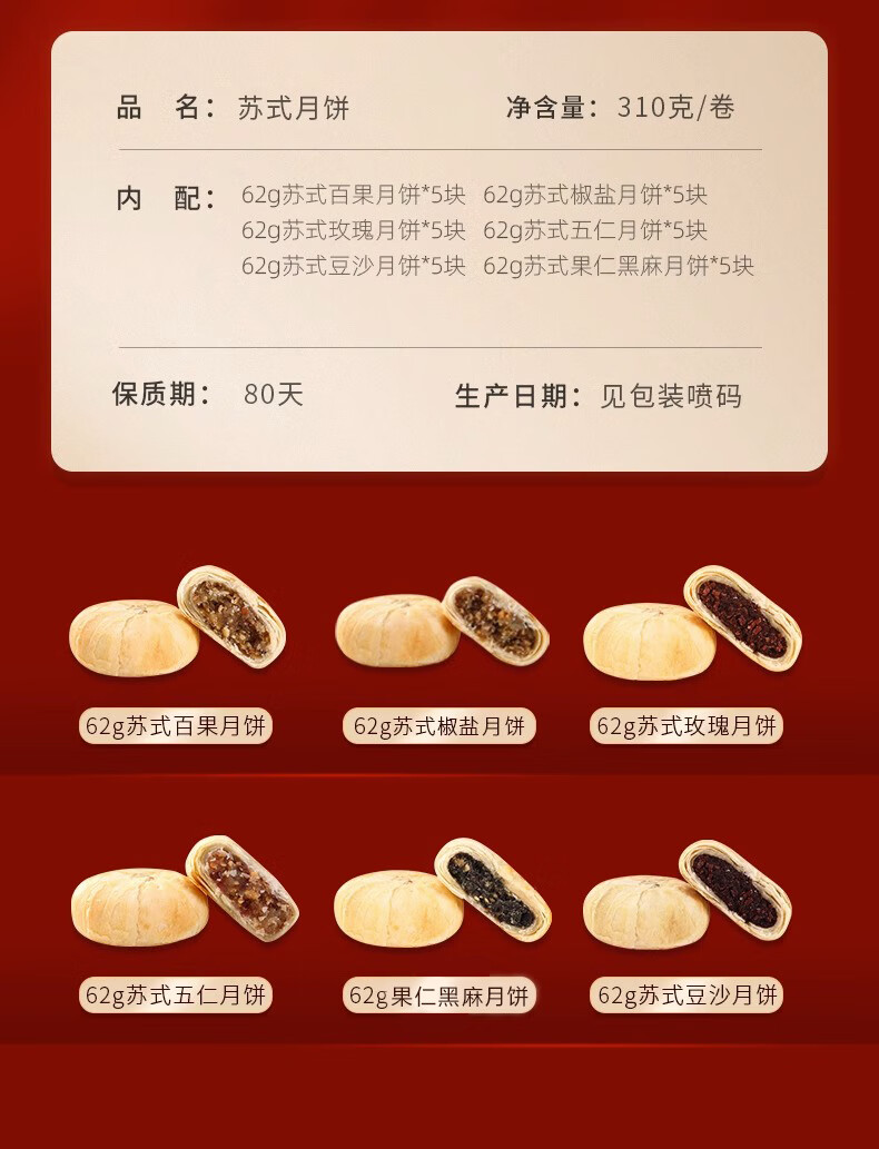 稻香村稻香村月饼苏式五仁月饼玫瑰豆沙传统老式酥饼糕点零食品小吃休闲 310g苏式果仁黑麻月饼