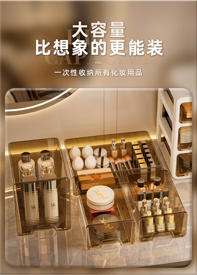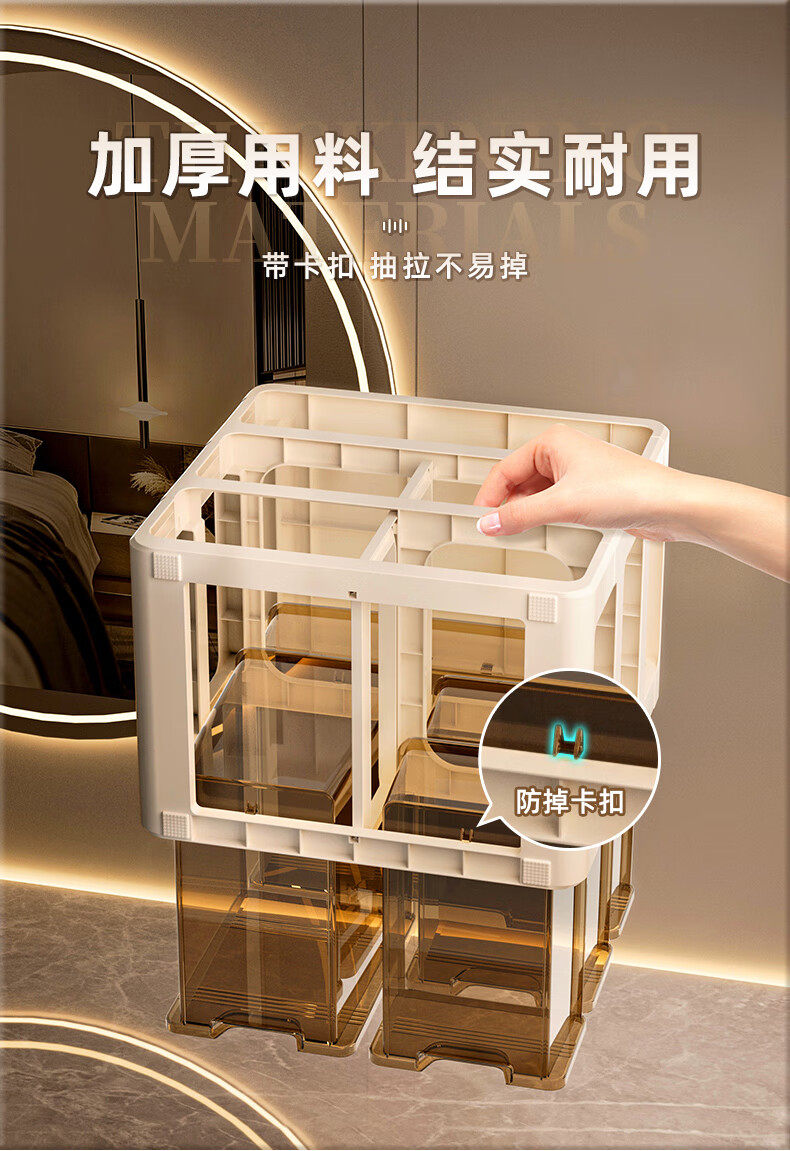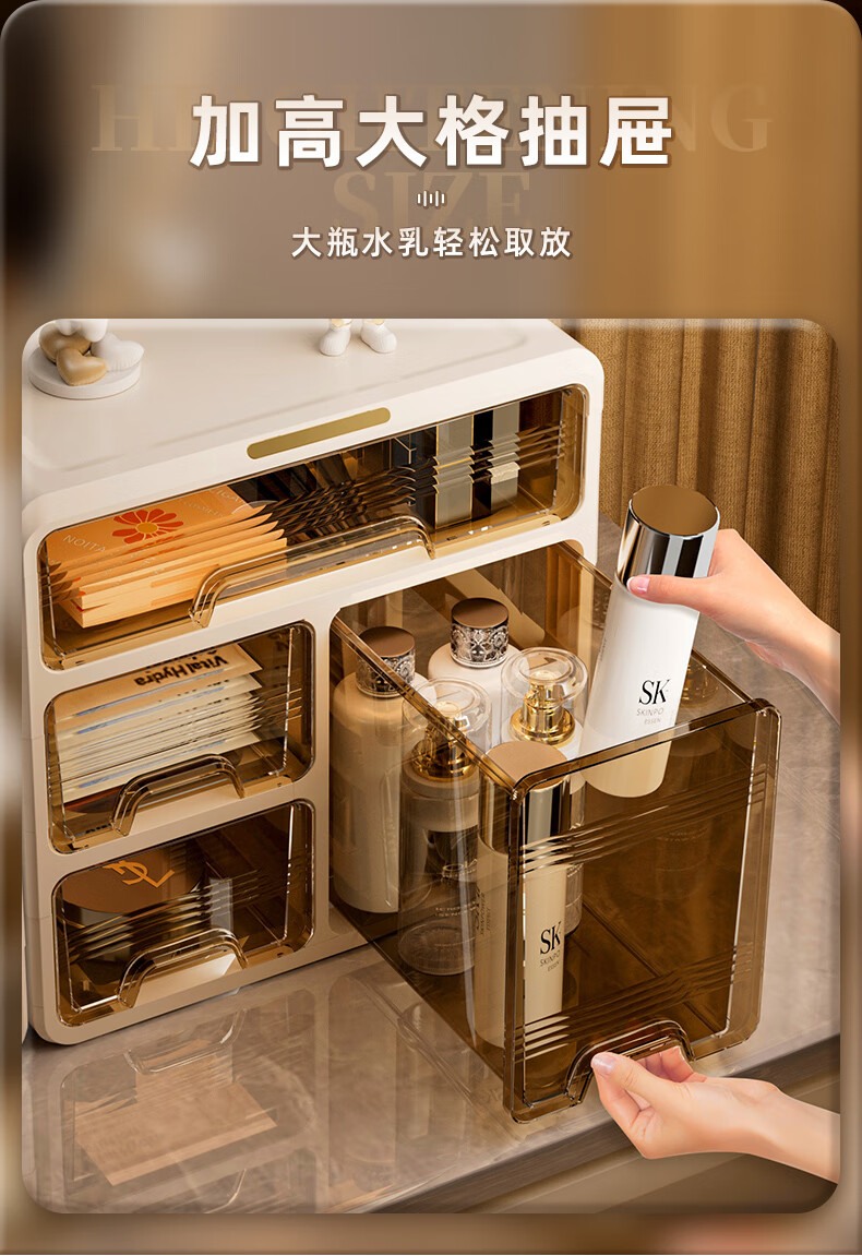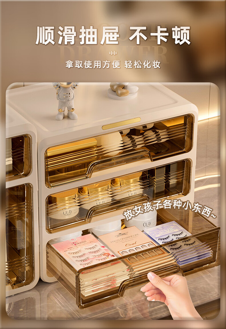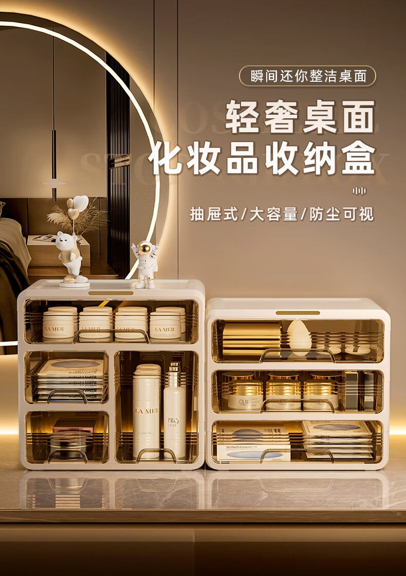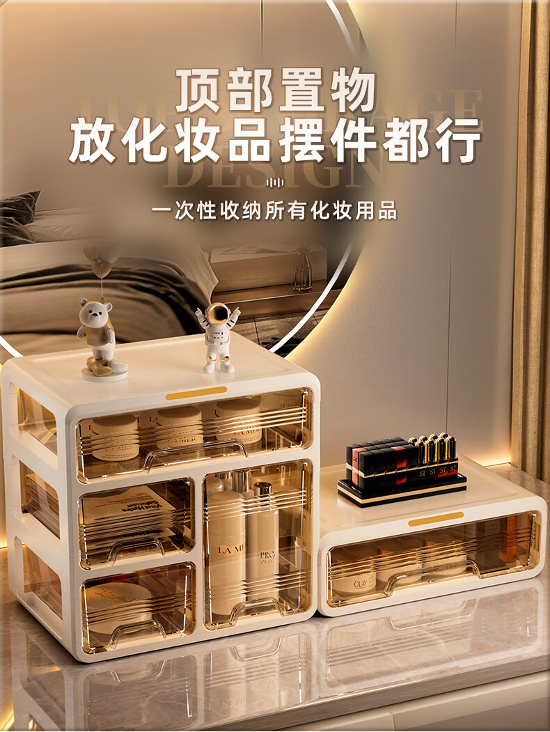 昂图化妆品收纳盒防尘梳妆台桌面口红护肤品整理箱高级感抽屉式置物架 升级六层款-奶白 免装抽屉顺滑