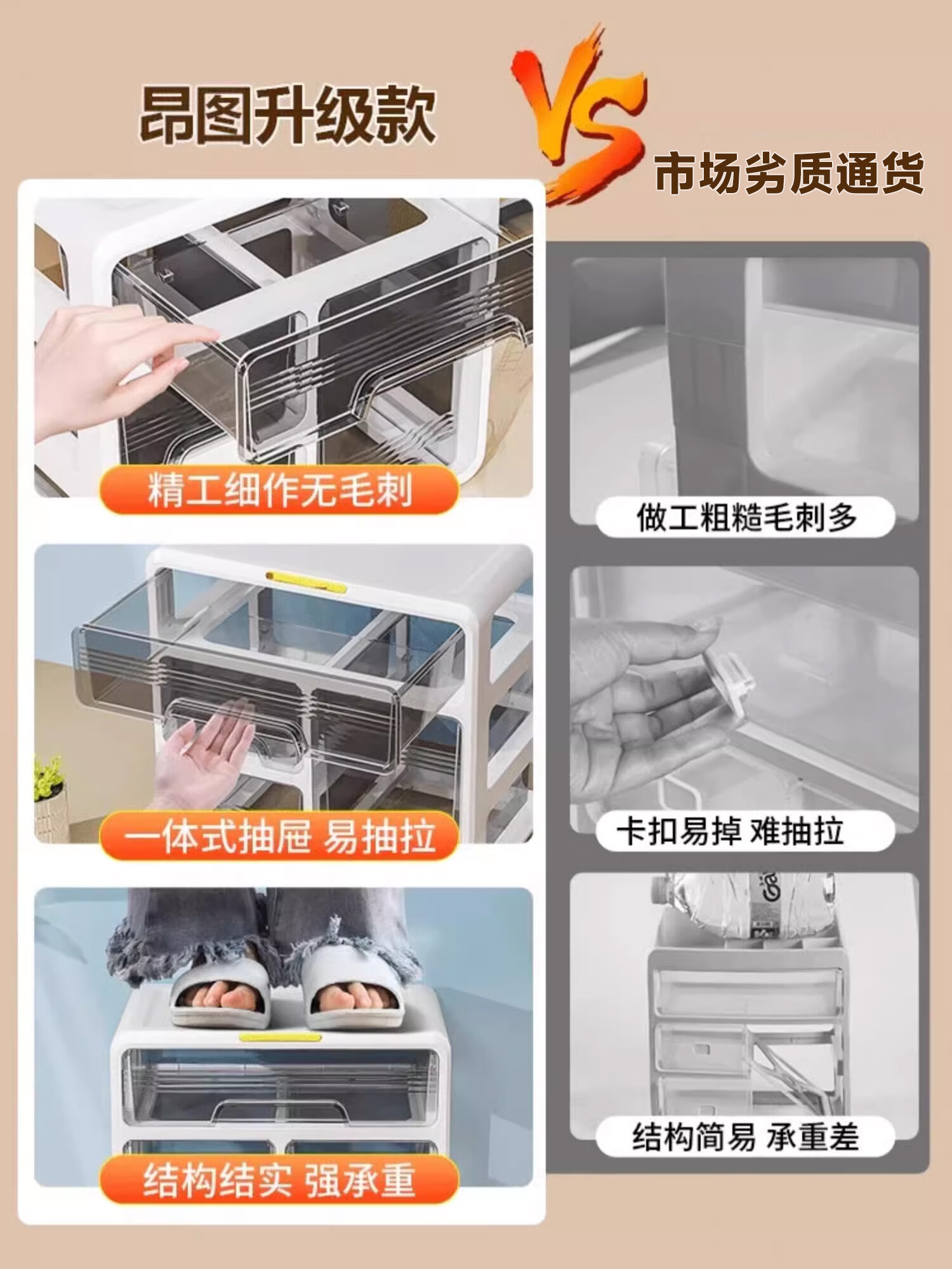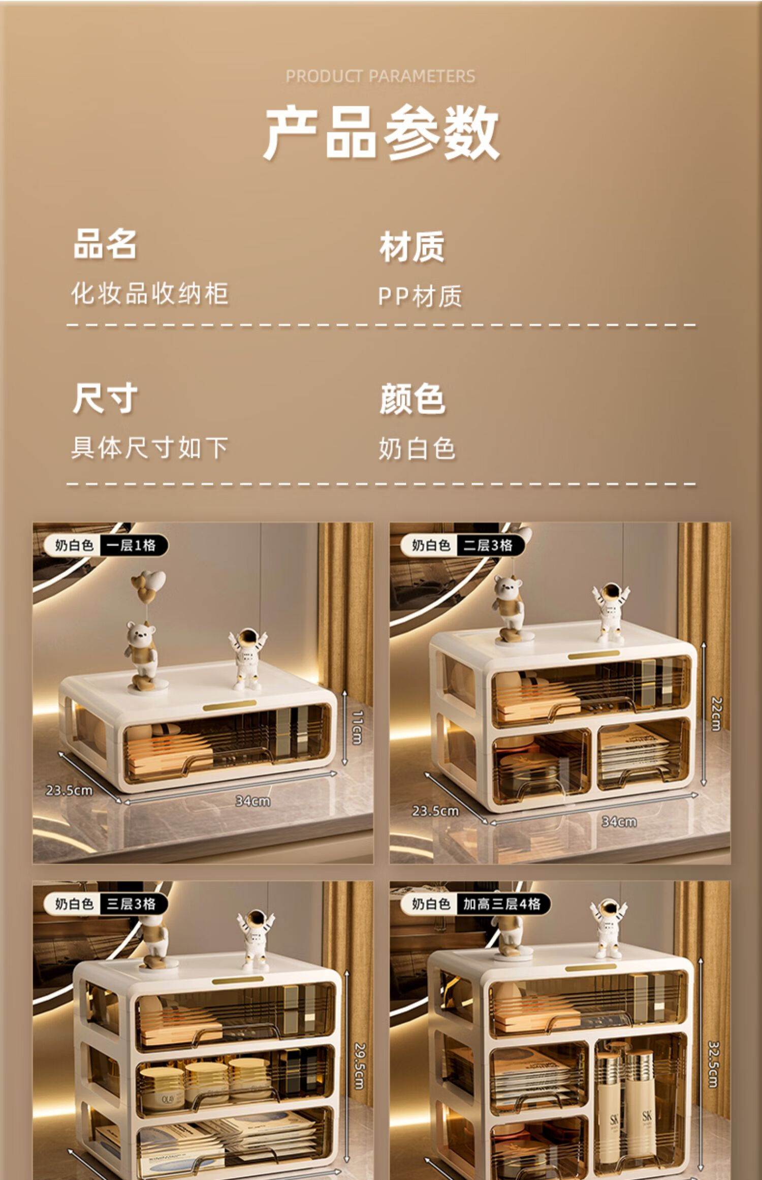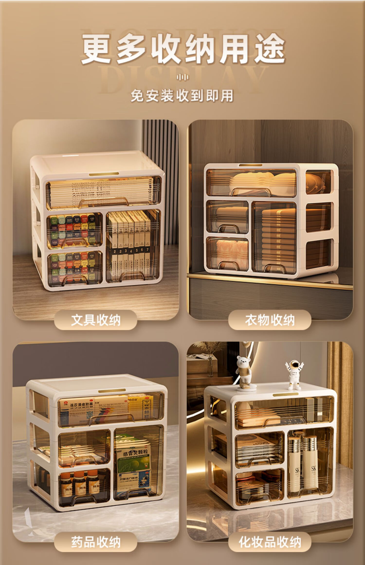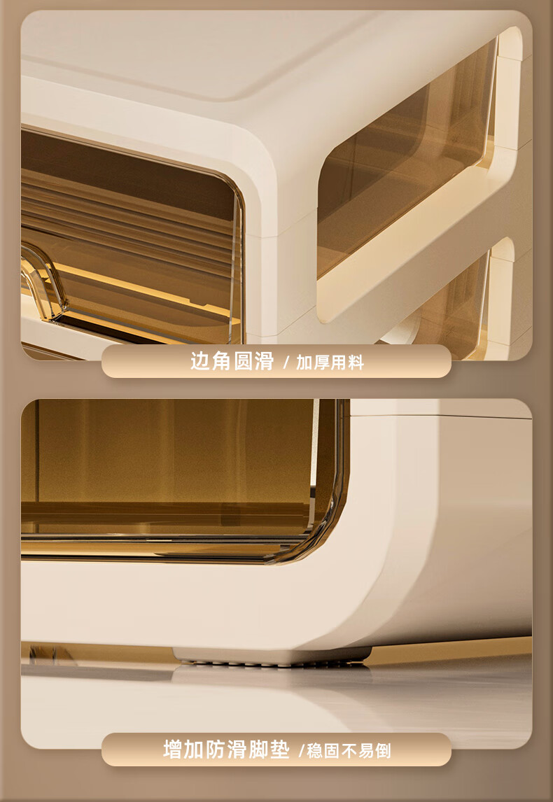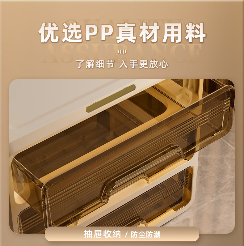 昂图化妆品收纳盒防尘梳妆台桌面口红护肤品整理箱高级感抽屉式置物架 升级六层款-奶白 免装抽屉顺滑