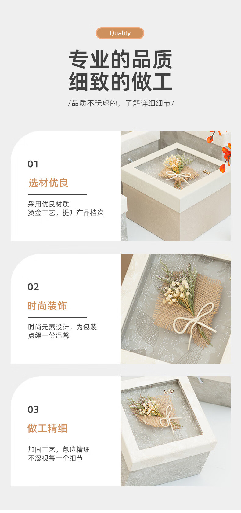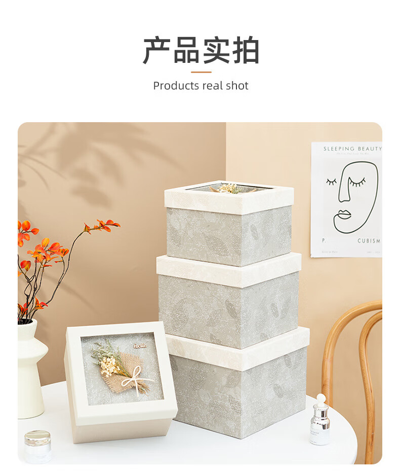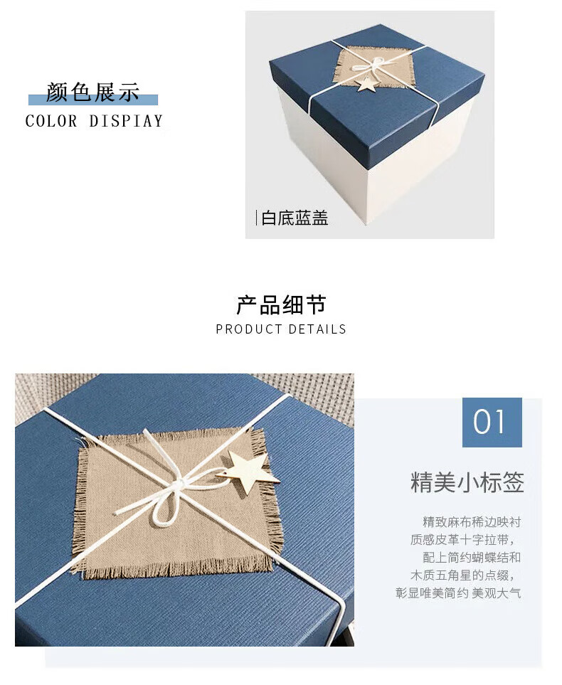 木丁丁生日礼物盒空盒礼品包装盒大号礼品袋结婚伴手礼盒盒子七夕节礼物 香草礼物盒【21.5*21.5*16cm】