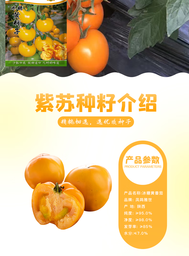 凤鸣雅世老品种黄色西红柿种子沙瓤大田大棚番茄种子冰糖黄柿子种子100粒