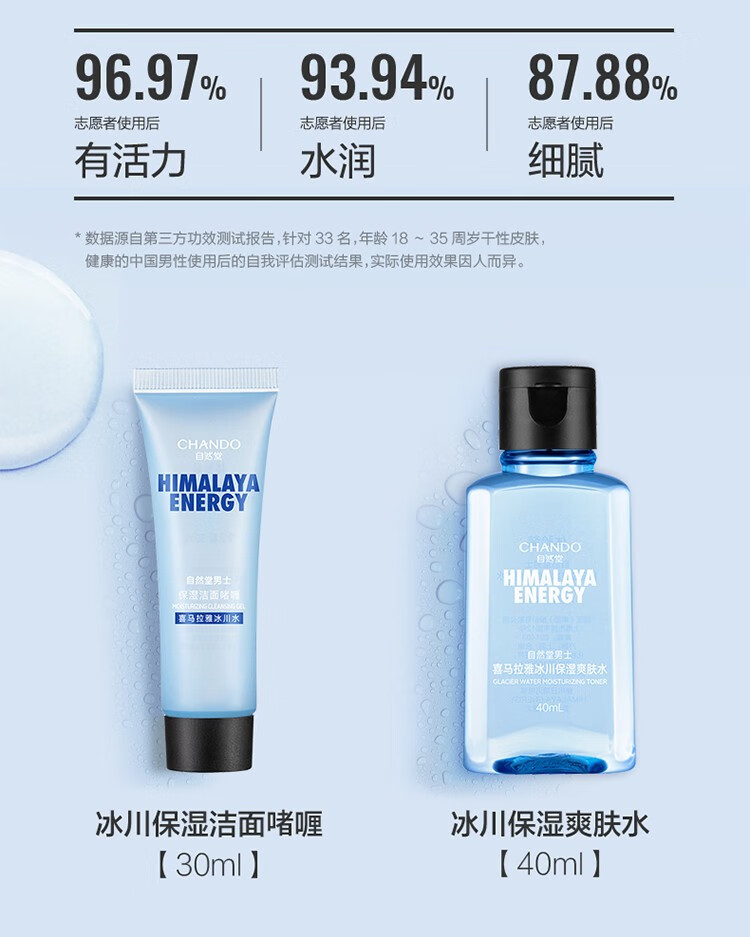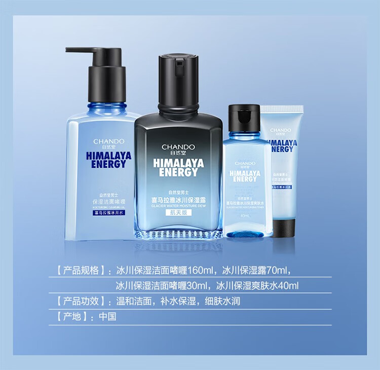 自然堂(CHANDO)自然堂男士护肤品套装清爽补水保湿男生冰川礼盒送男友 礼盒 啫喱190+保湿露70+爽肤水40