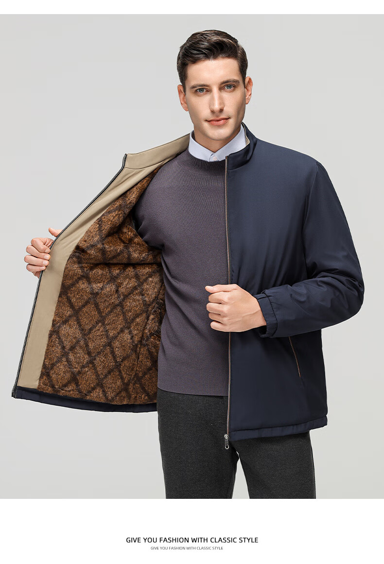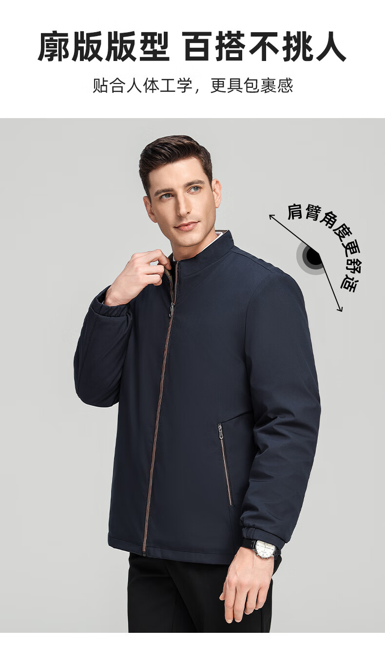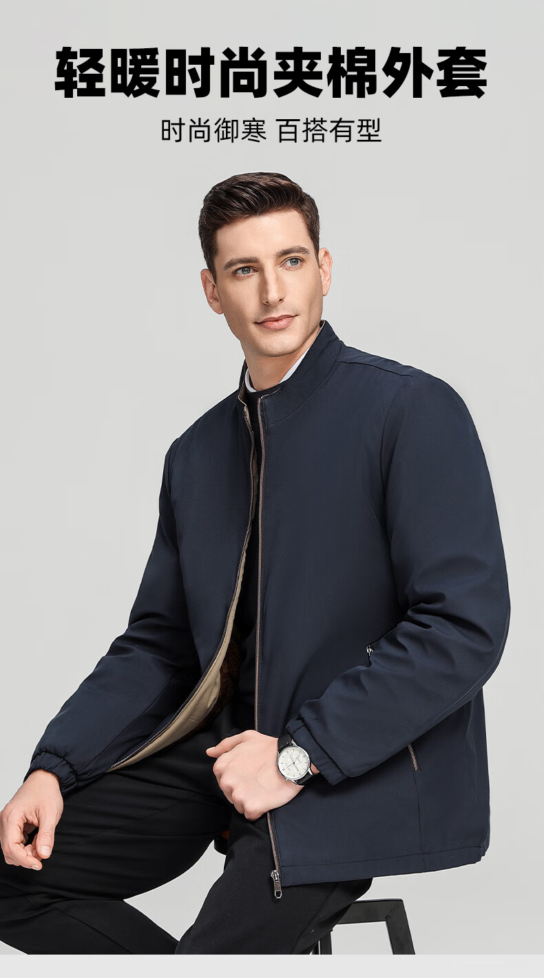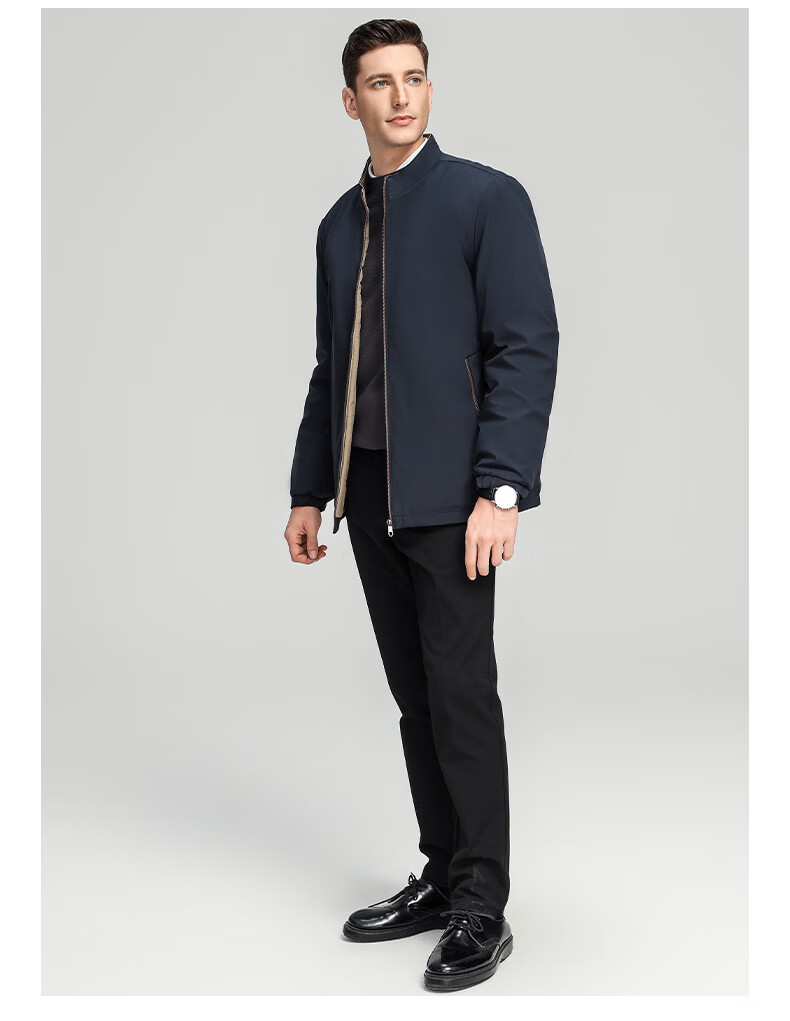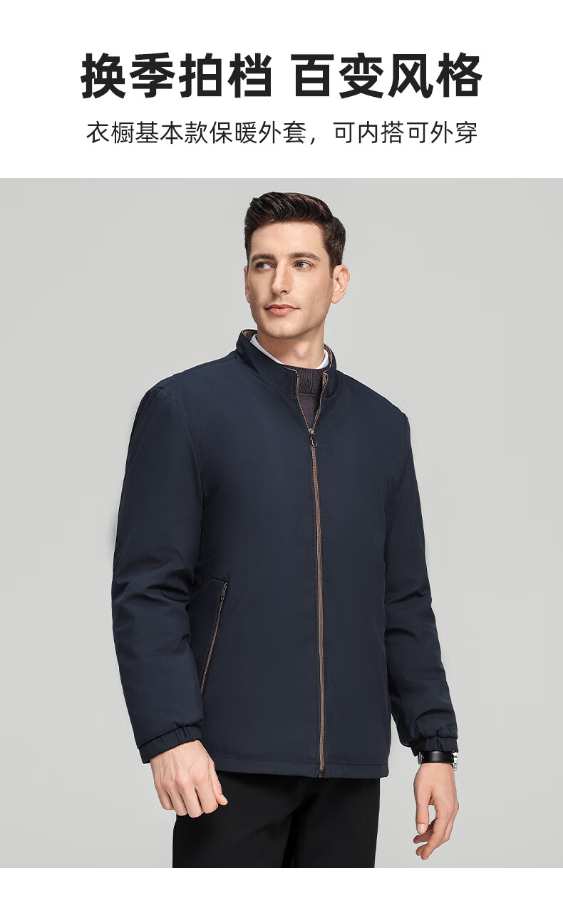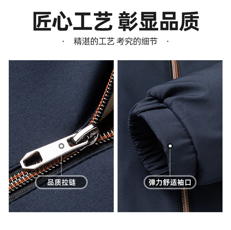 罗蒙加绒加厚夹克棉服男2025秋冬新款中老年干部装保暖棉外套 24601R藏青【翻领款】 XL (180) (建议120-140斤)