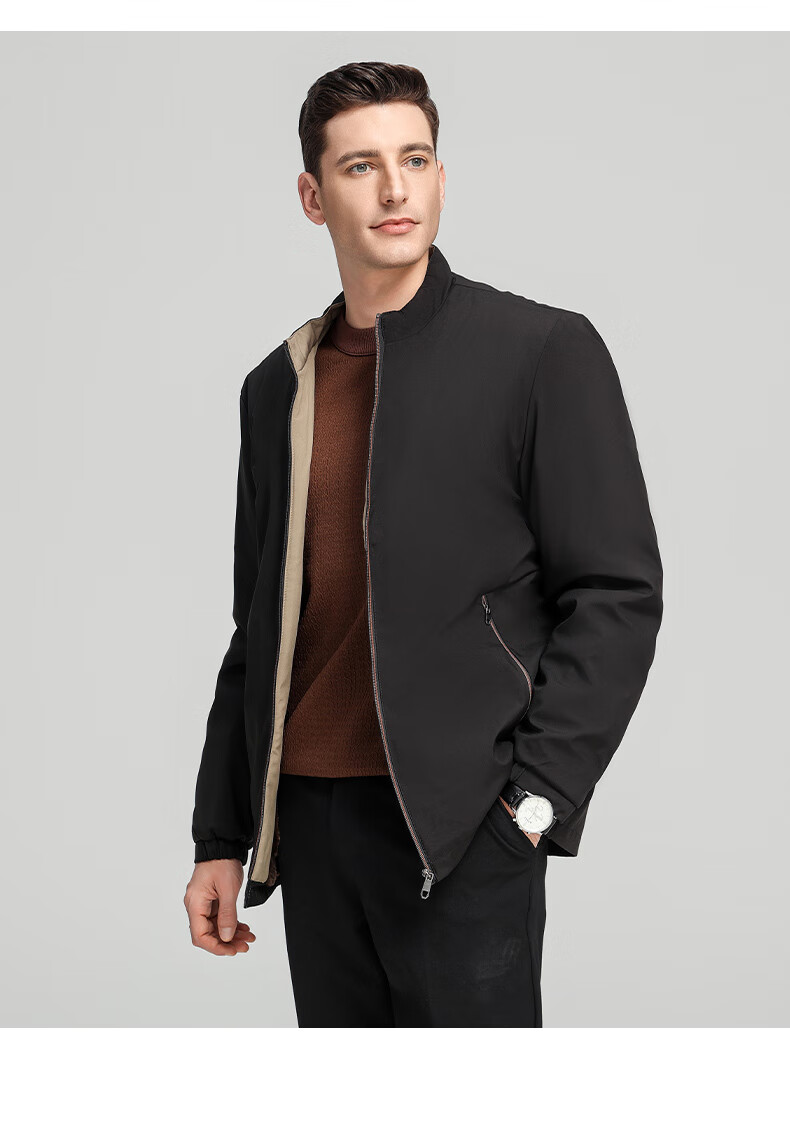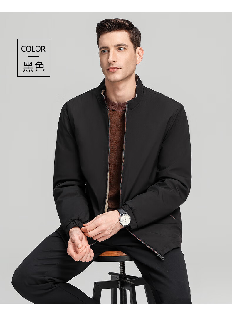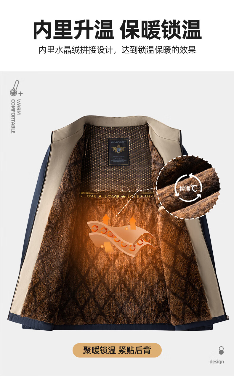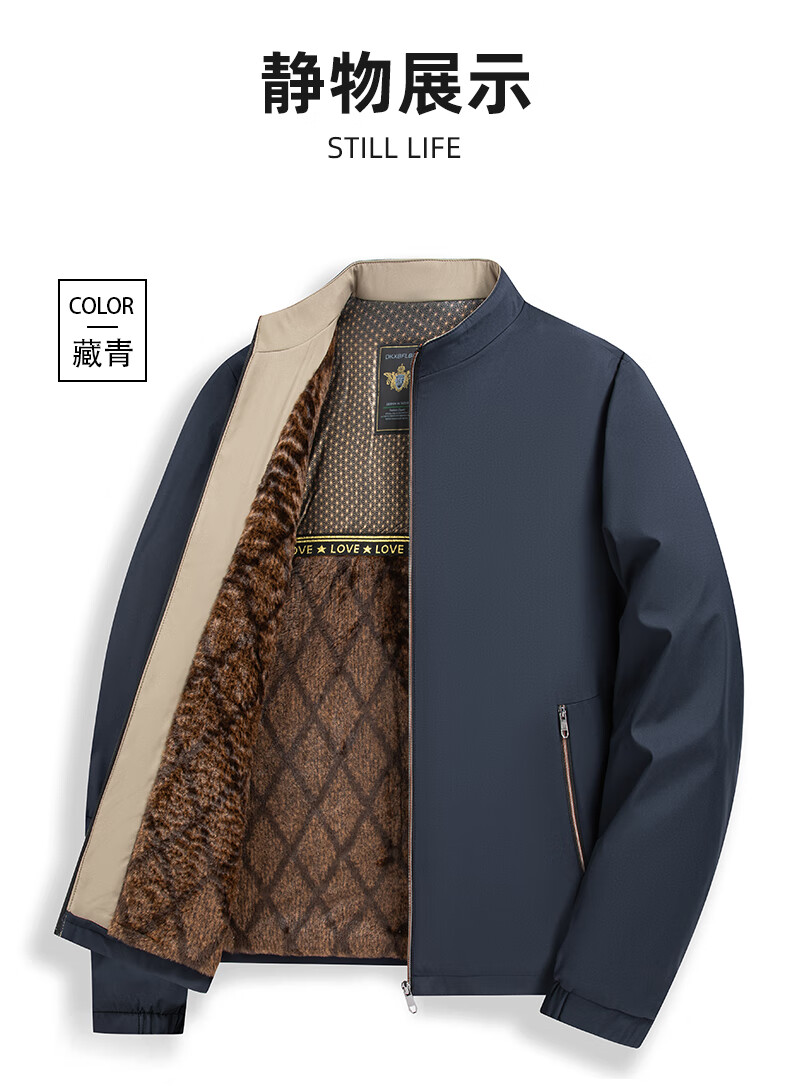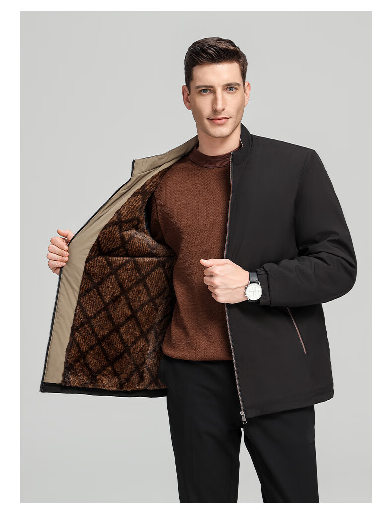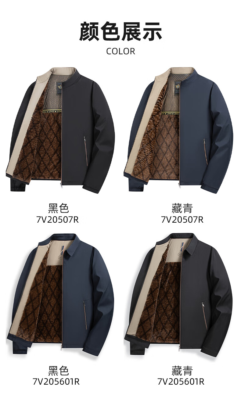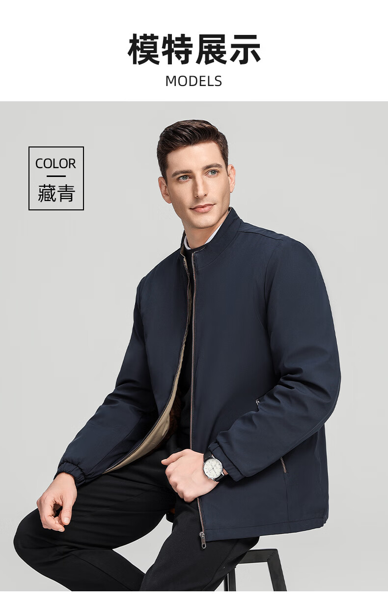 罗蒙加绒加厚夹克棉服男2025秋冬新款中老年干部装保暖棉外套 24601R藏青【翻领款】 XL (180) (建议120-140斤)