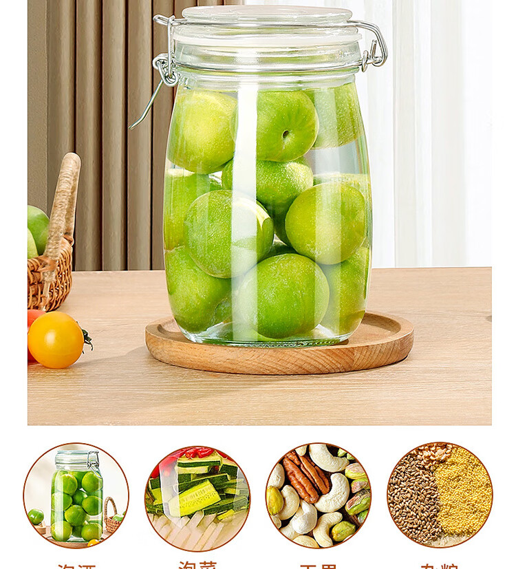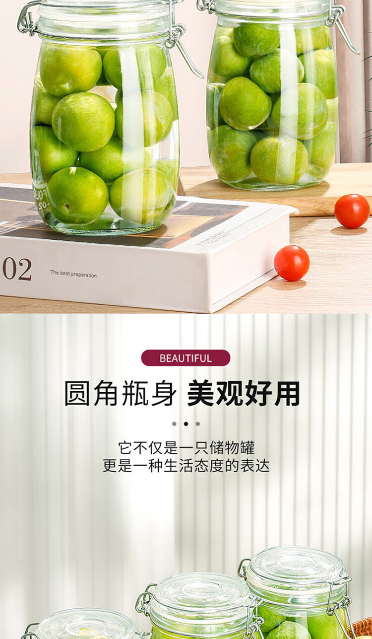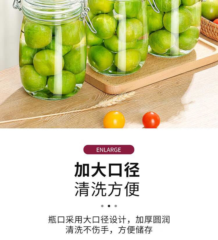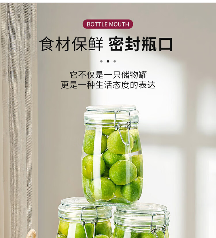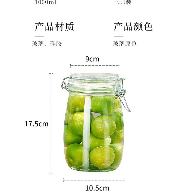 拜杰玻璃密封罐 3个装1000ml储物罐家用玻璃瓶泡酒瓶泡菜瓶腌腊八蒜罐