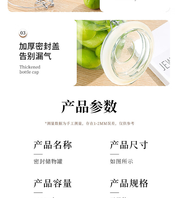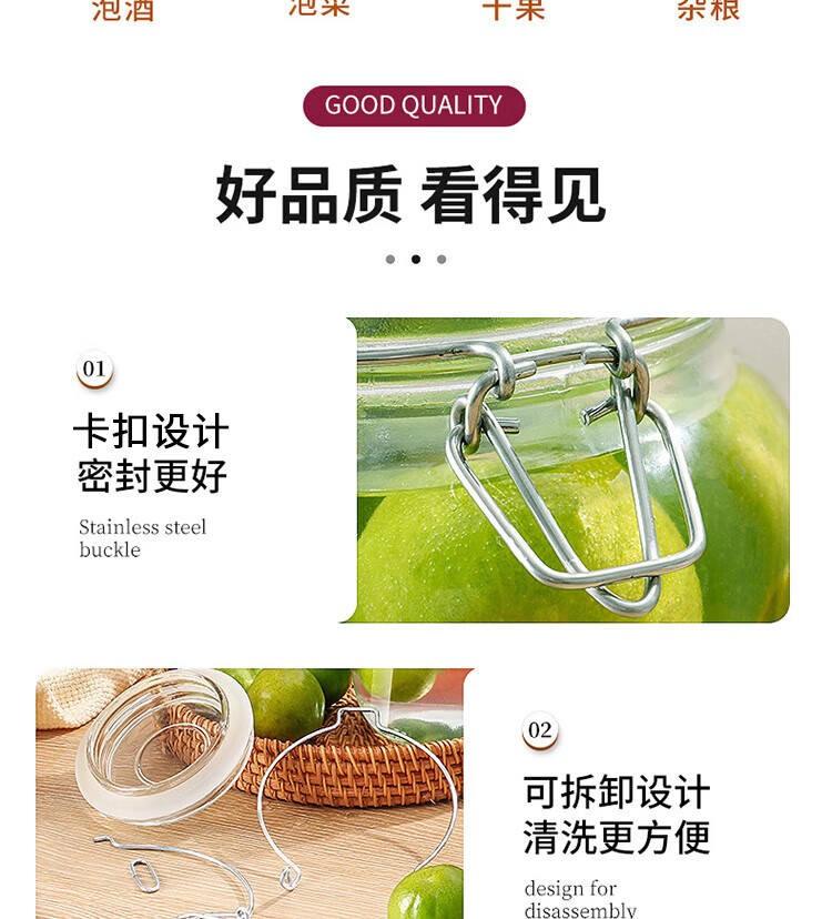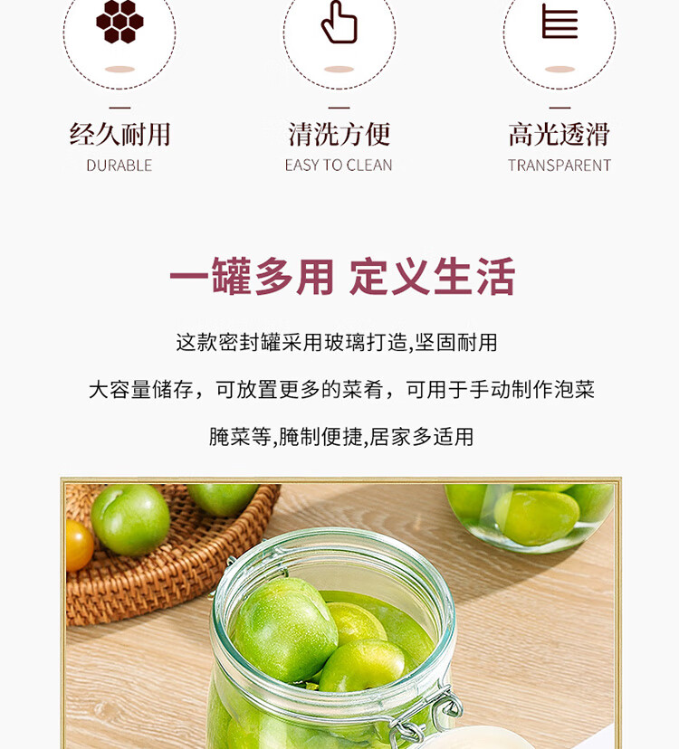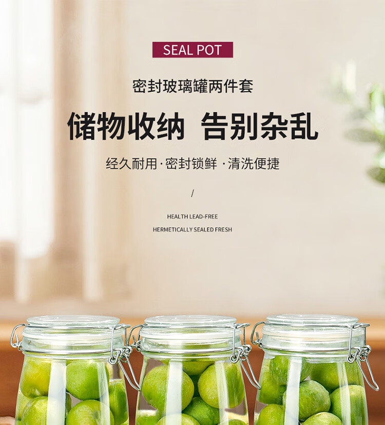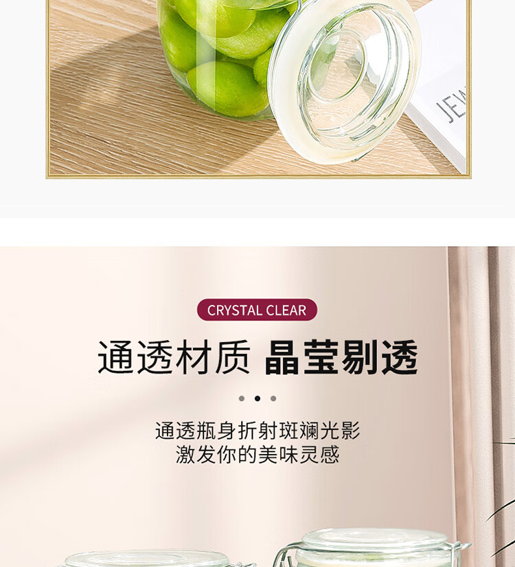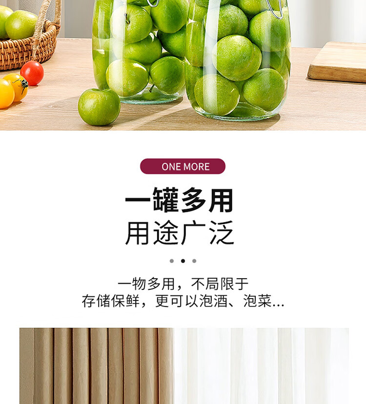 拜杰玻璃密封罐 3个装1000ml储物罐家用玻璃瓶泡酒瓶泡菜瓶腌腊八蒜罐