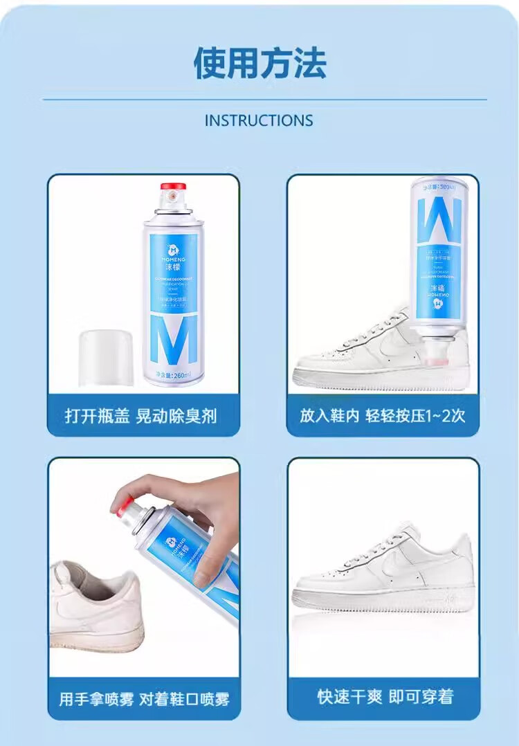 沫檬鞋子除臭喷雾剂 260ml*3银离子鞋袜去味球鞋柜杀菌抑菌运动鞋防臭