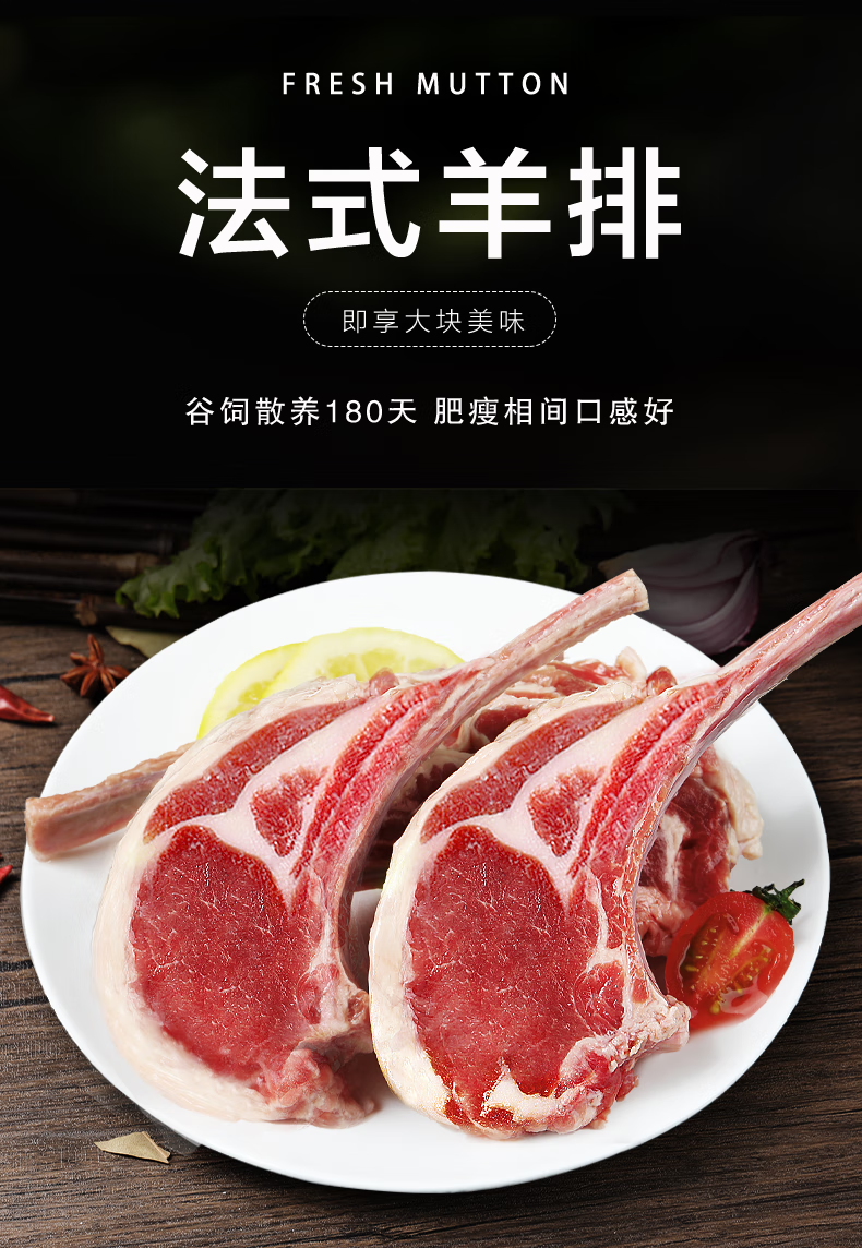缤鲜 内蒙原切羊排新鲜烧烤烤肉食材 法式羊排新鲜羊肉 战斧羊排商用 【原切精修羔羊小切】2斤净重