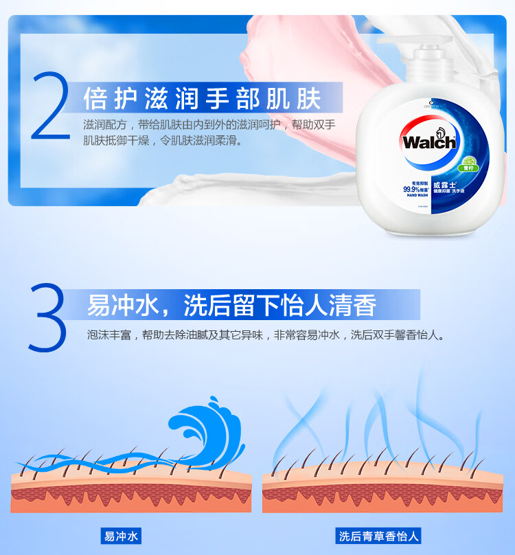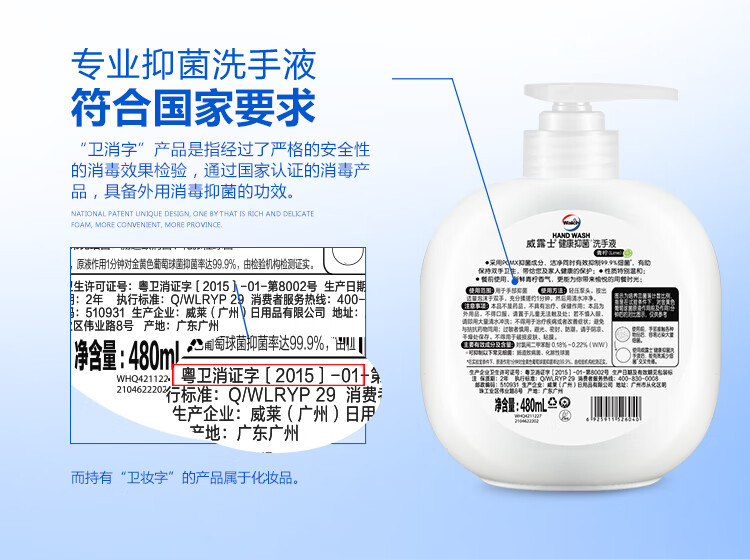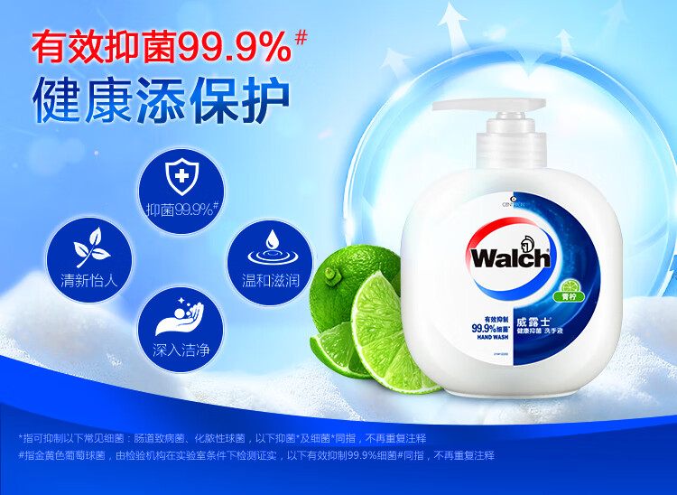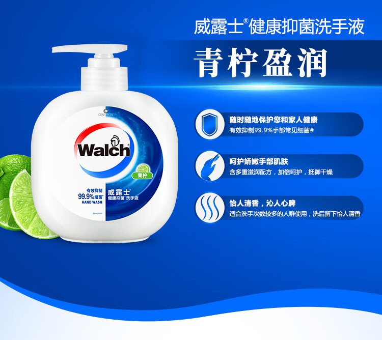 威露士健康抑菌洗手液青柠盈润480ml大瓶 杀菌99.9% 泡沫细腻易冲洗护手