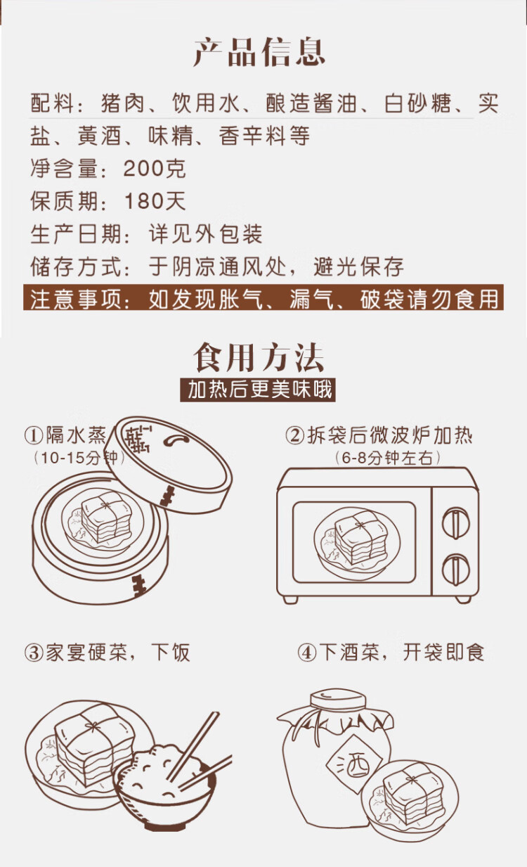 三珍斋 东坡肉200g 预制菜下酒菜 红烧五花肉 熟食腊味速食 中华老字号