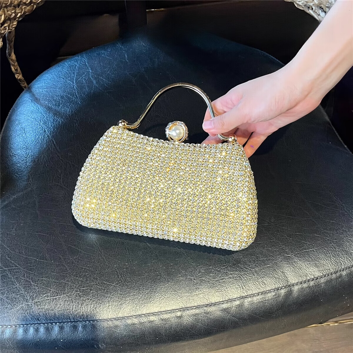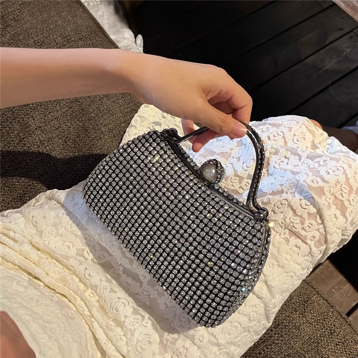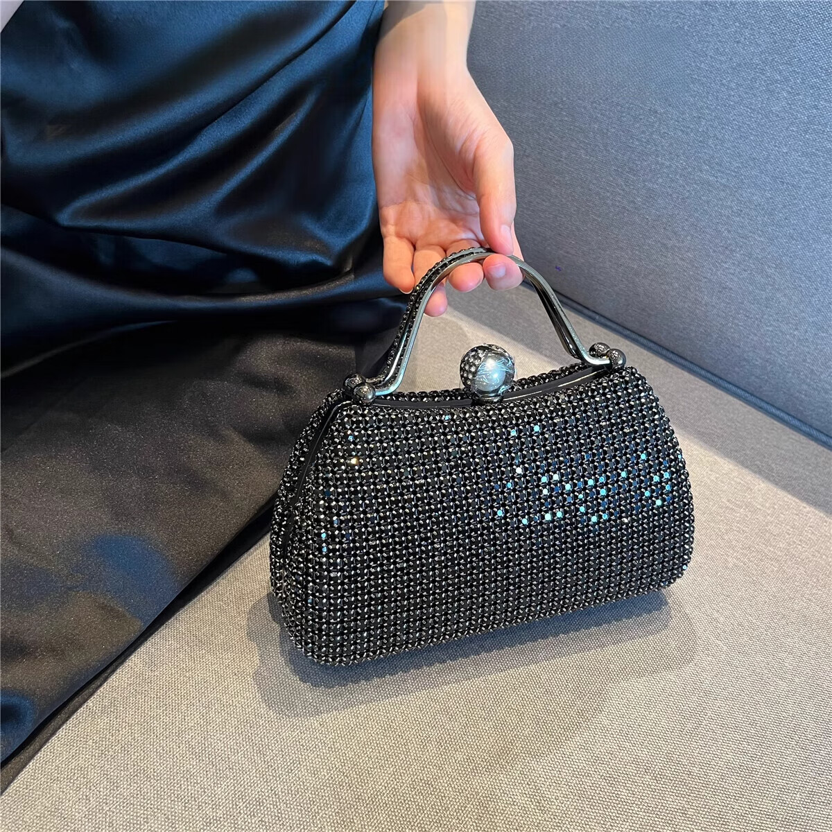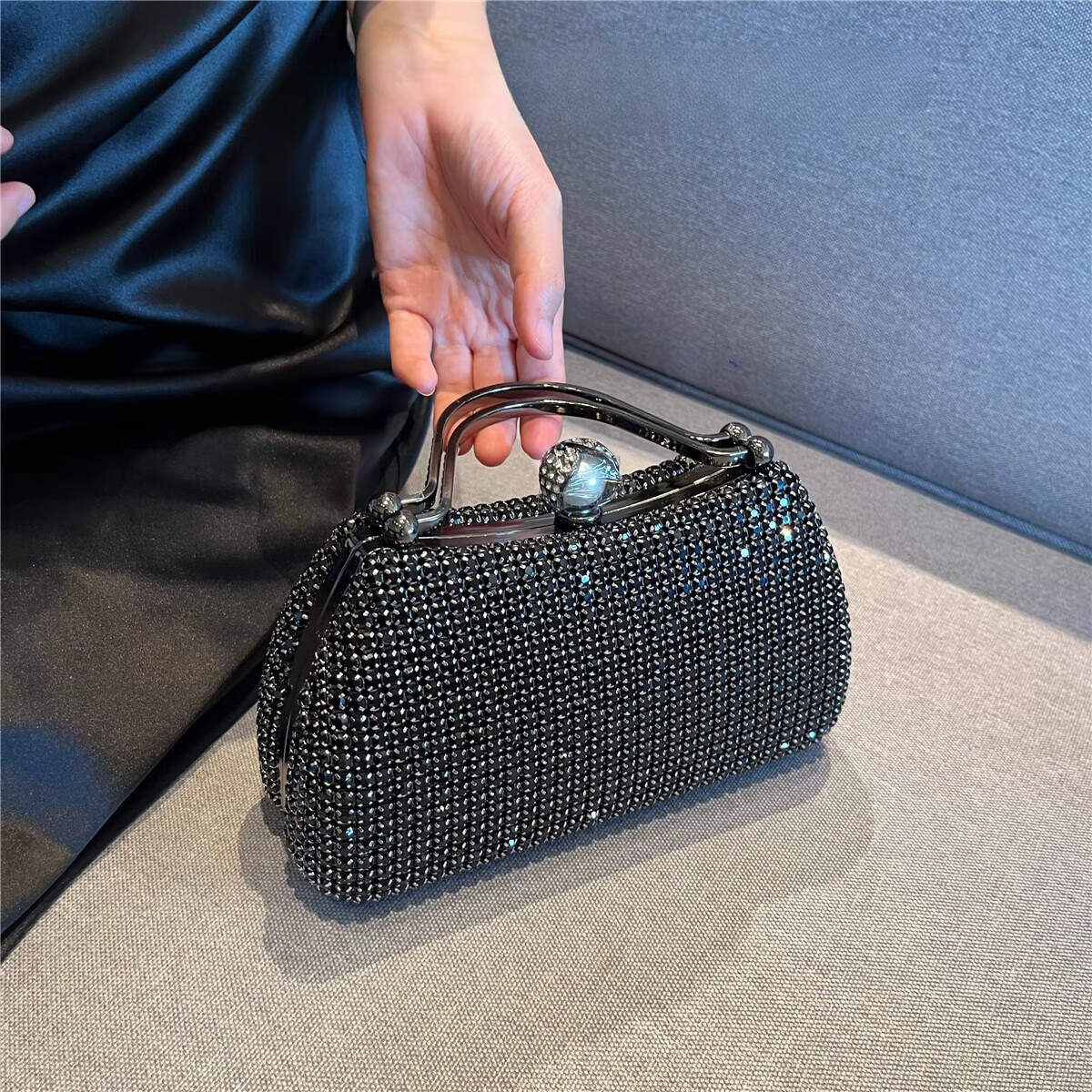 CALCULAT&KEENCK轻奢镶钻高端礼服手拿包镶钻包2025新款名媛配旗袍晚宴包女手提 七夕情人节礼物包包黑钻