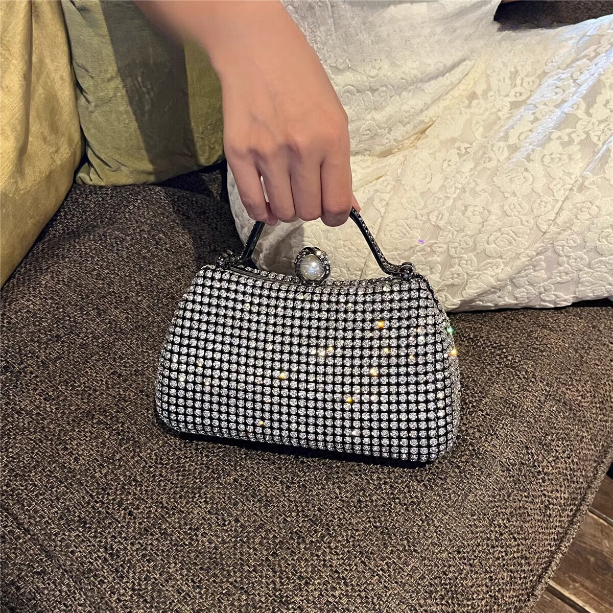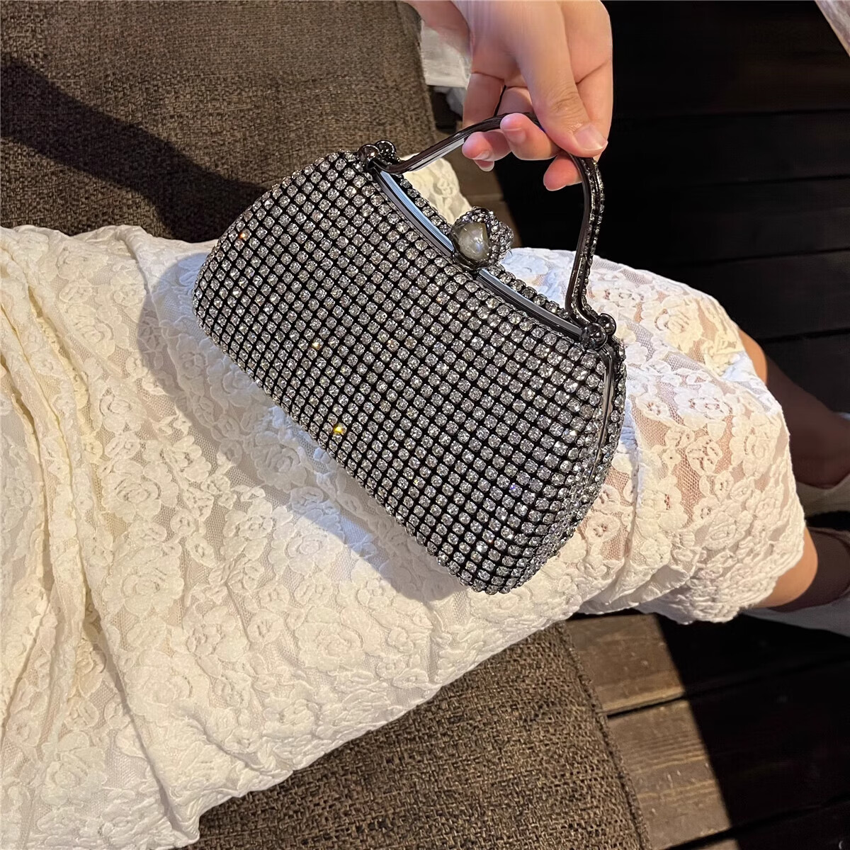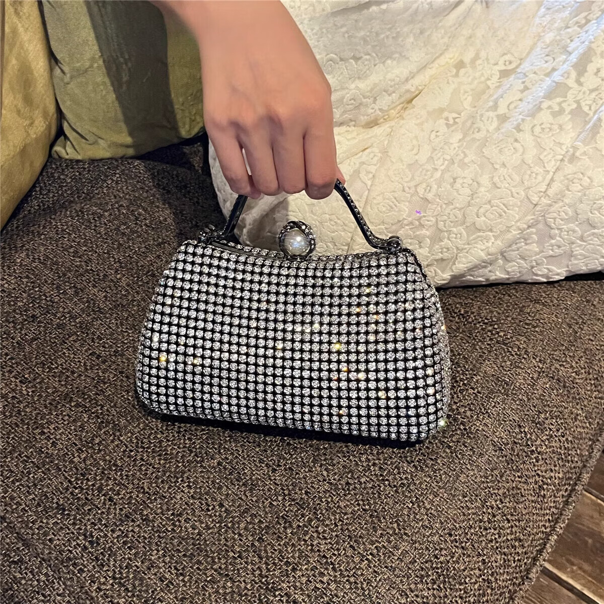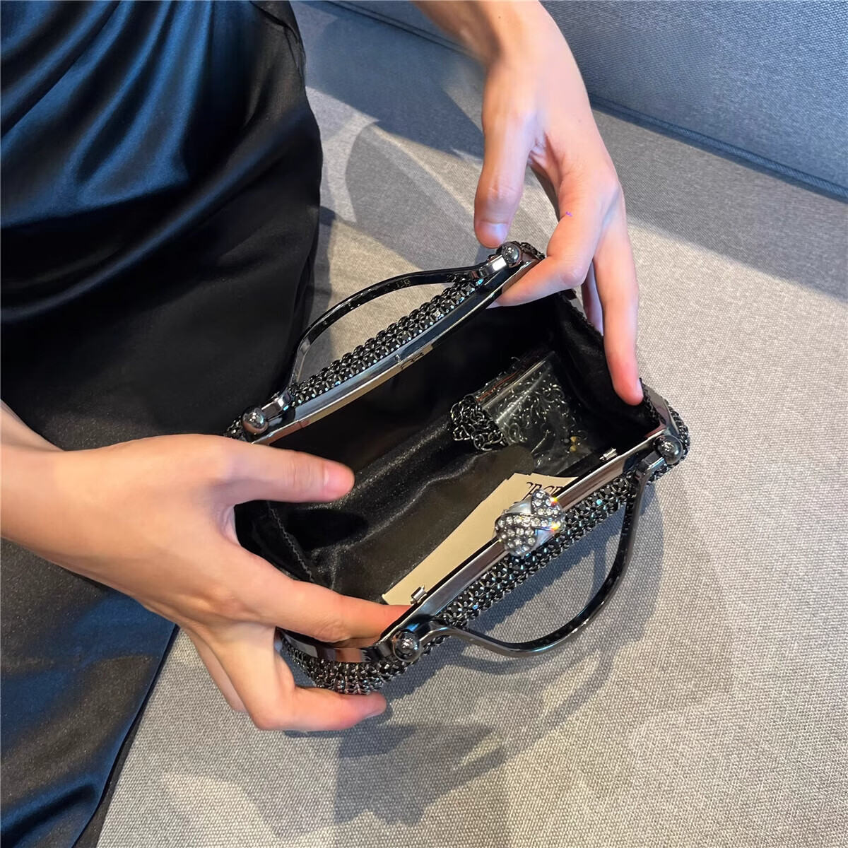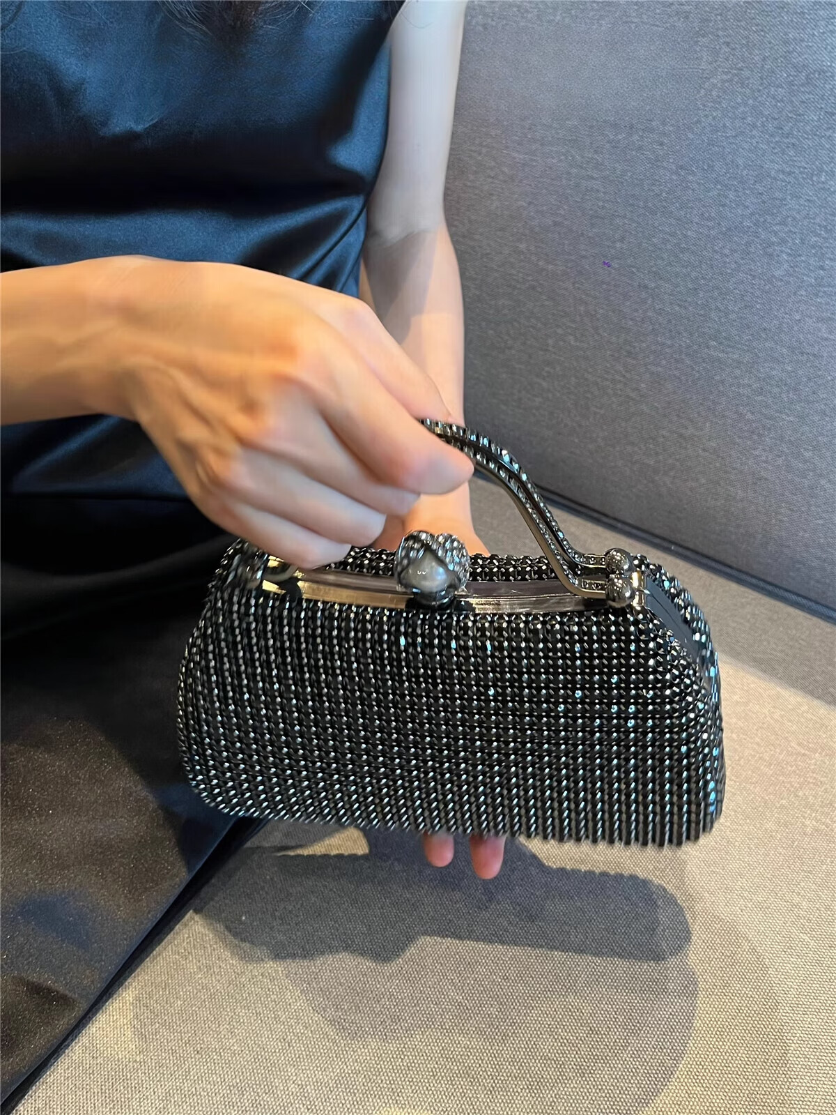 CALCULAT&KEENCK轻奢镶钻高端礼服手拿包镶钻包2025新款名媛配旗袍晚宴包女手提 七夕情人节礼物包包黑钻