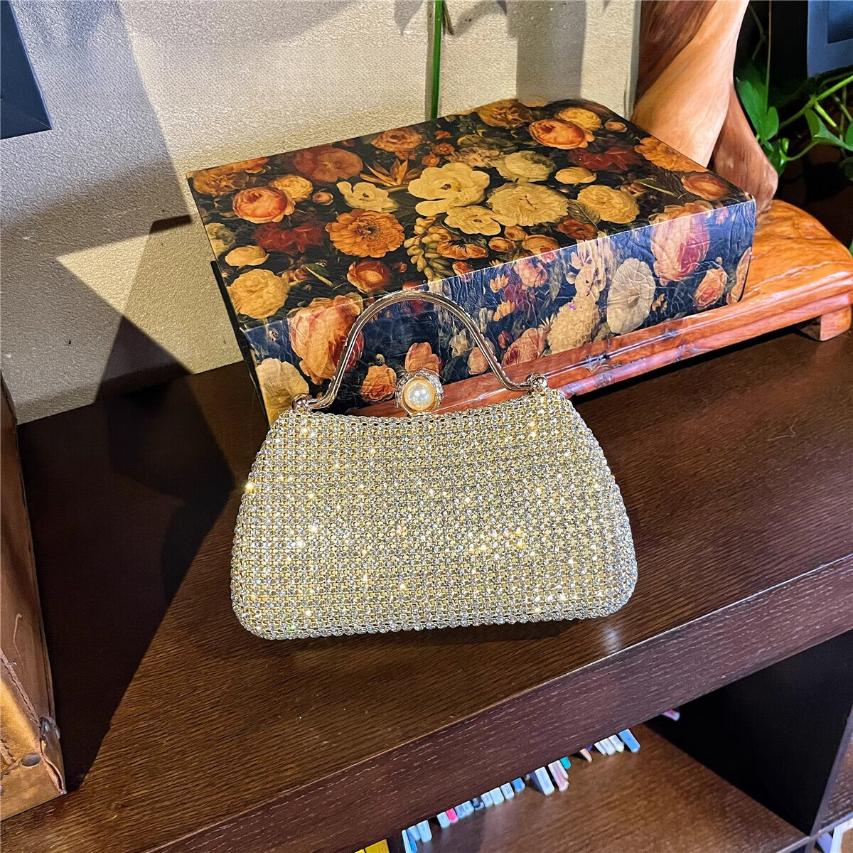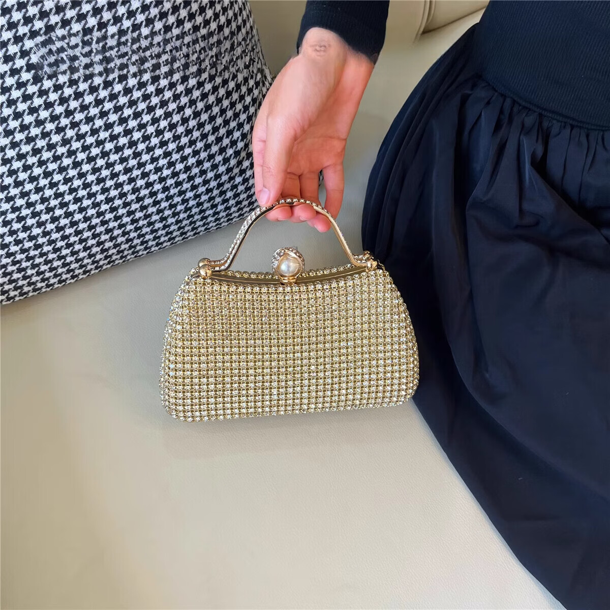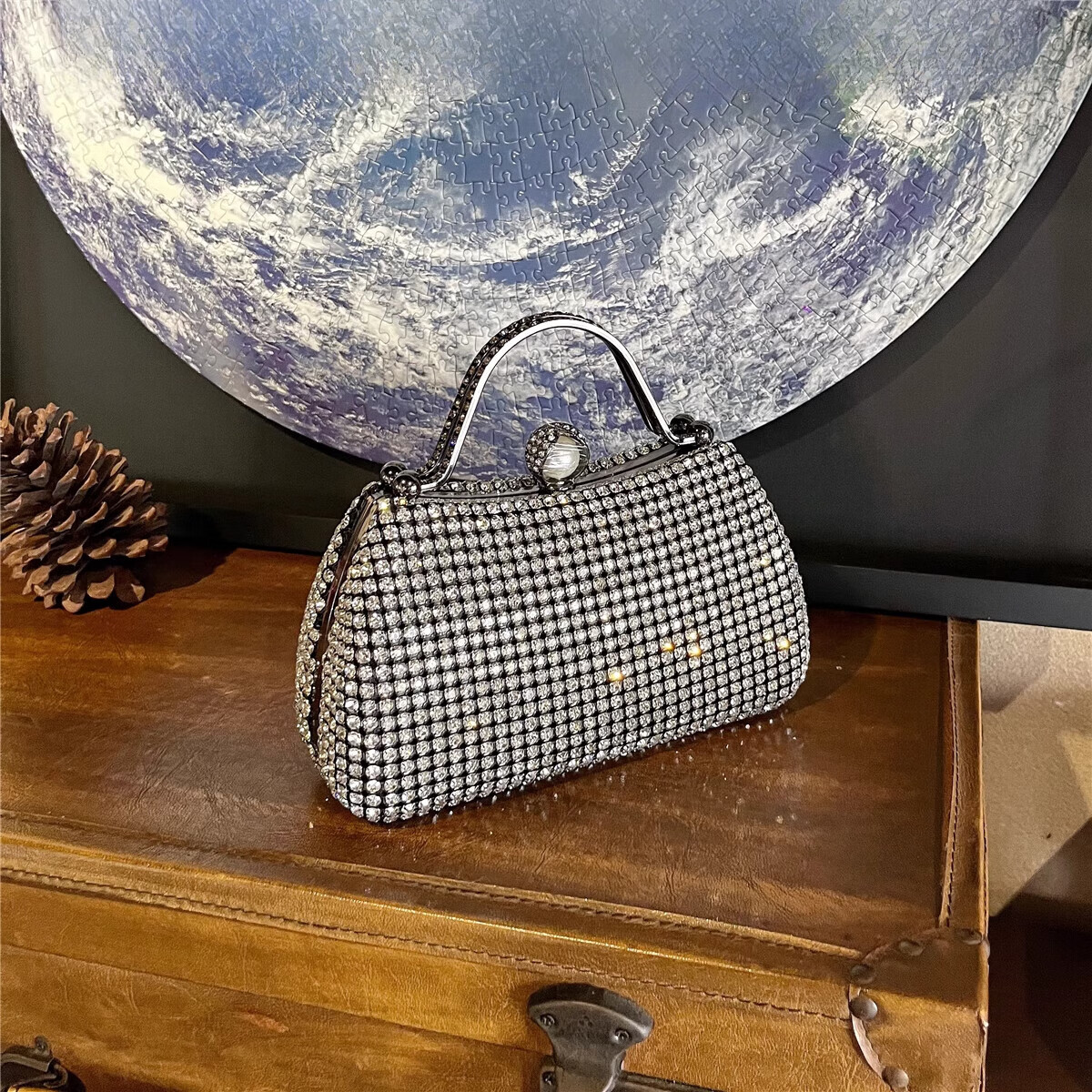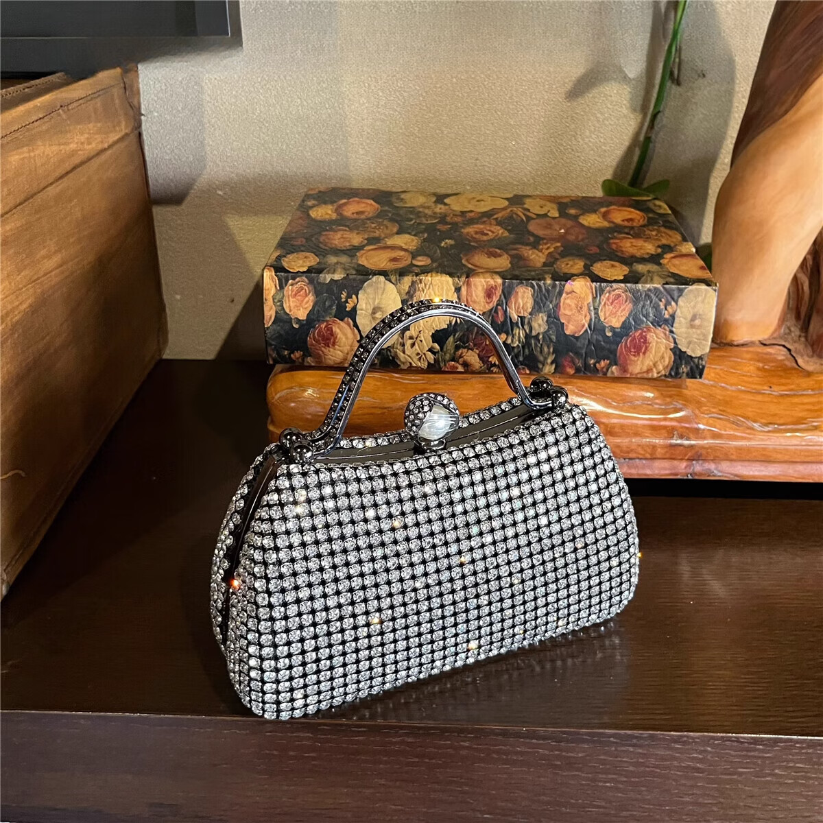 CALCULAT&KEENCK轻奢镶钻高端礼服手拿包镶钻包2025新款名媛配旗袍晚宴包女手提 七夕情人节礼物包包黑钻