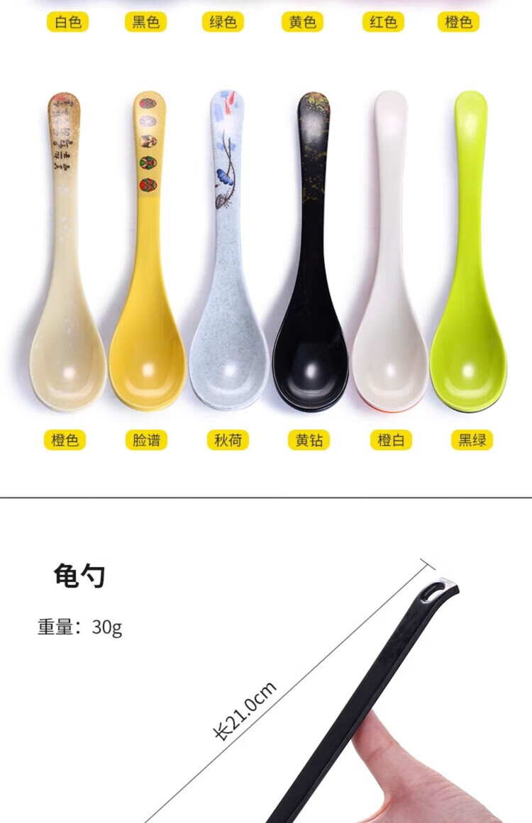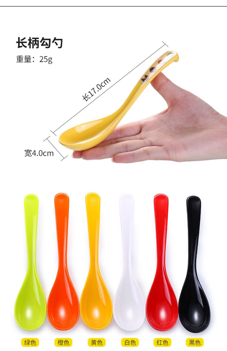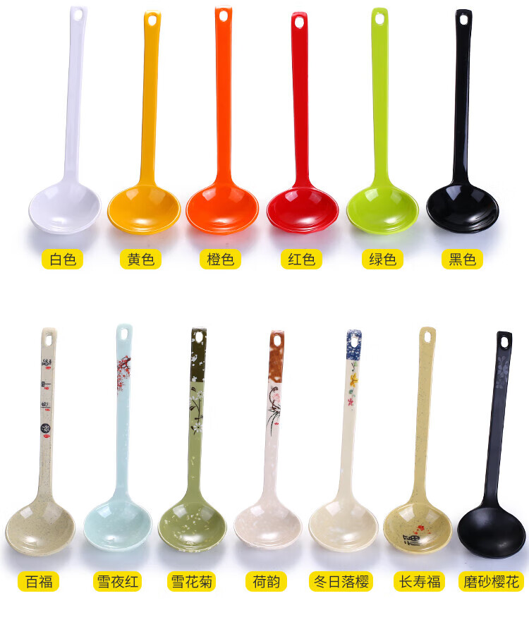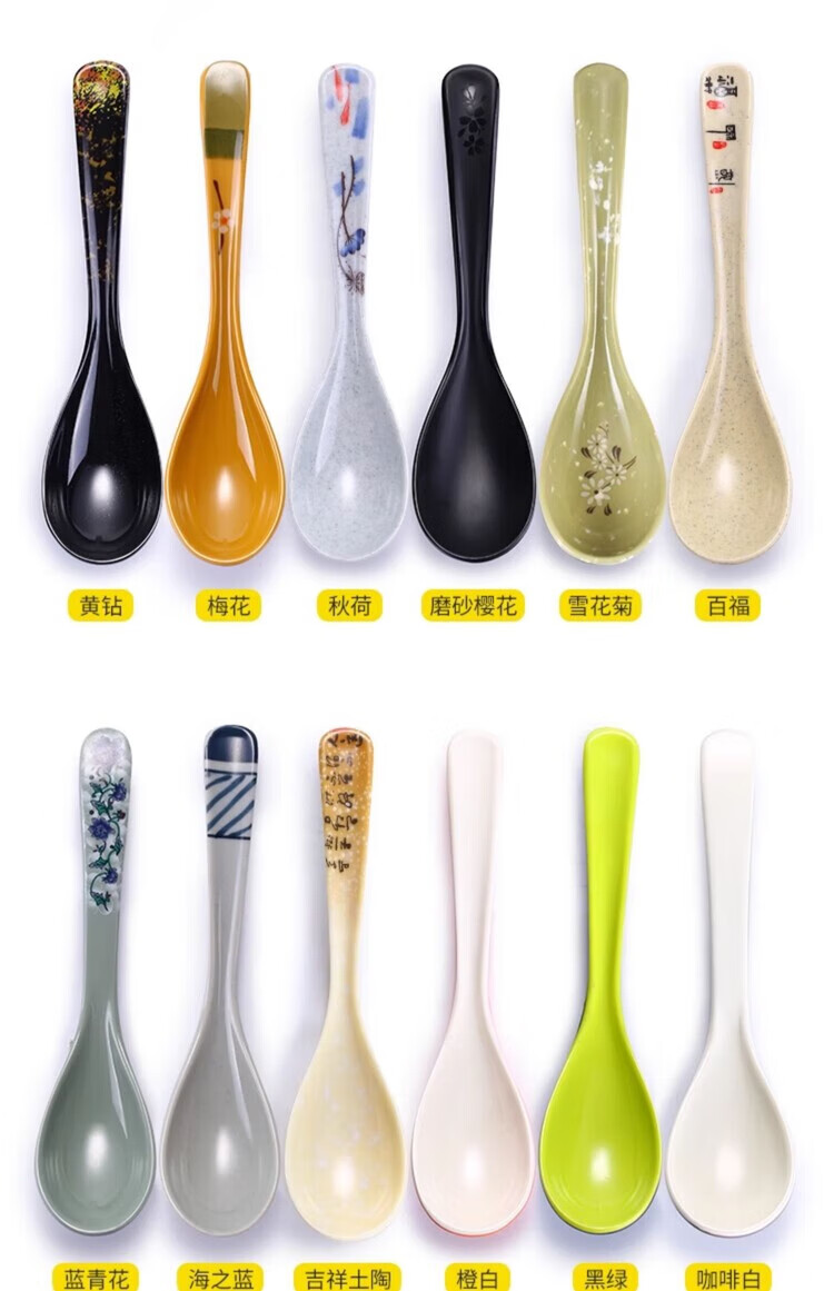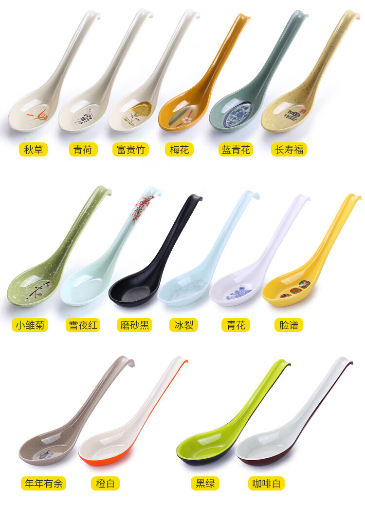 瓶樽天下塑料勺子密胺汤勺饭店长柄商用彩色仿瓷勾勺拉面勺家用调羹小汤匙 小号功夫勺 秋草 【10个装】