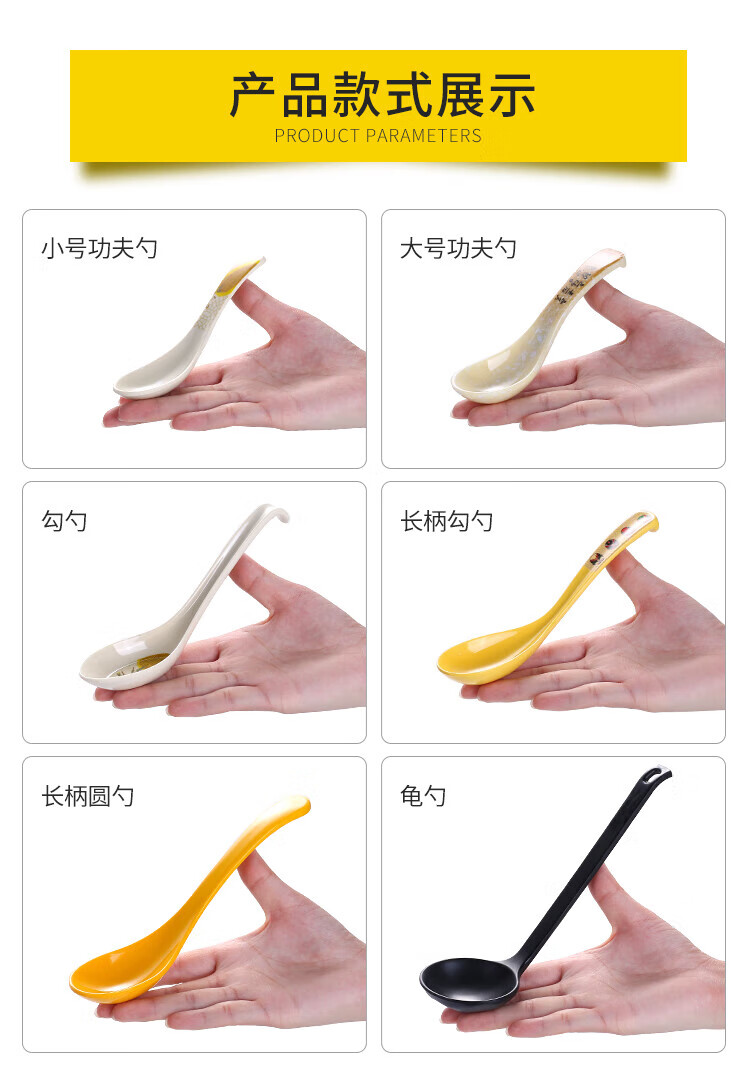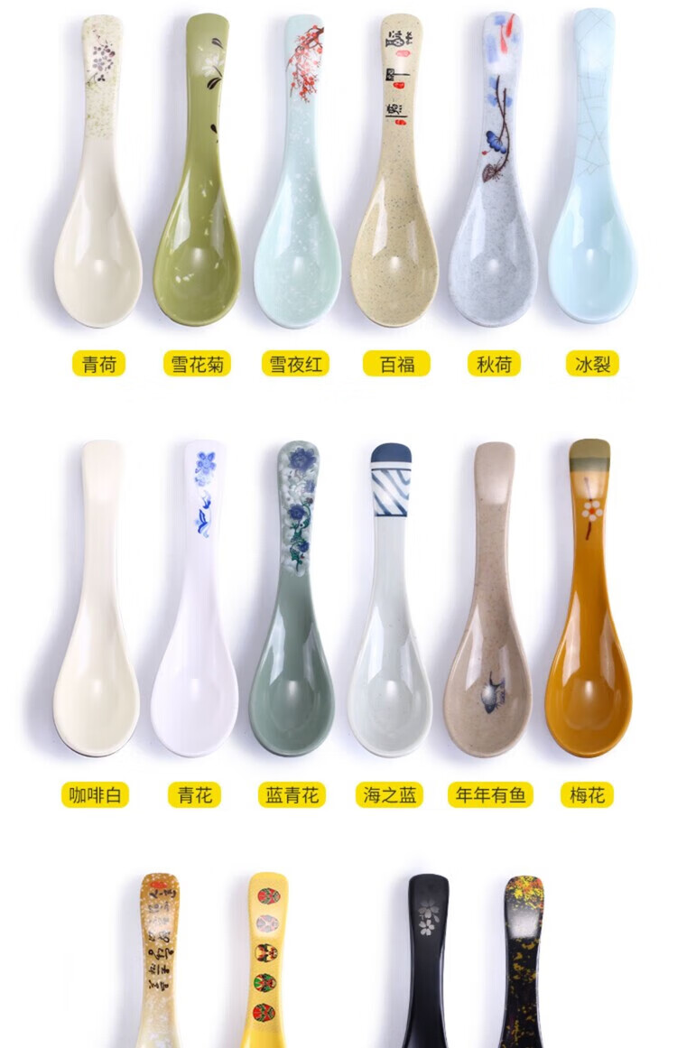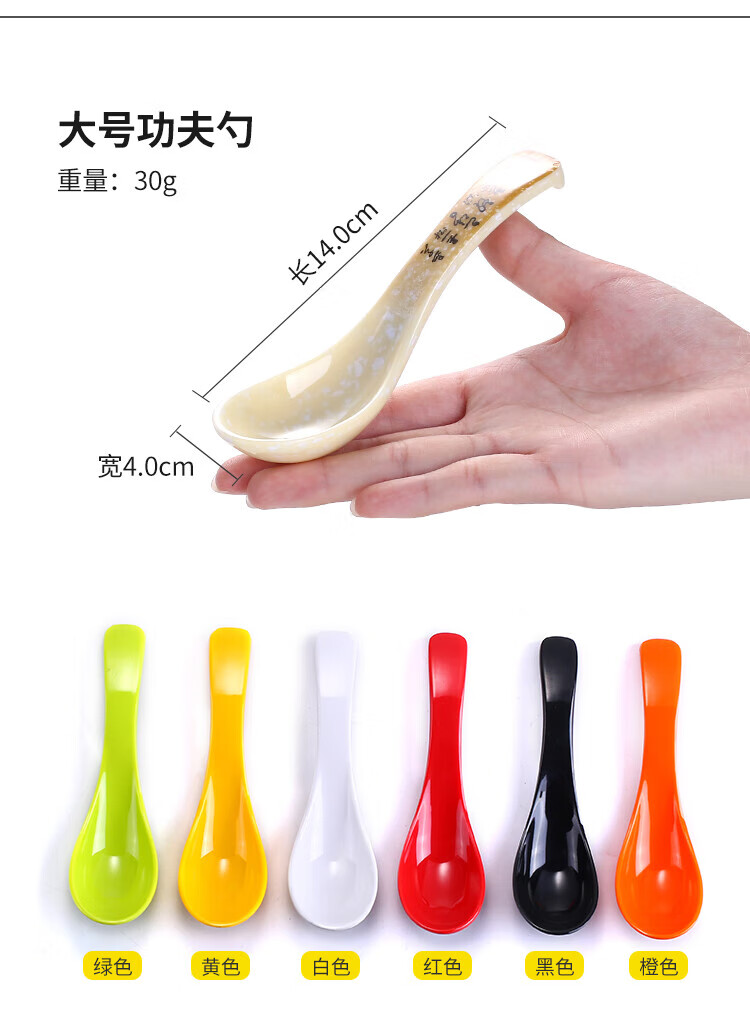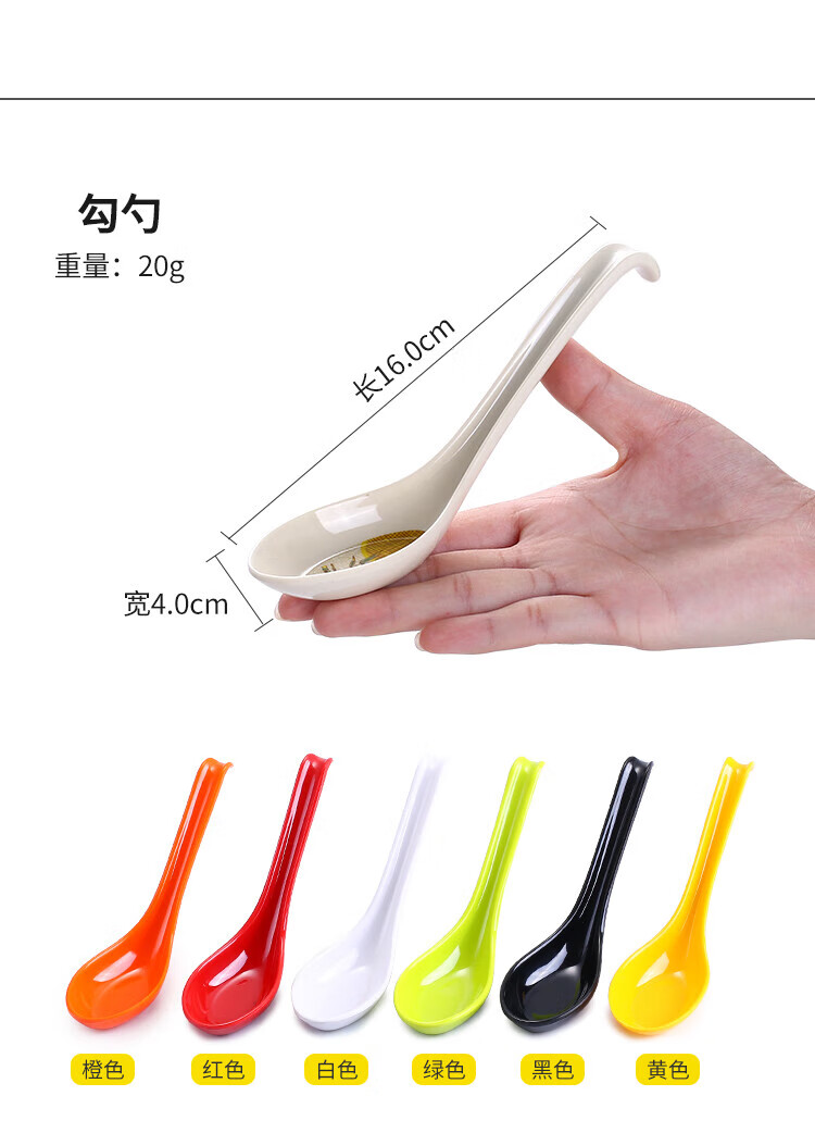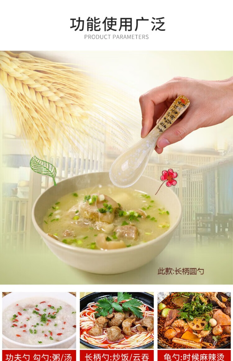 瓶樽天下塑料勺子密胺汤勺饭店长柄商用彩色仿瓷勾勺拉面勺家用调羹小汤匙 小号功夫勺 秋草 【10个装】