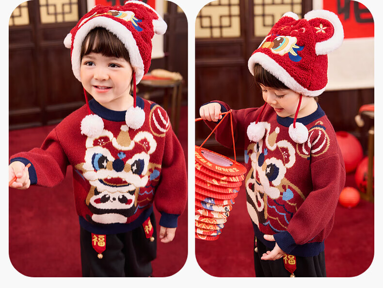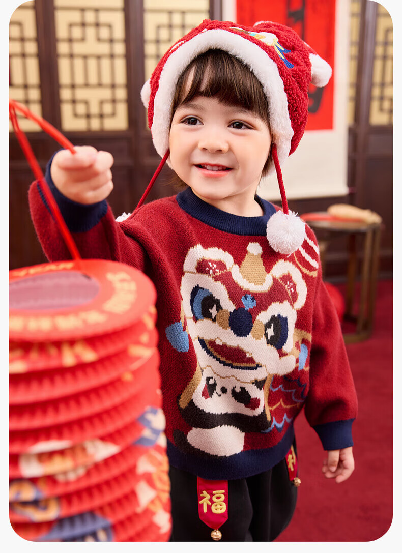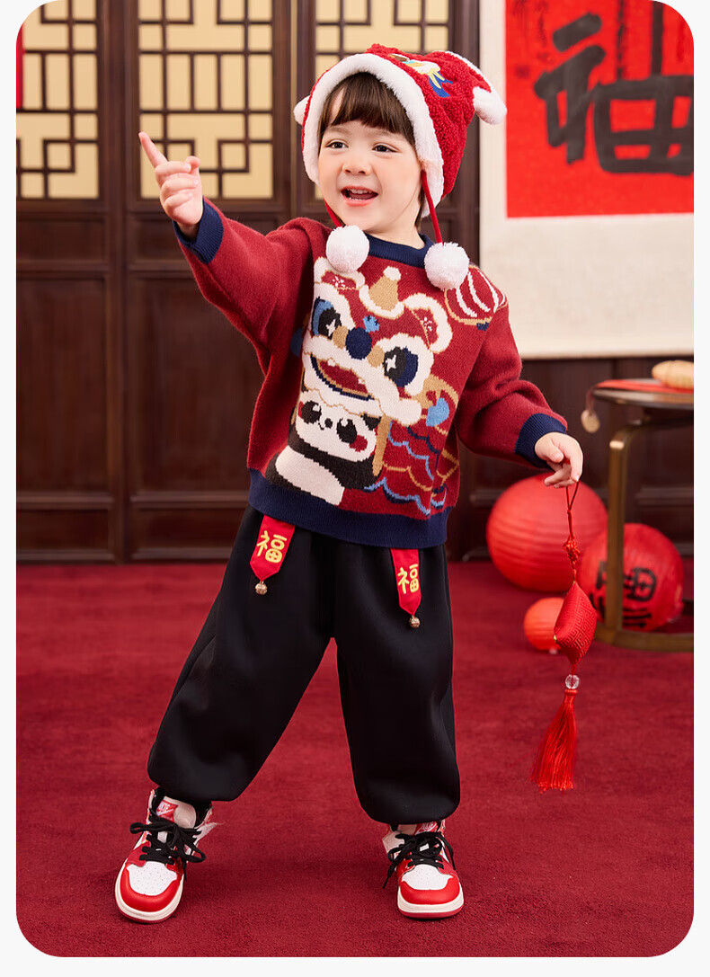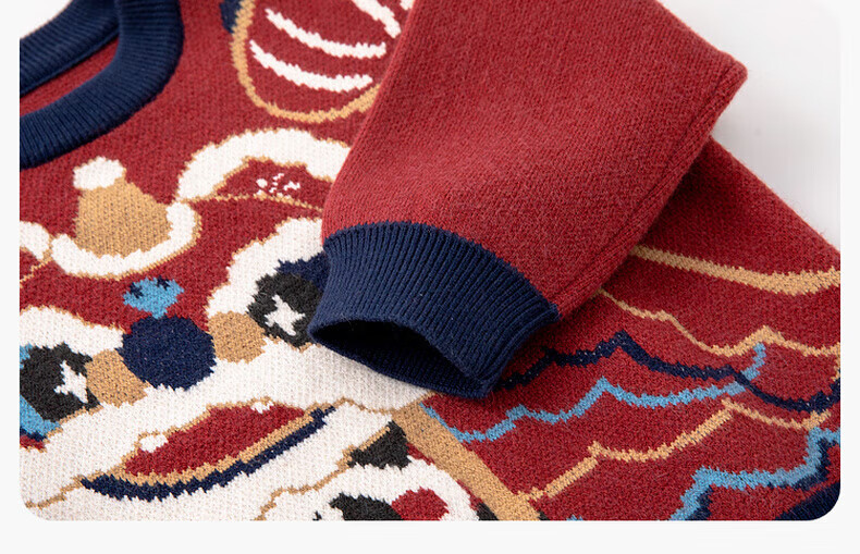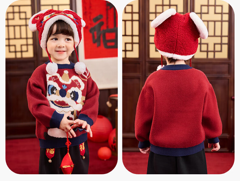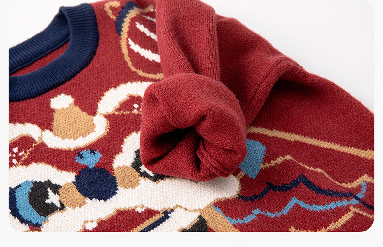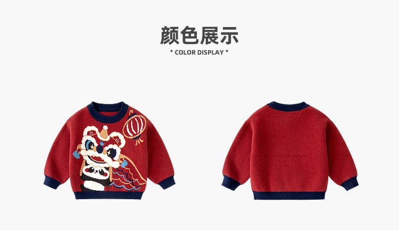嘟嘟家儿童唐装男童中国风拜年服宝宝红色喜庆毛衣女童周岁礼服冬 红色 90