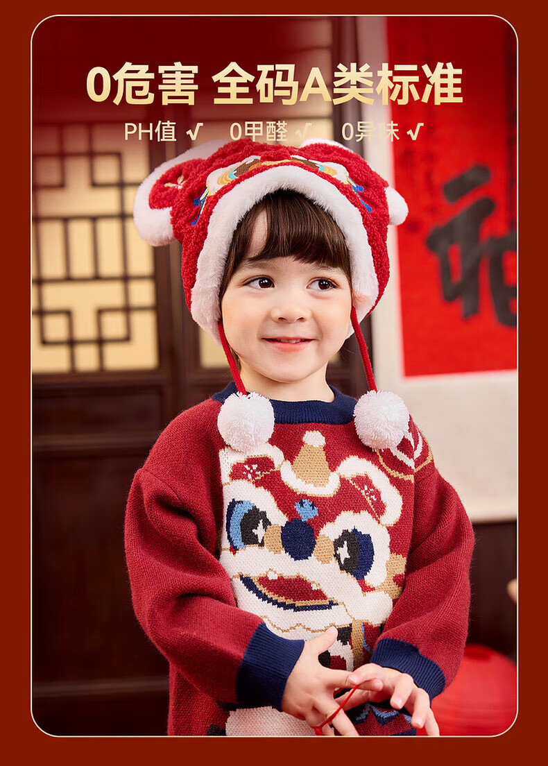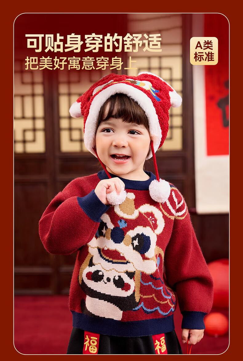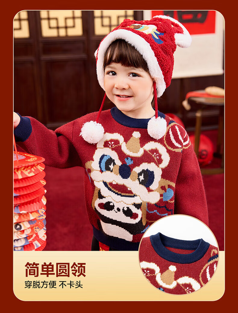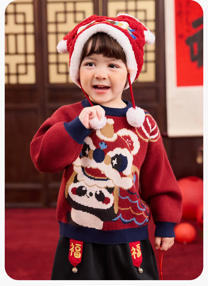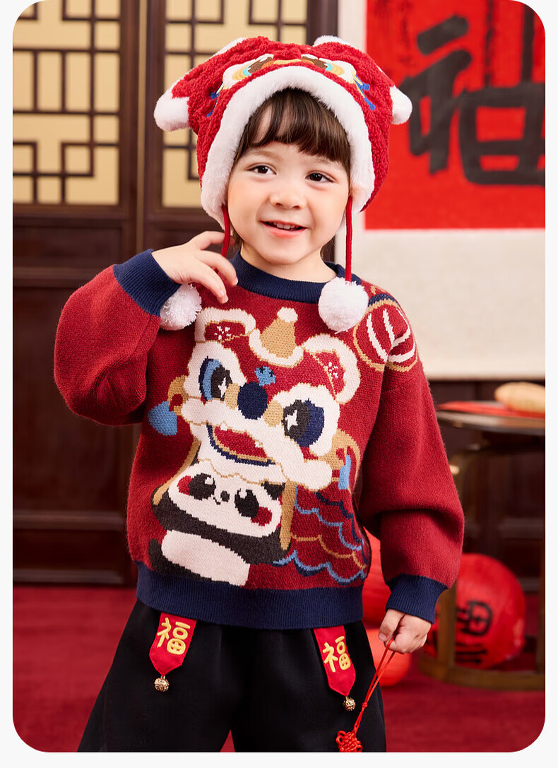 嘟嘟家儿童唐装男童中国风拜年服宝宝红色喜庆毛衣女童周岁礼服冬 红色 90