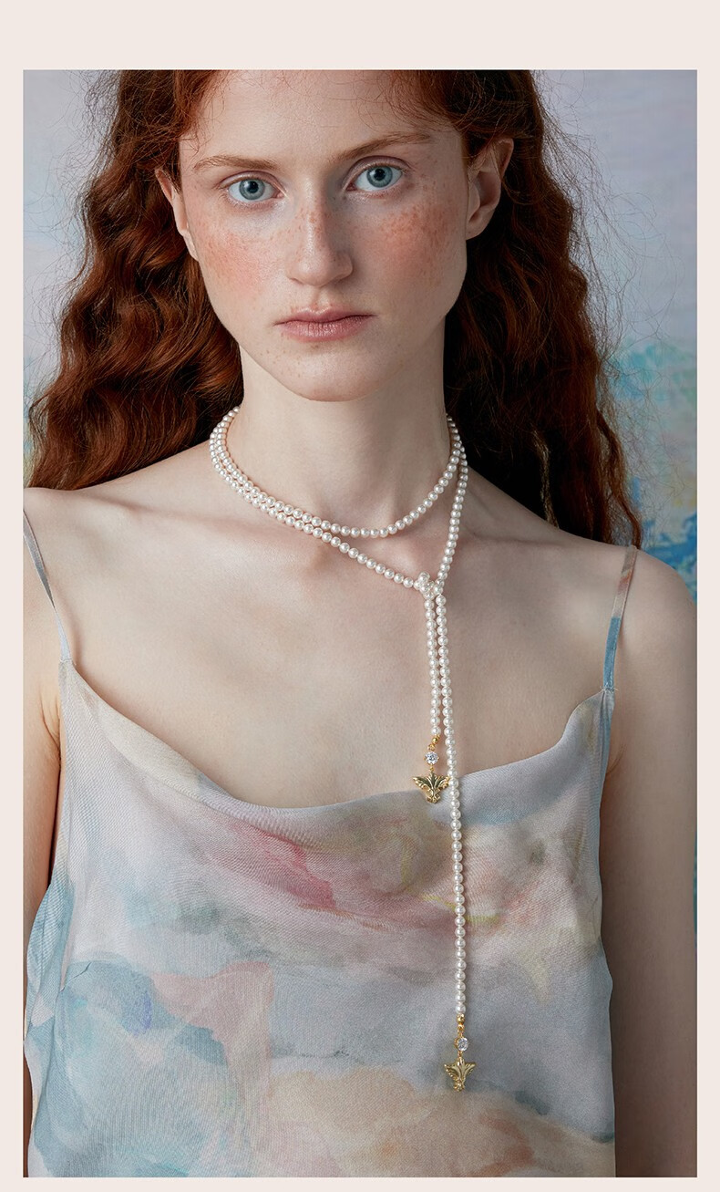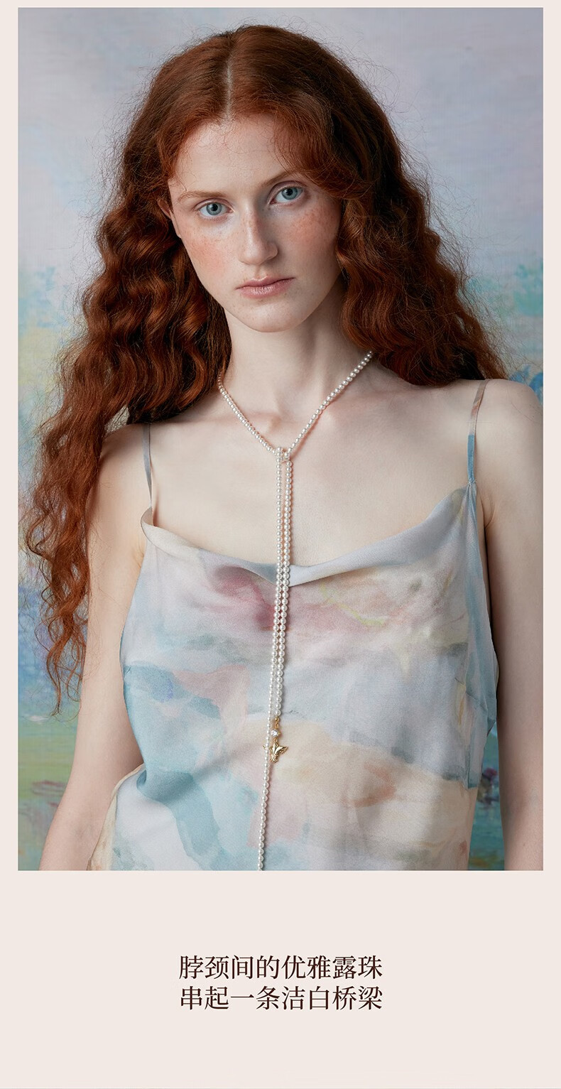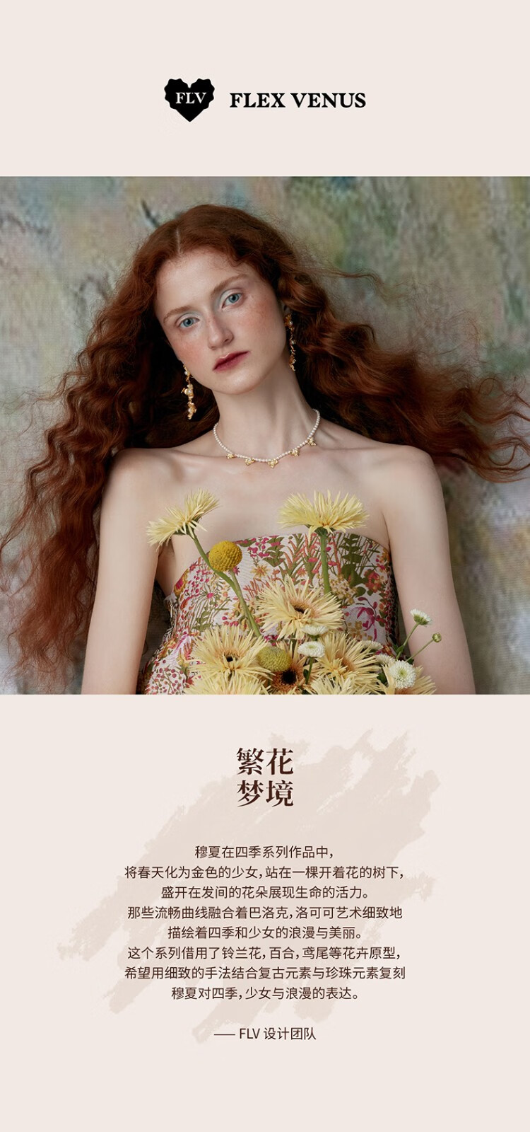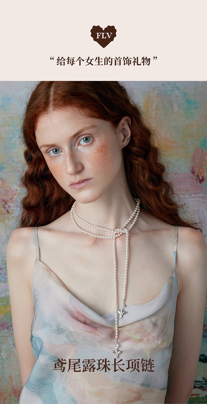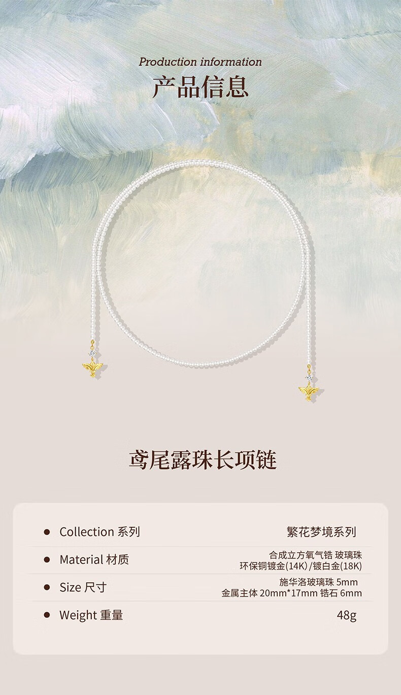 FLV【艾米同款】鸢尾花露珠长项链繁华梦境系列原创百搭锁骨链女礼物 金色