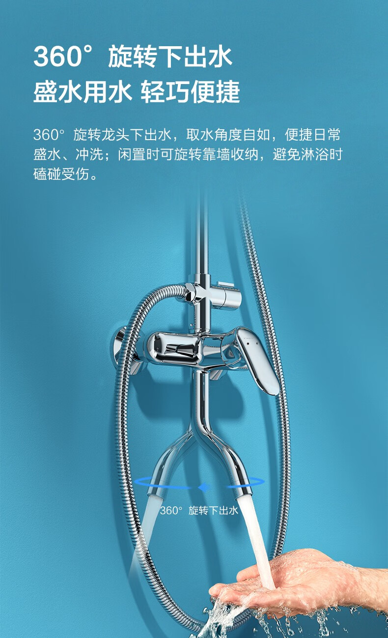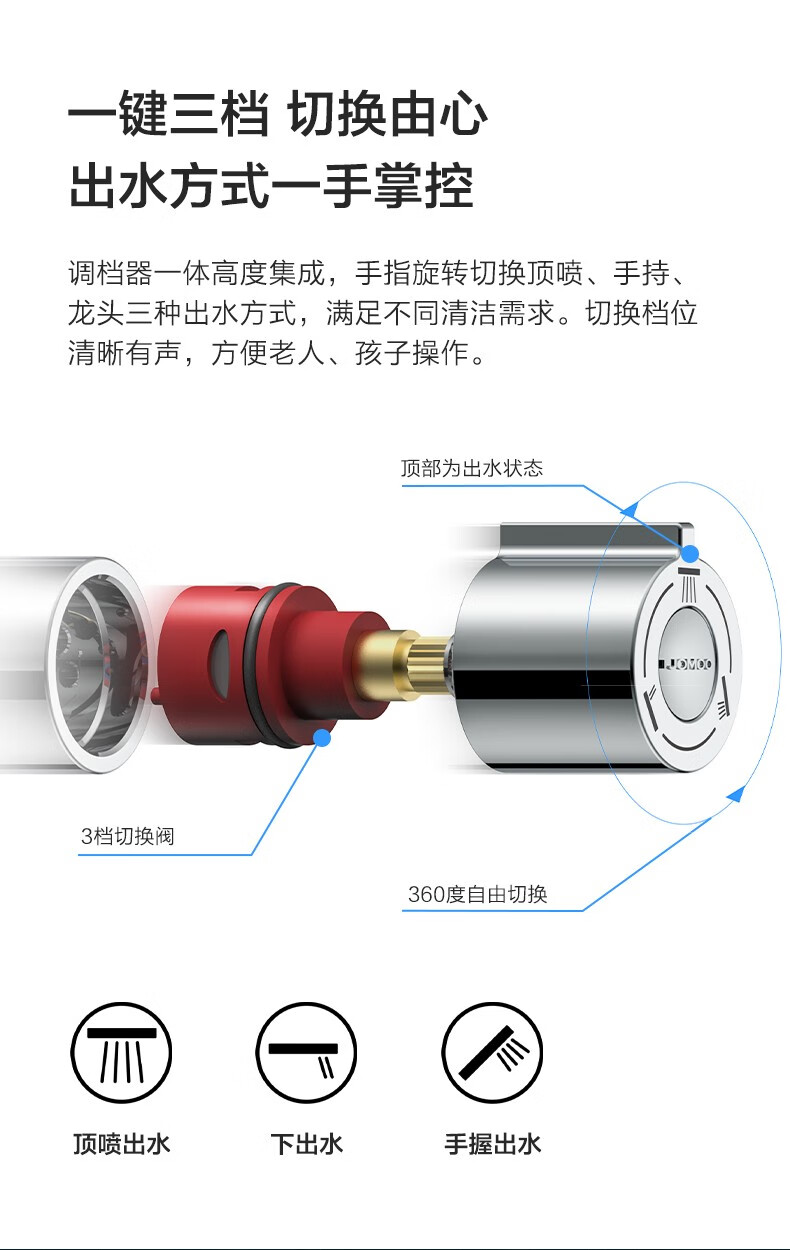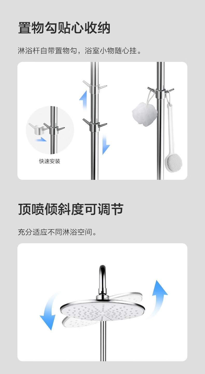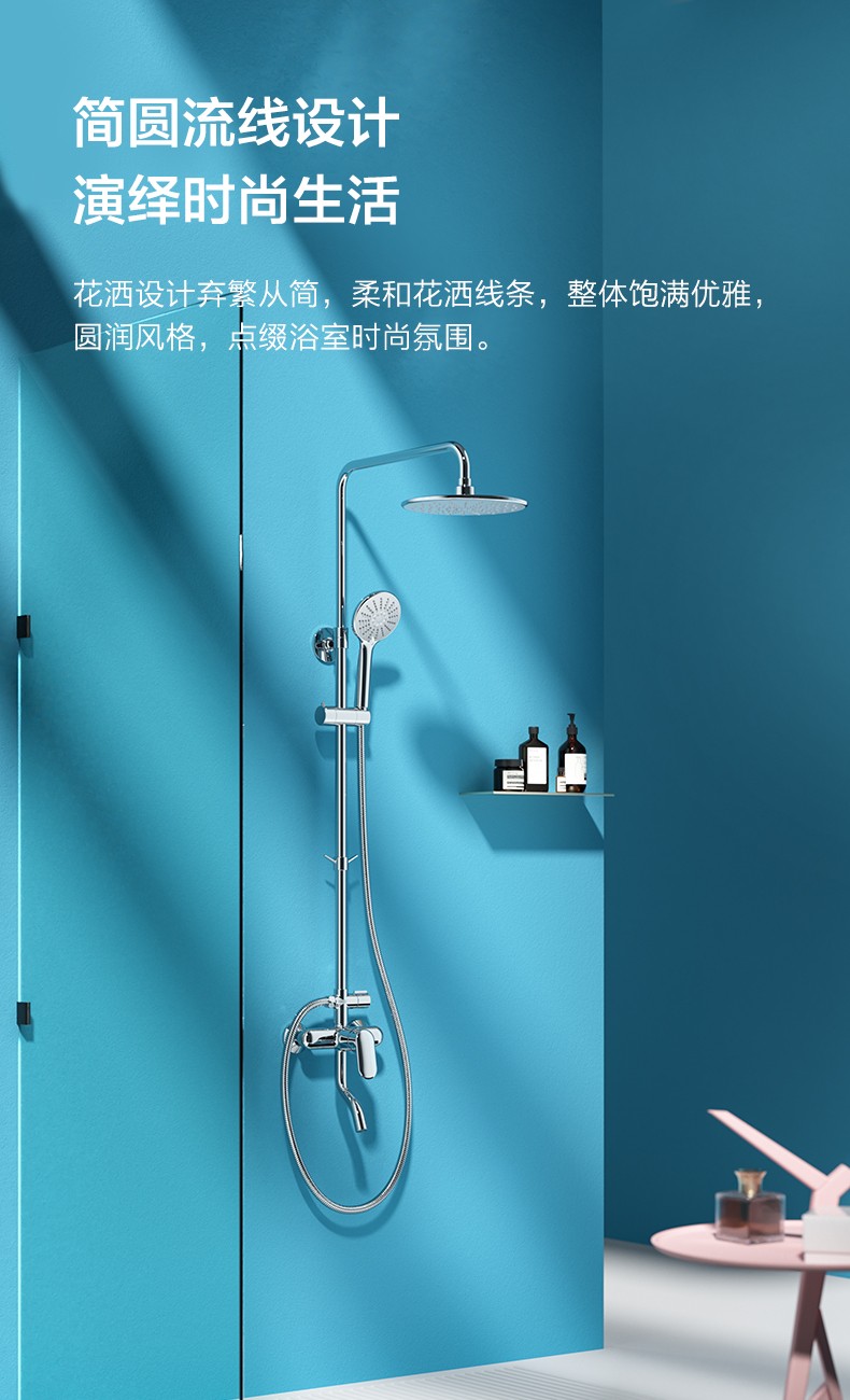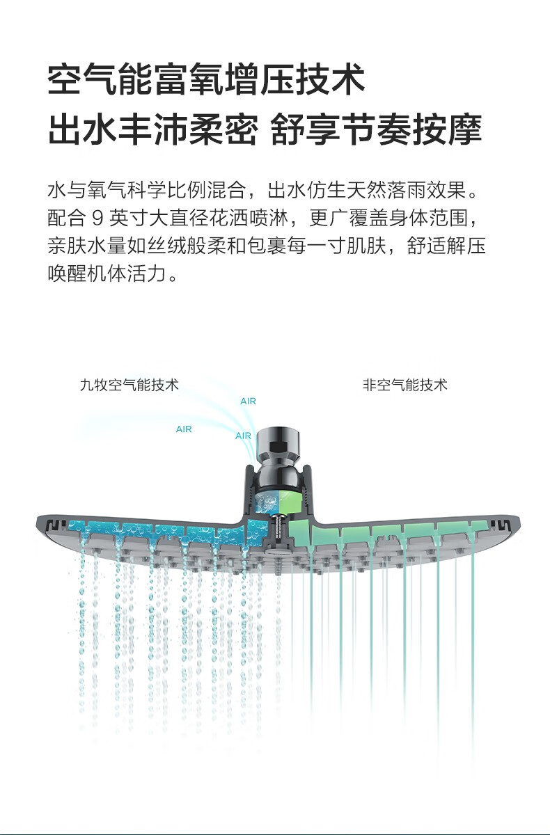 九牧(JOMOO)淋浴花洒套装硅胶空气能一键三挡淋浴器沐浴莲蓬头带顶喷36453 【圆形空气能硅胶净垢】银色