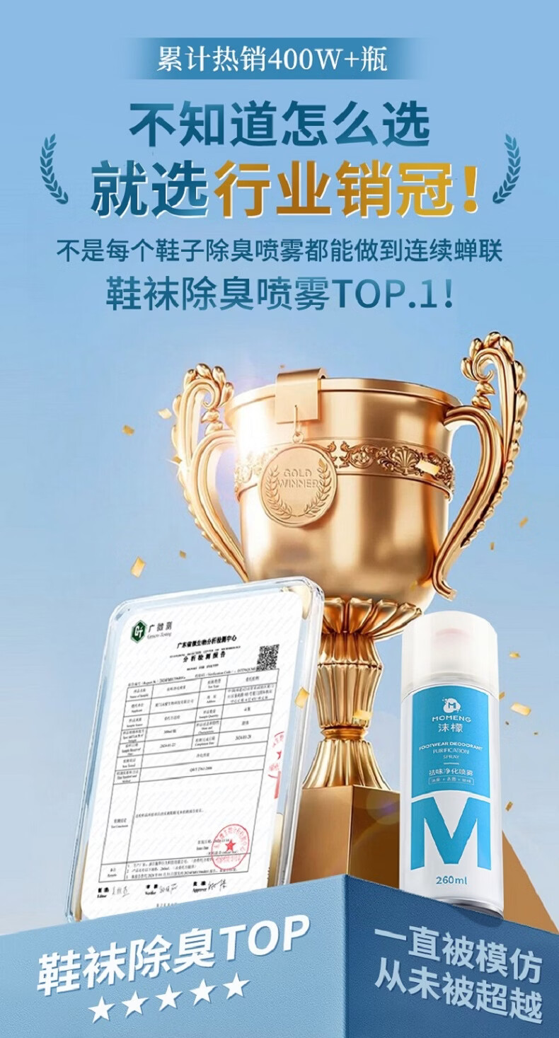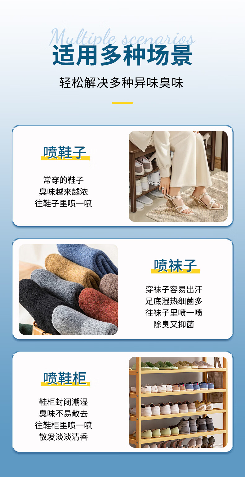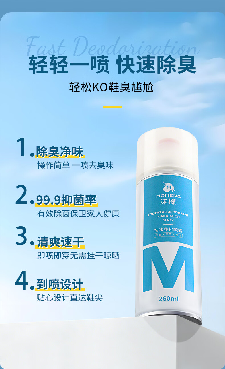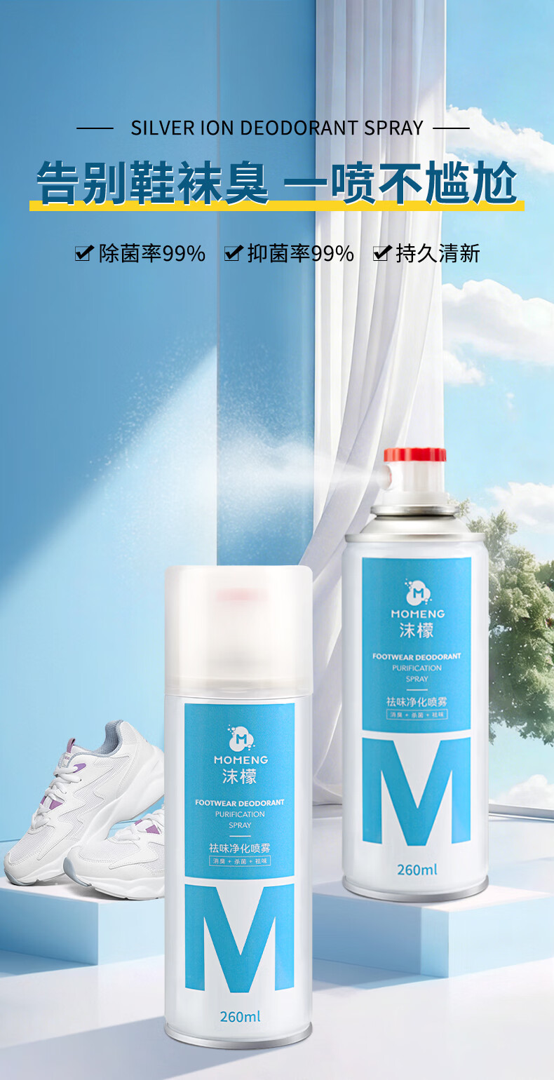 沫檬鞋子除臭喷雾剂 260ml*3银离子鞋袜去味球鞋柜杀菌抑菌运动鞋防臭