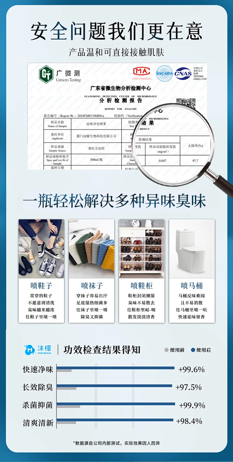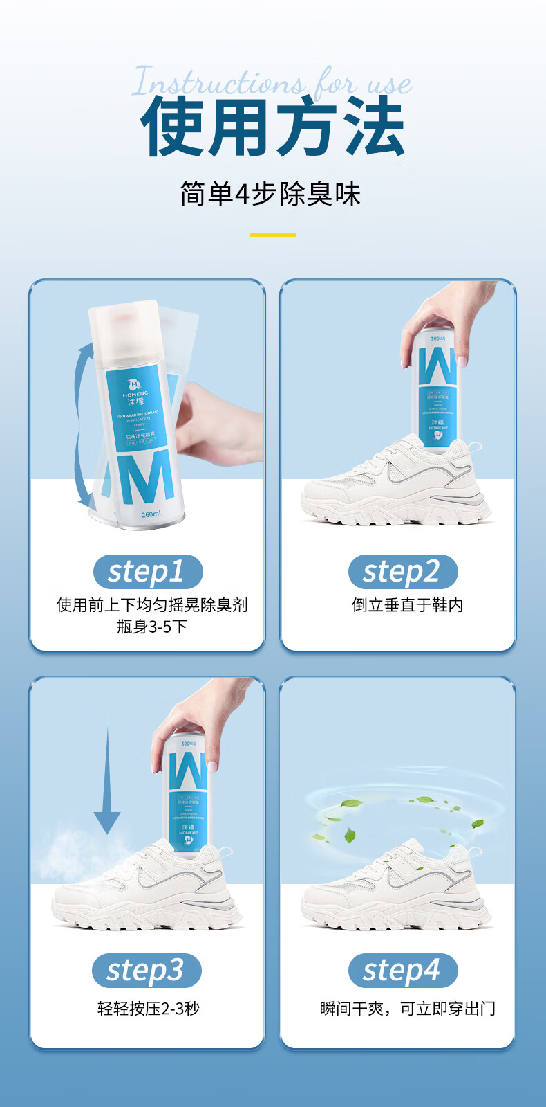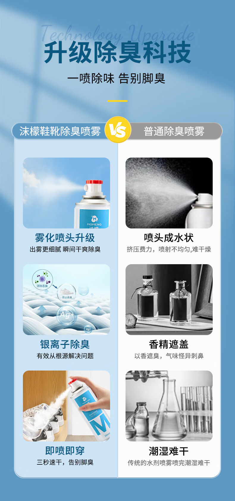 沫檬鞋子除臭喷雾剂 260ml*3银离子鞋袜去味球鞋柜杀菌抑菌运动鞋防臭