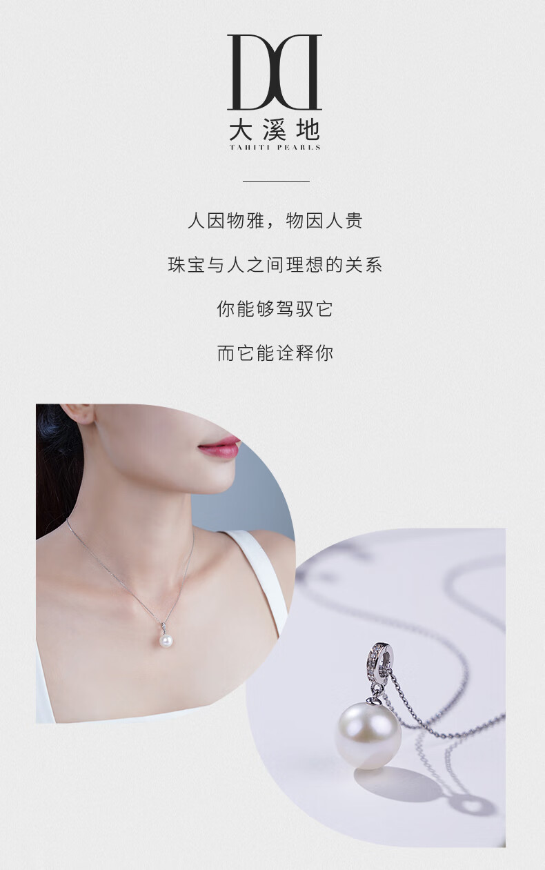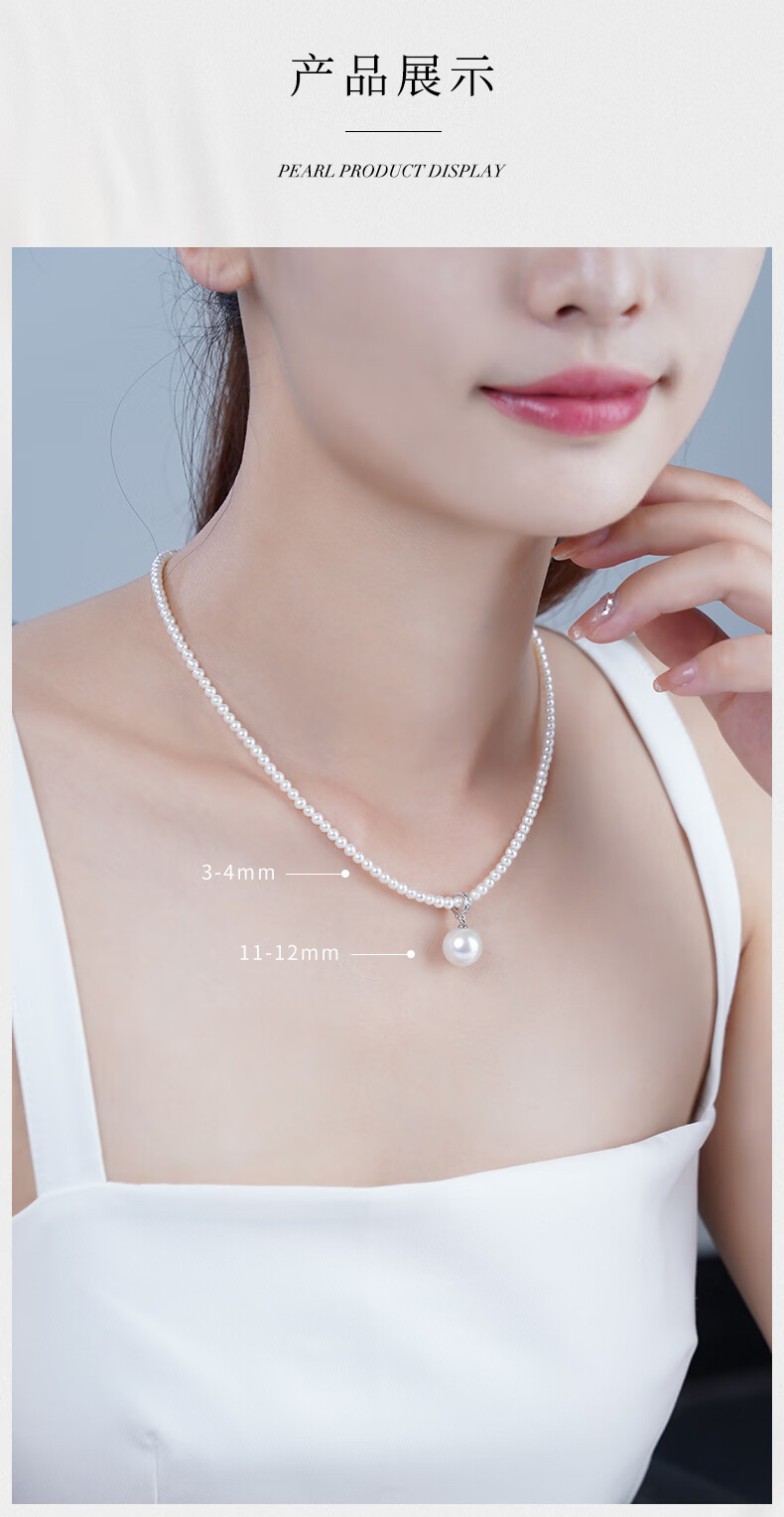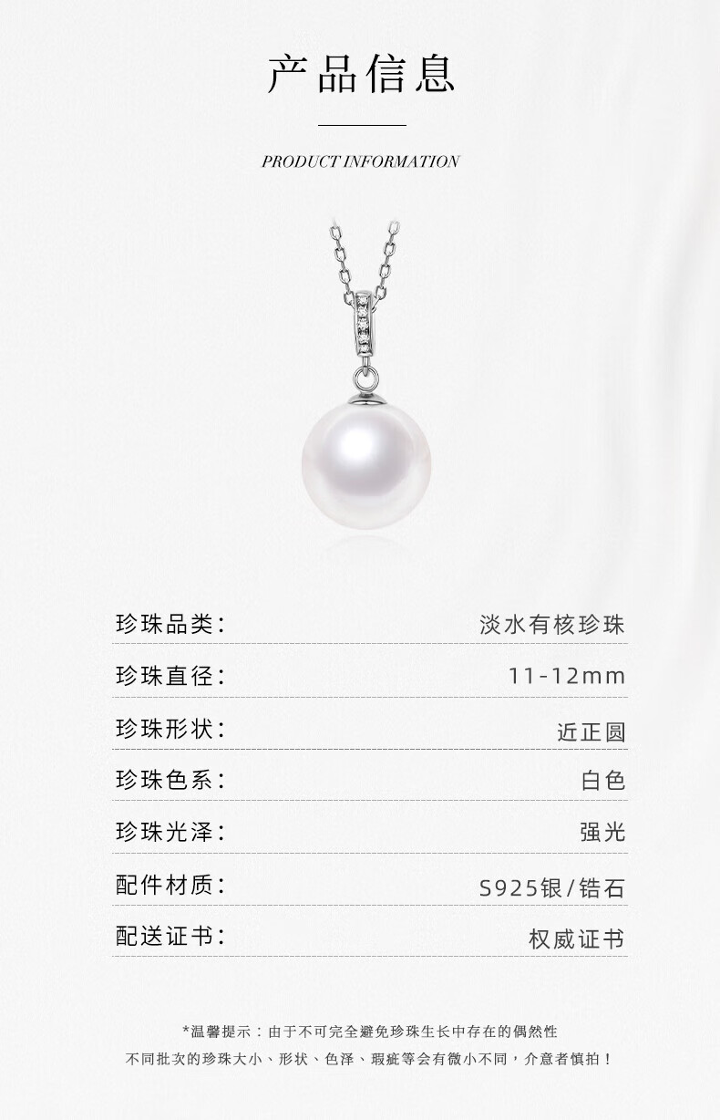大溪地淡水珍珠吊坠 11-12mm925银万能扣项链爱迪生珍珠新年礼物送女生