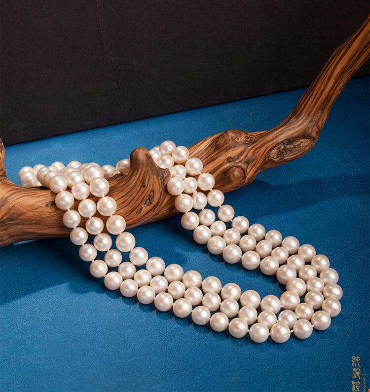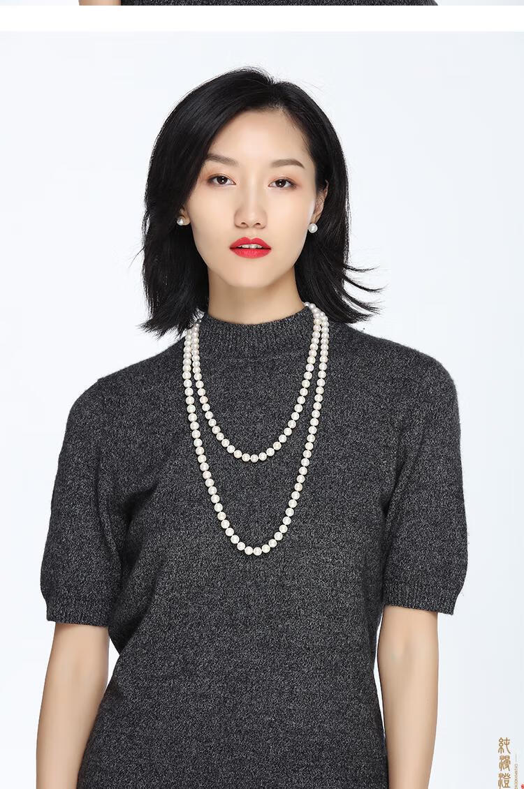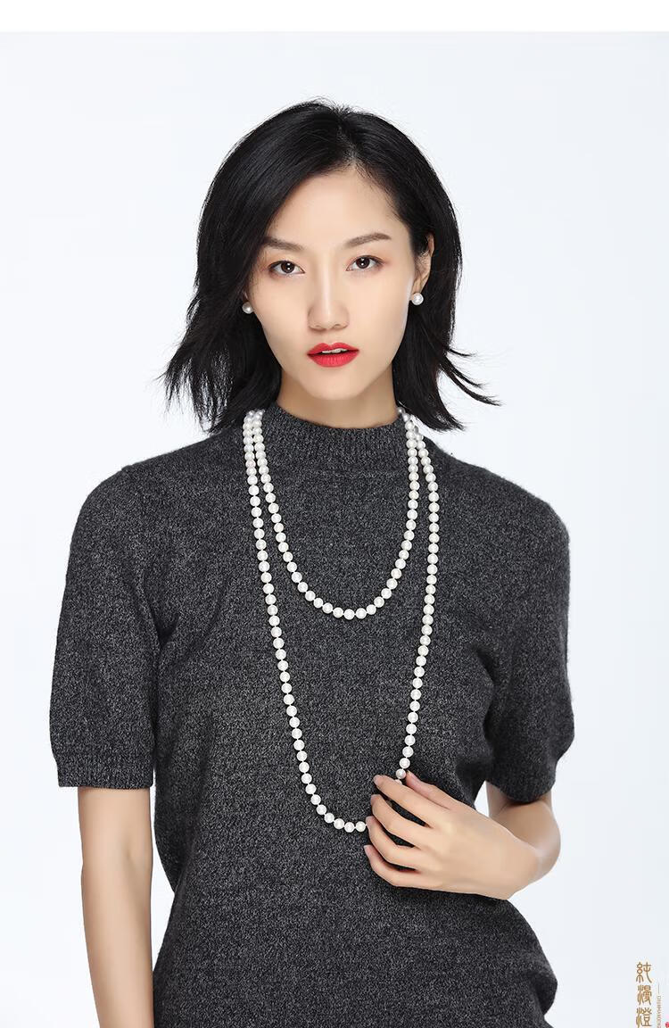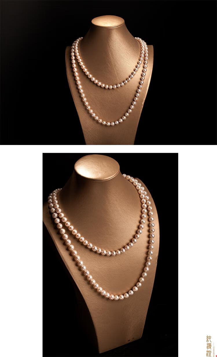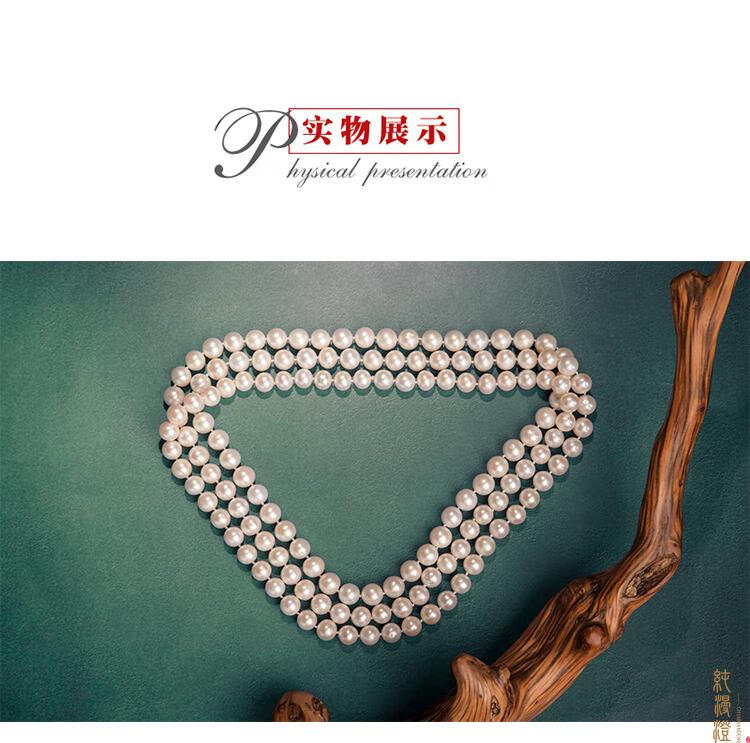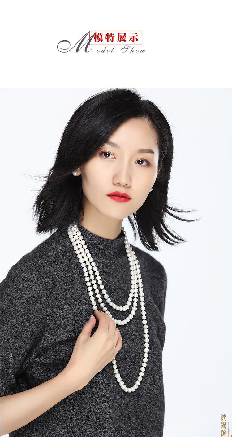 纯漫澄珍珠项链长款毛衣链中老年人婆婆送妈妈款真珍珠多层淡水珍珠链 近正圆亮光细微i瑕 7-8mm x 96cm