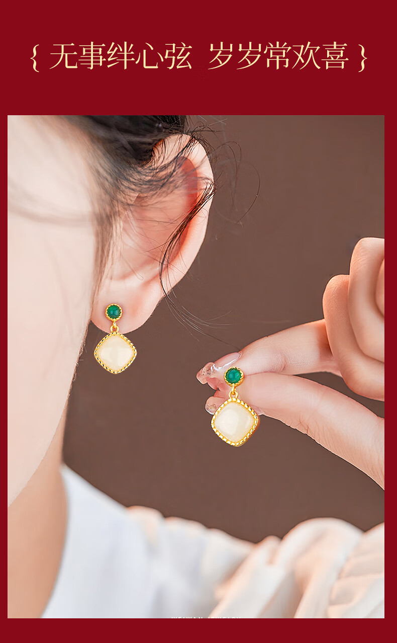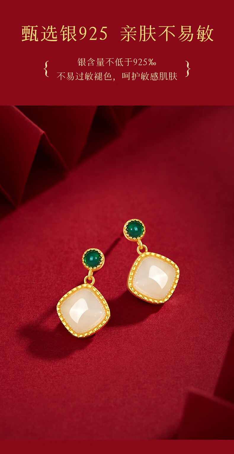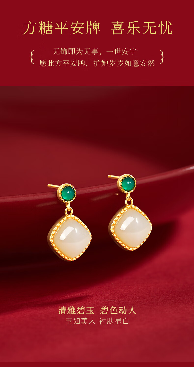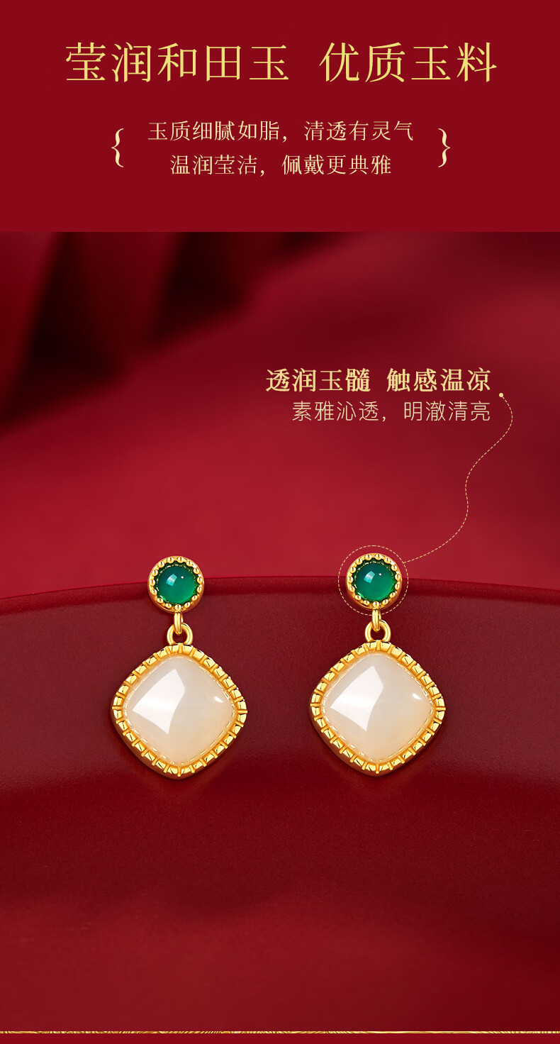 央创时尚中国黄金和田玉耳钉银耳环耳坠耳饰妈妈生日礼物新年女士母亲S925