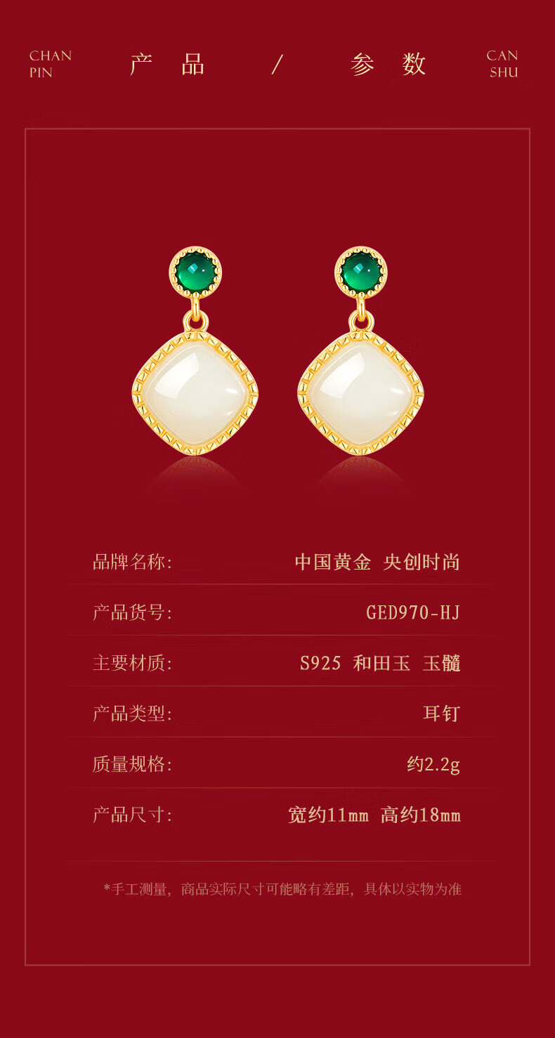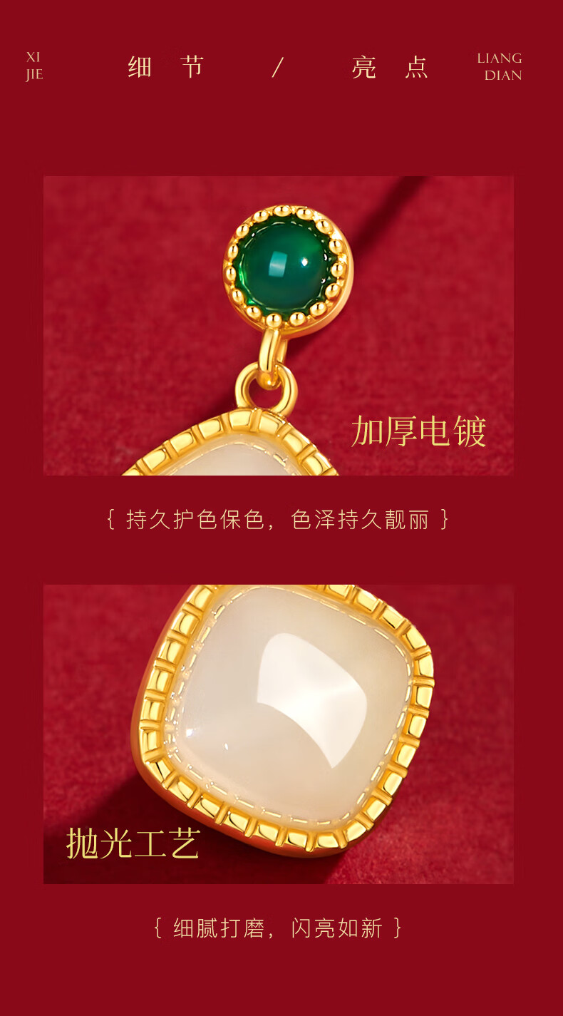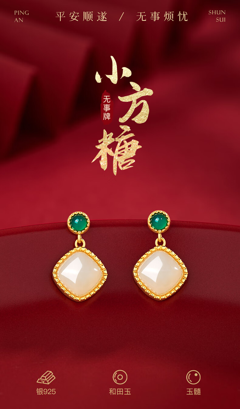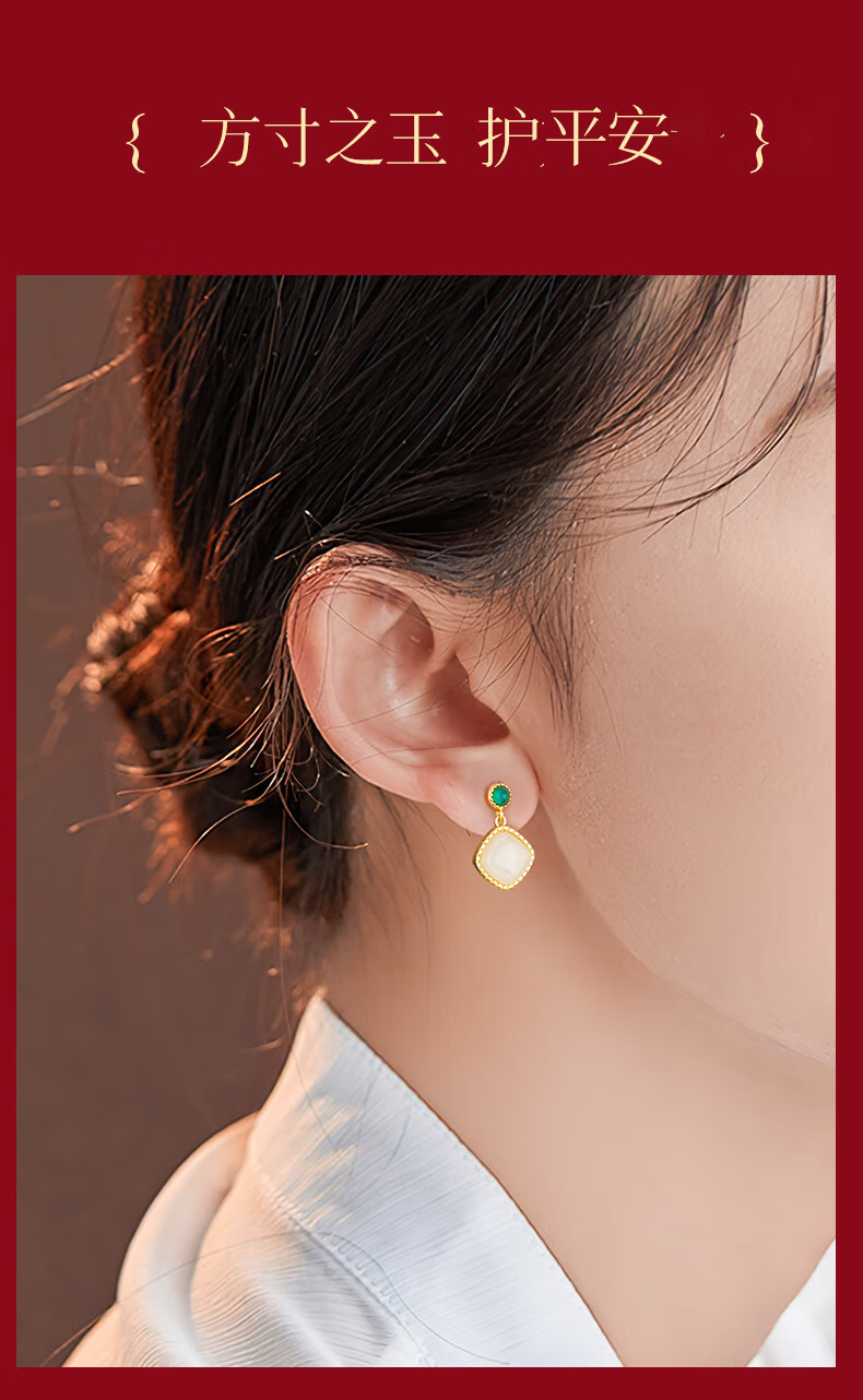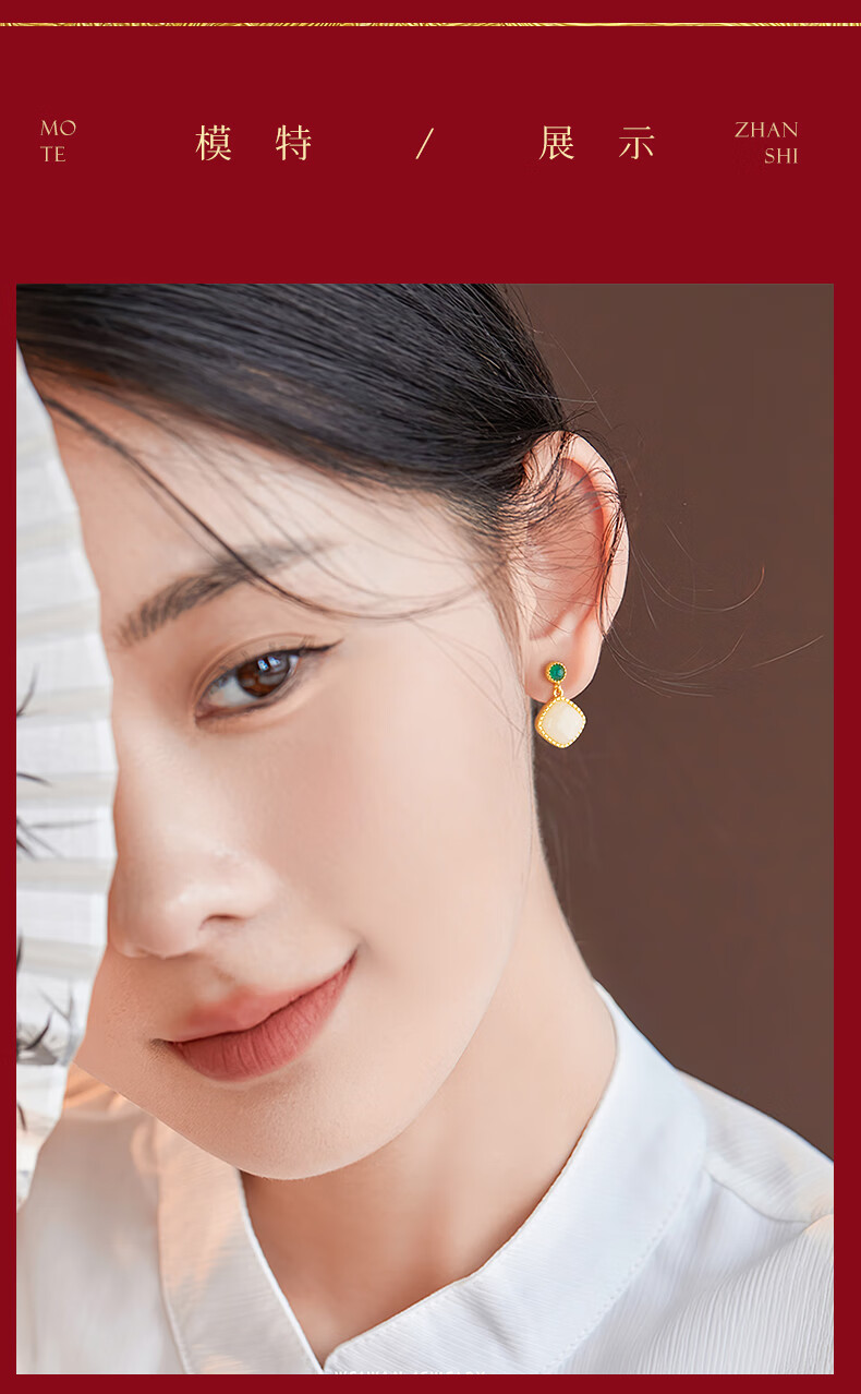 央创时尚中国黄金和田玉耳钉银耳环耳坠耳饰妈妈生日礼物新年女士母亲S925