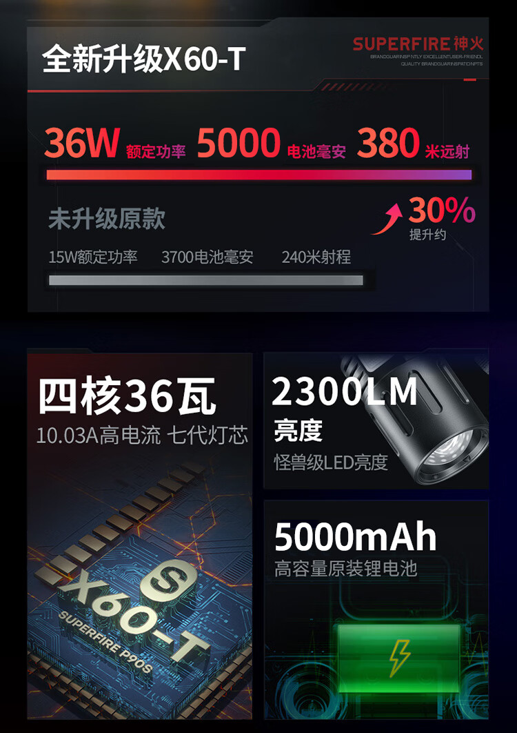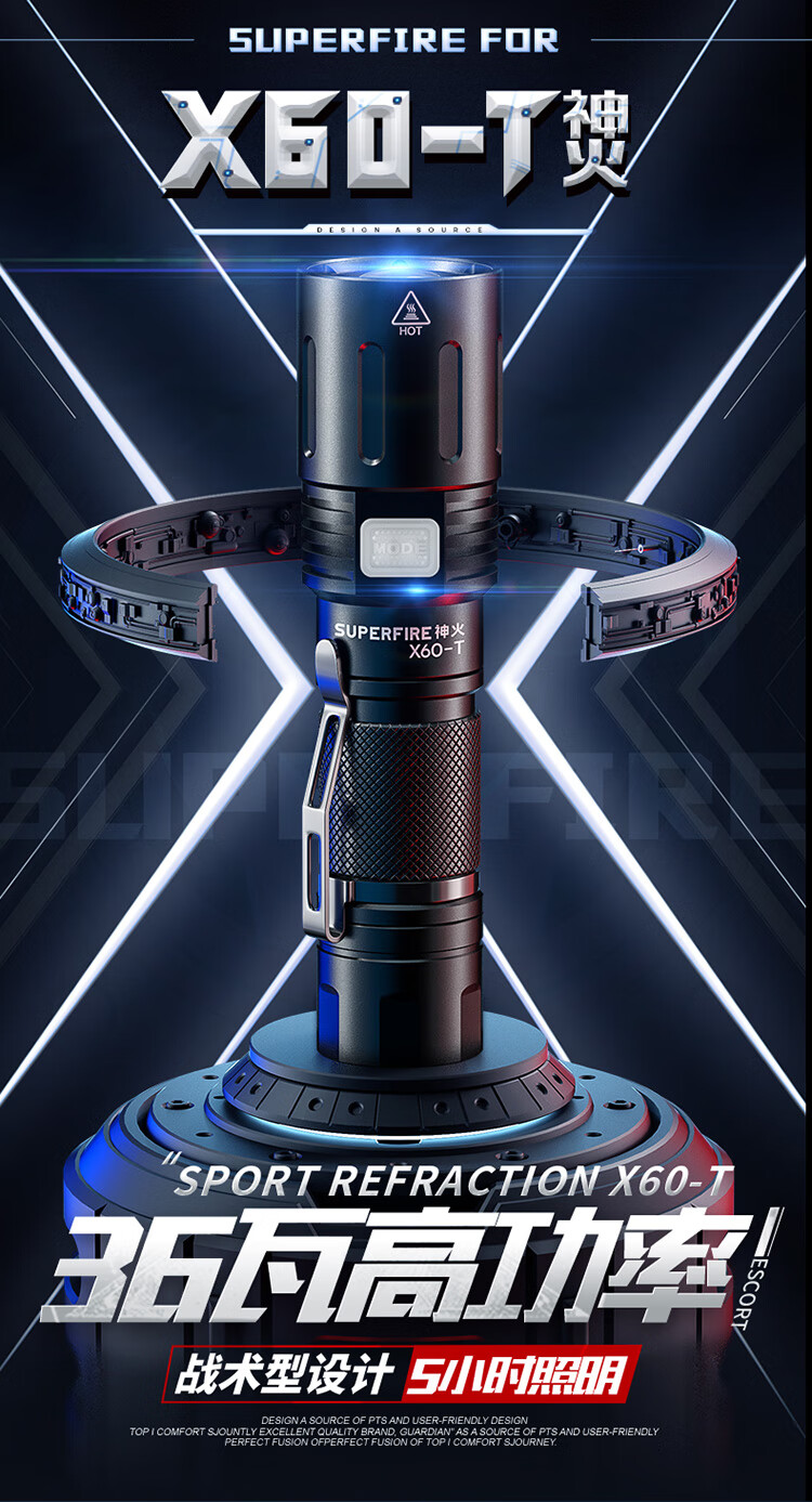 神火(SupFire)X60-T手电筒强光手电筒远射超亮长续航军户外专用便携巡逻应急灯
