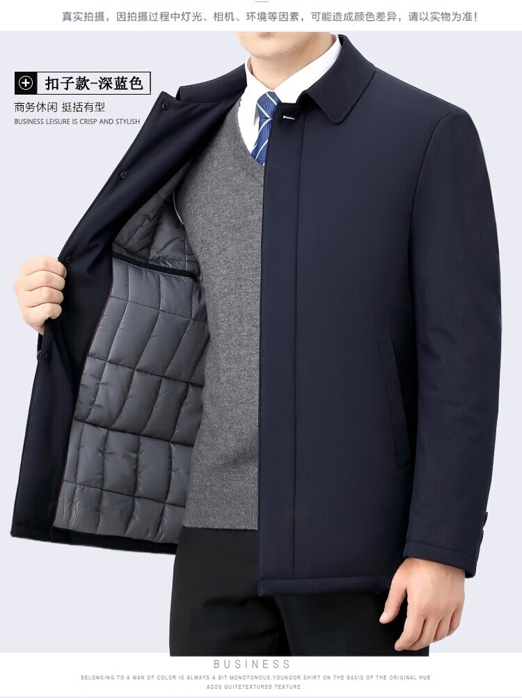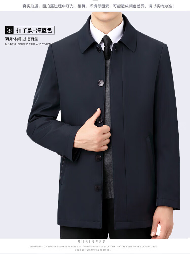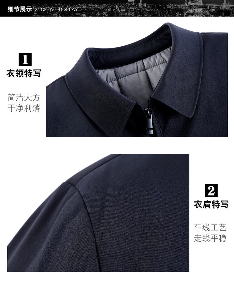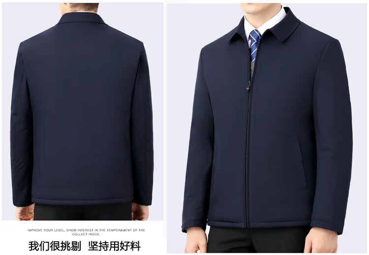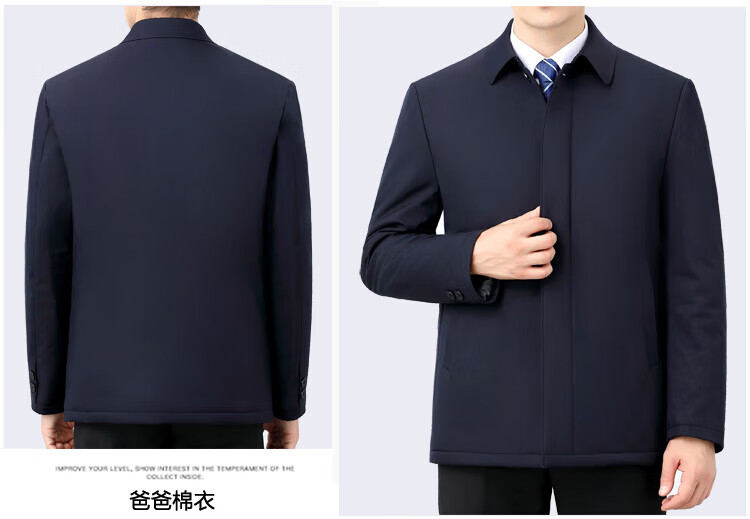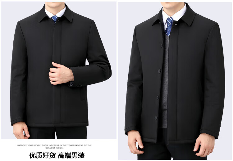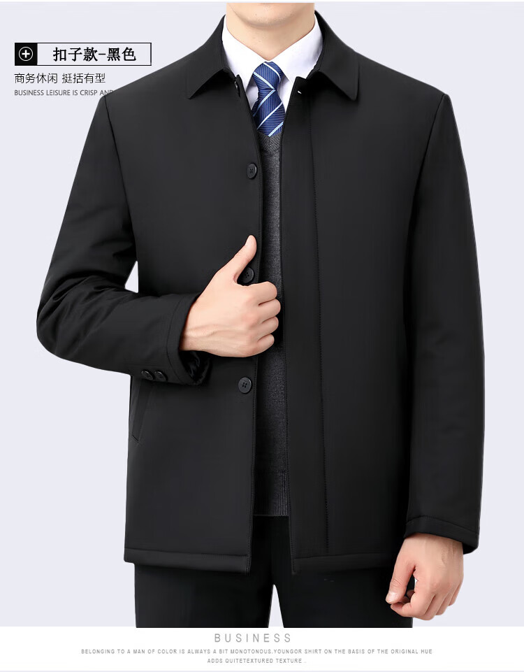 中年棉衣男士夹棉外套中老年爸爸装秋冬季加厚行政夹克薄棉服棉袄 【纽扣款】黑色/加棉 2XL 【建议体重130斤-150斤】