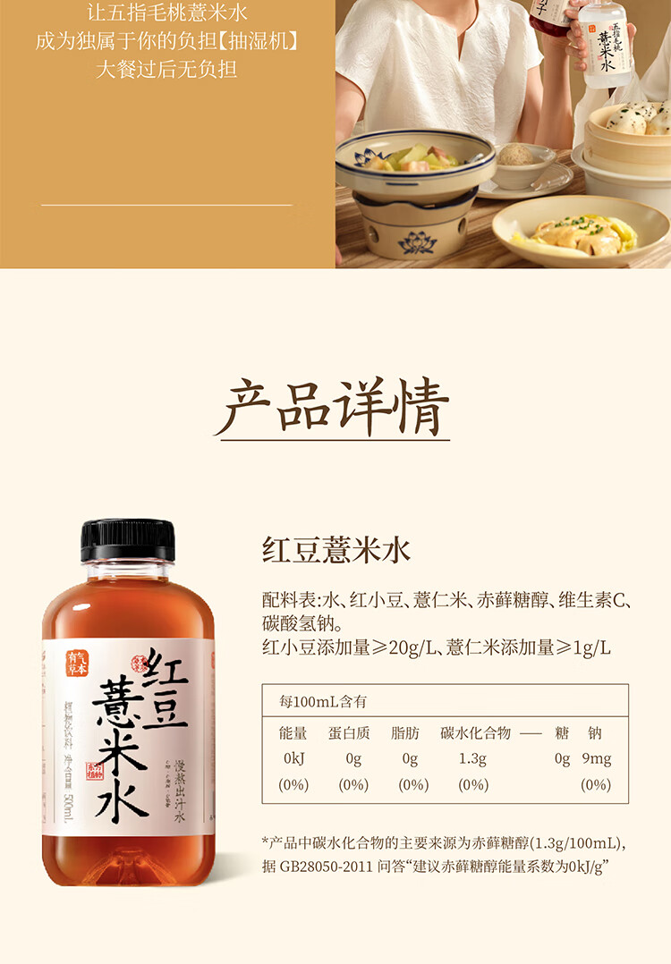 果子熟了 有气草本 红豆薏米水 0糖0脂肪0能量 500ml*15瓶 整箱 养生水