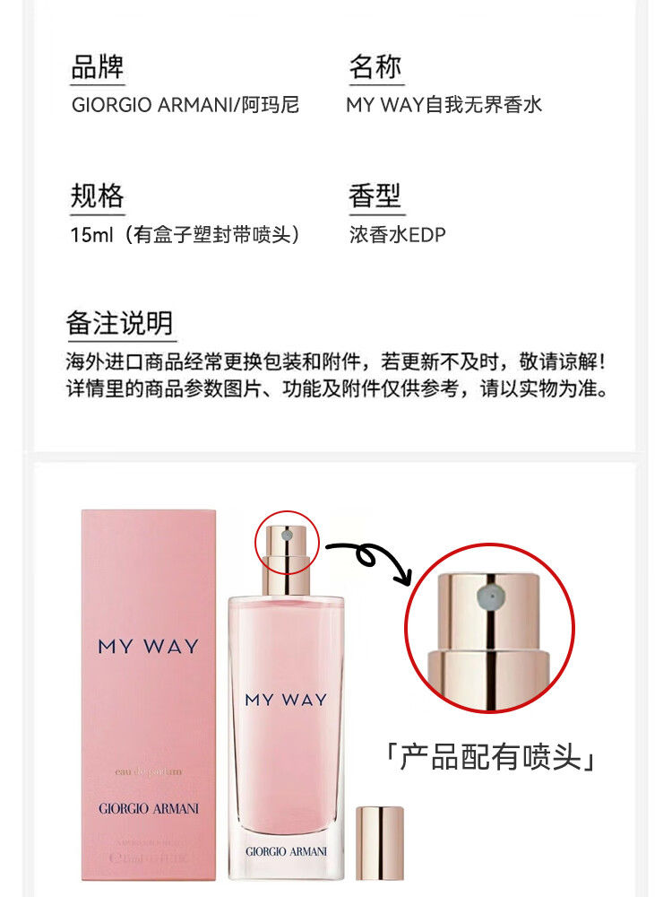 阿玛尼(ARMANI)MYWAY自我无界女士浓香水15ml有盒子塑封带喷头生日新年礼物