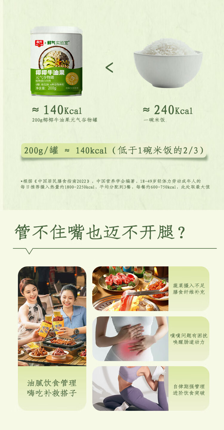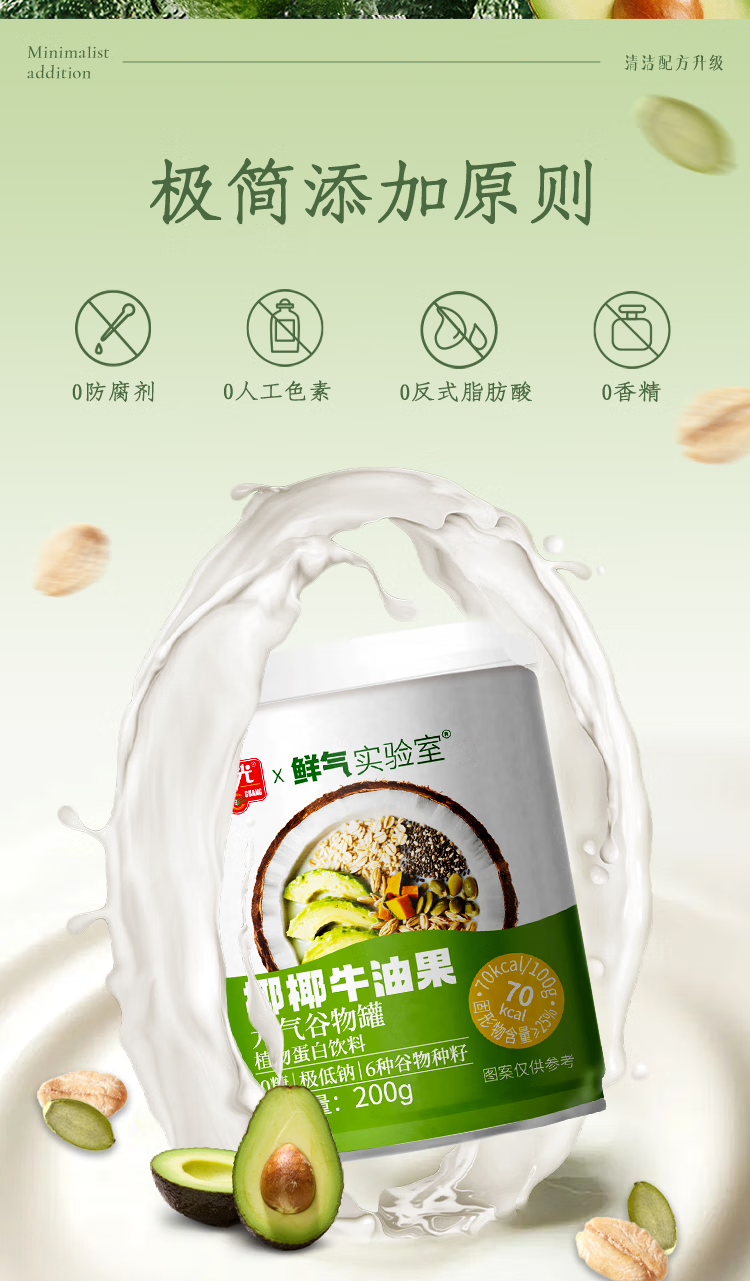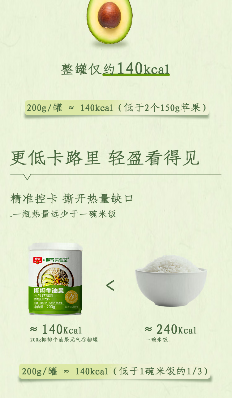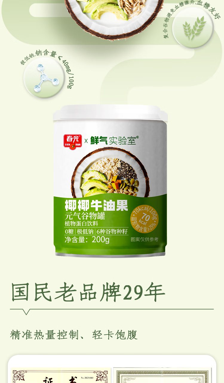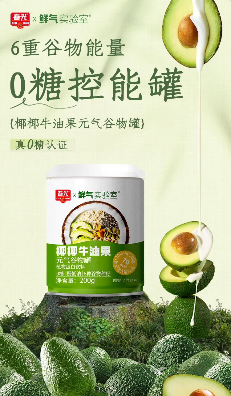 春光【代餐也好吃】椰椰牛油果元气谷物罐 饱腹0白砂糖轻食营养好喝 椰椰牛油果200g*18(18日成功蜕变)