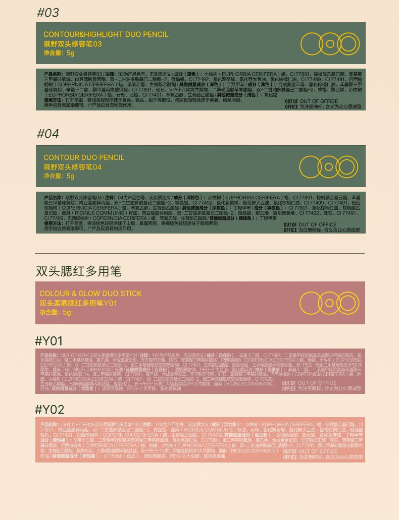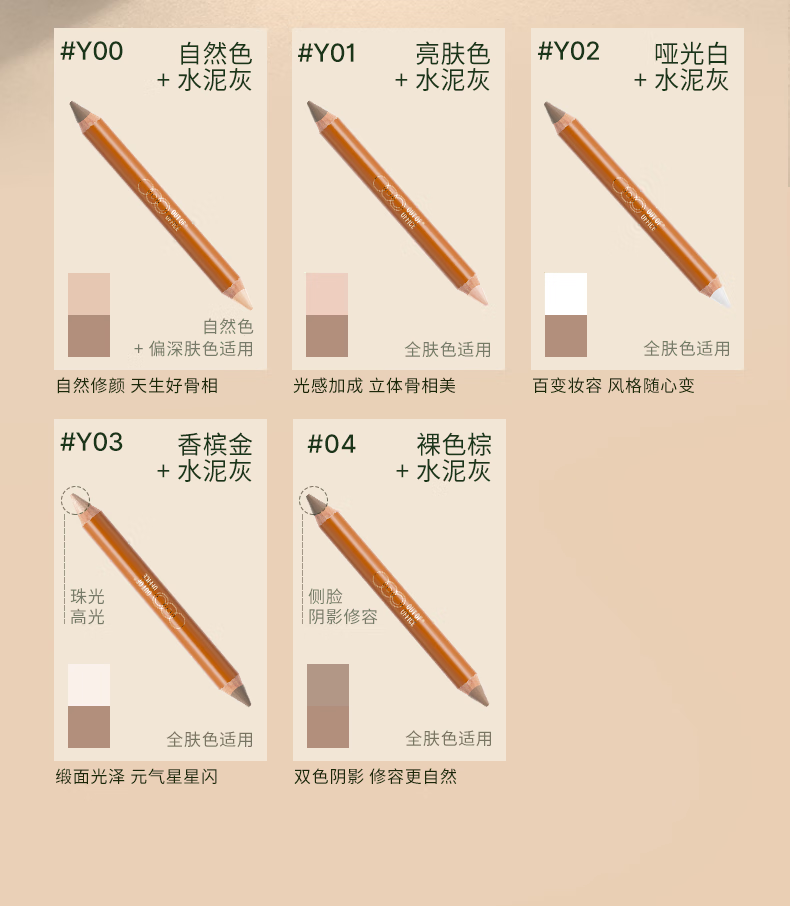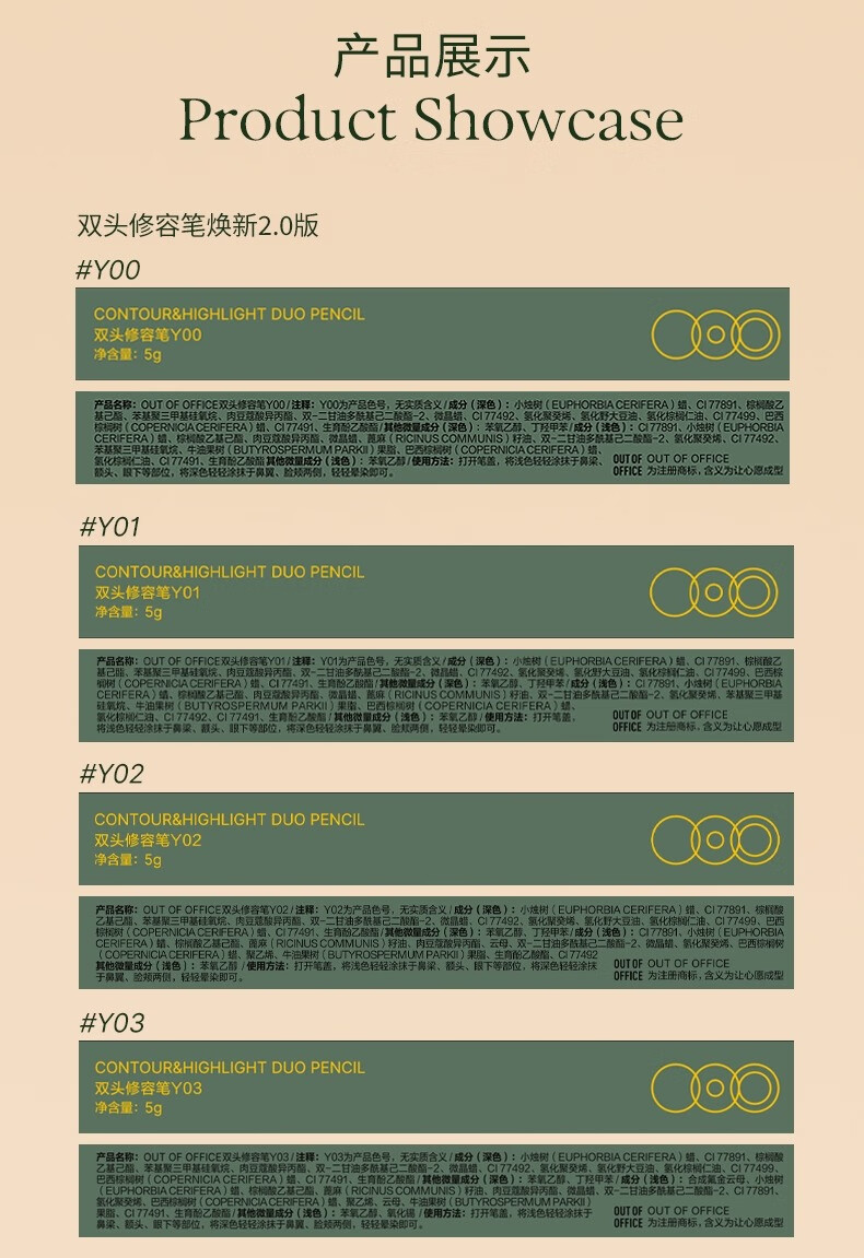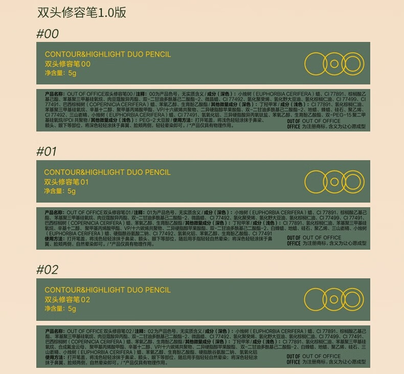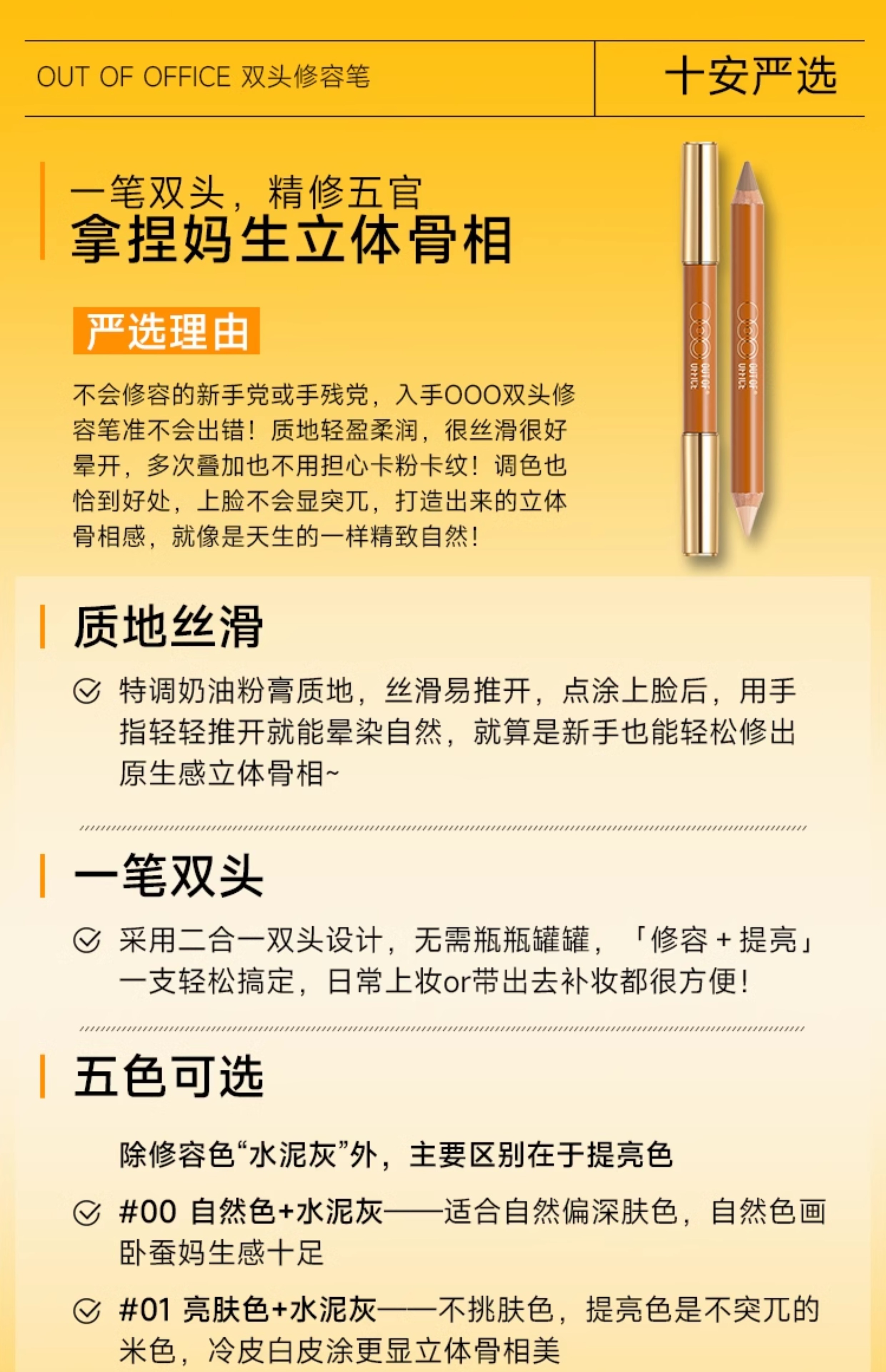 OUT-OF-OFFICE程十安OOO双头修容笔阴影高光一体人中笔女提亮卧蚕鼻影阴影笔 #00 自然色+水泥灰
