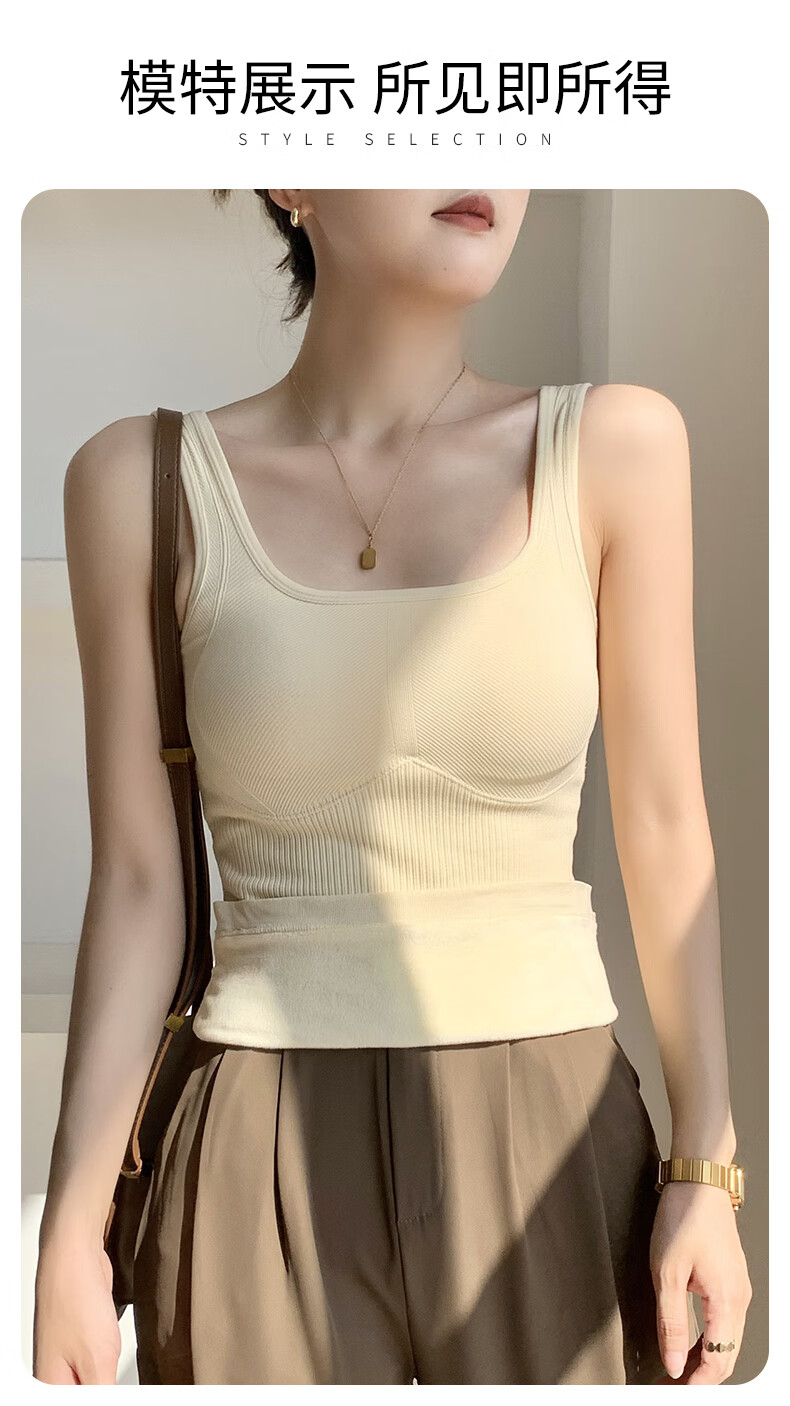 俞兆林保暖背心女加绒加厚带胸垫冬季防寒吊带美体打底衫内搭内衣女肤色
