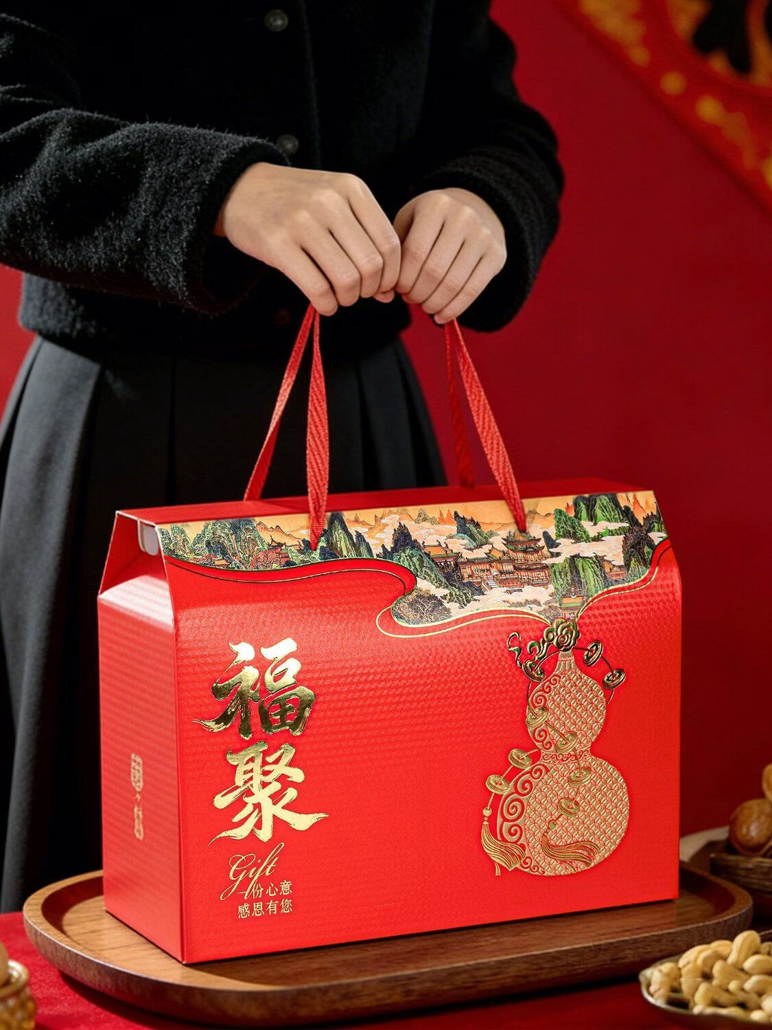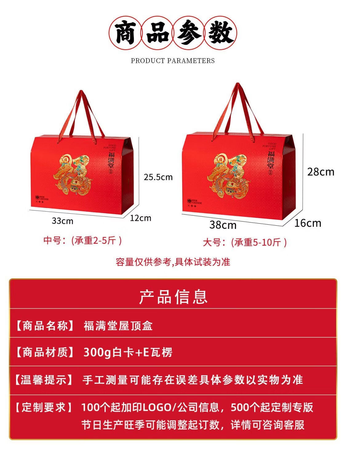 咏幻2026年货包装空礼盒通用春节礼品盒熟食土特产高档创意礼盒批发 福满堂 [中号]10个空盒