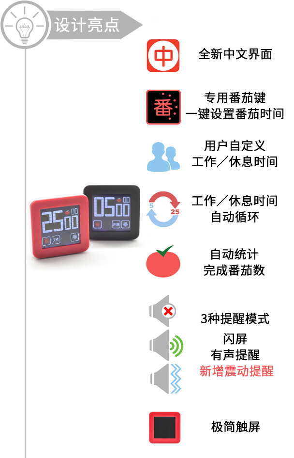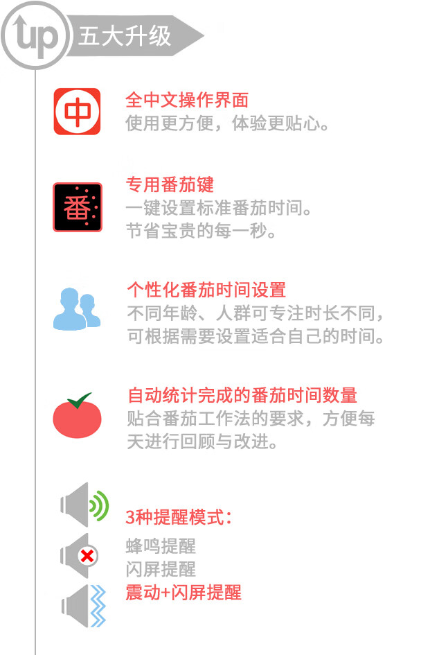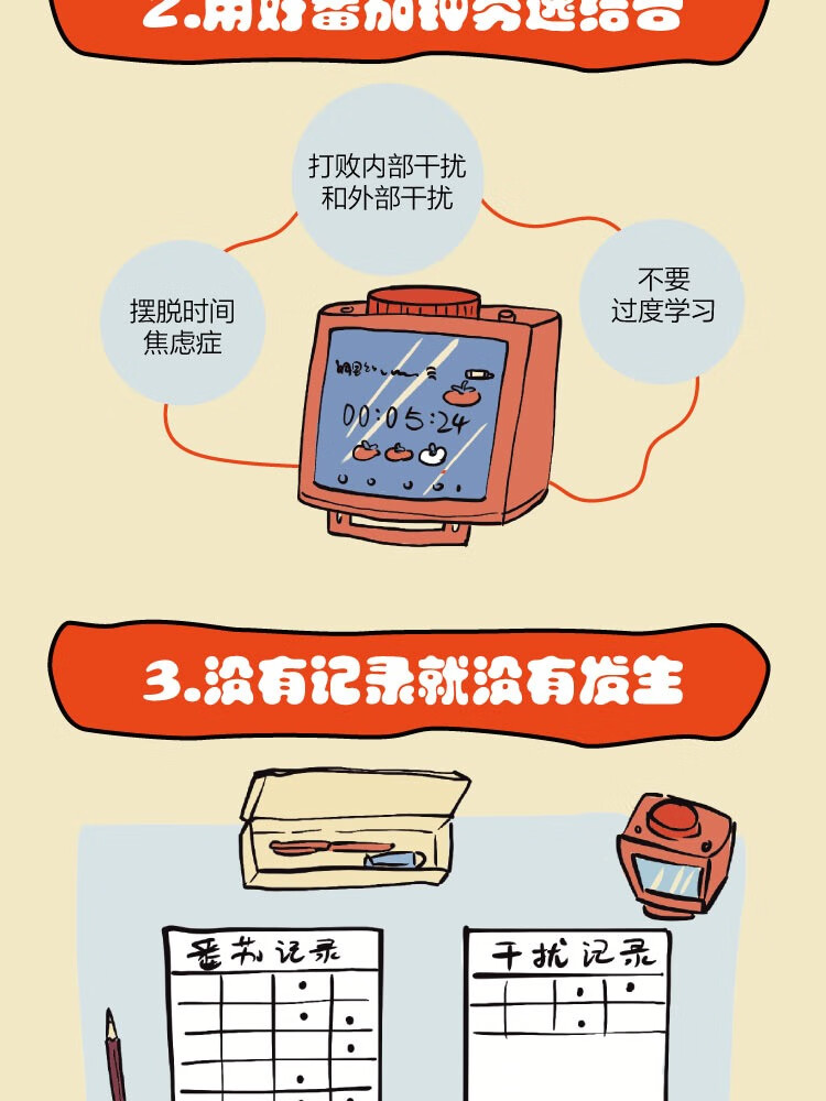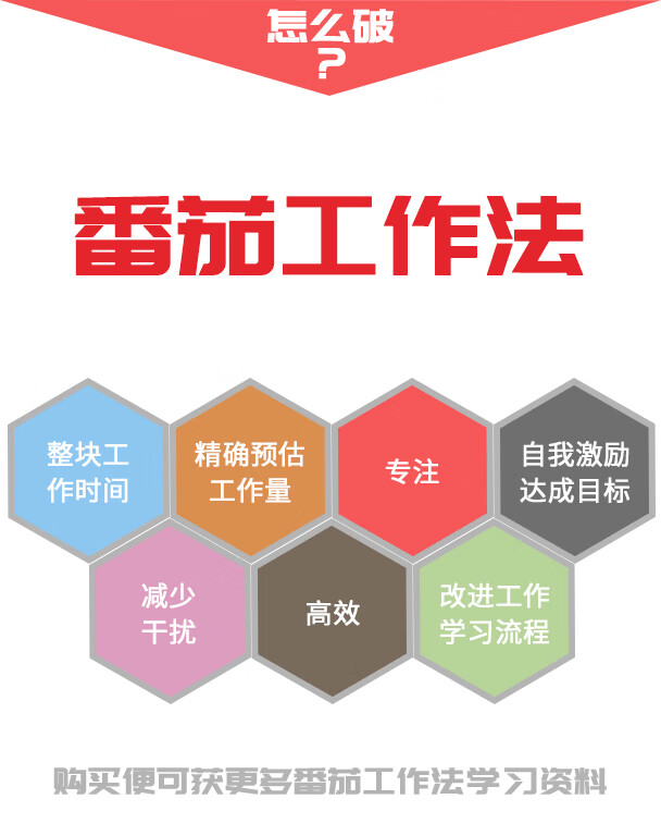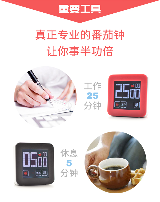 番茄5S生活番茄钟工作法倒计时器可视化时间管理神器定时器学生学习专用儿童自律高考研静音提醒器厨房 番茄学习法+红色经典+表+休息卡