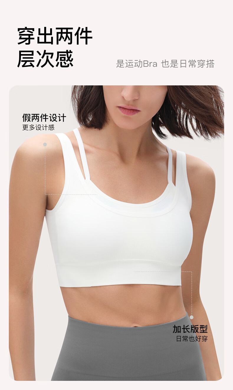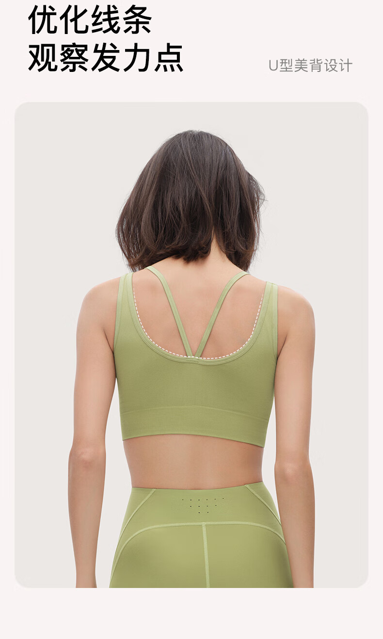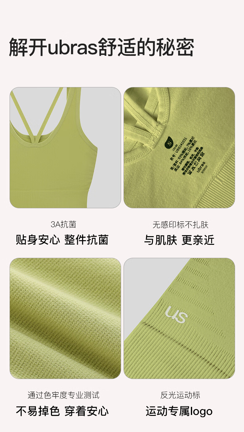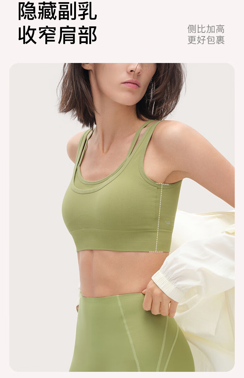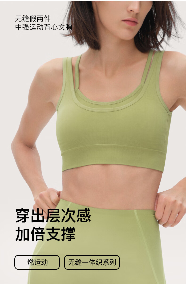 ubras无缝假两件中强运动背心文胸内衣女无钢圈美背运动胸罩 棕榈叶色 S 70A/70B/70C