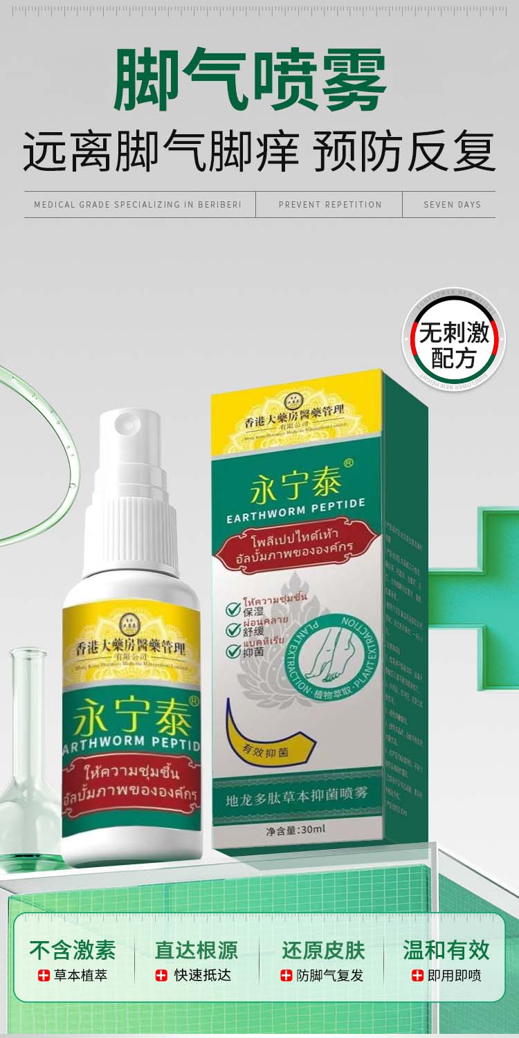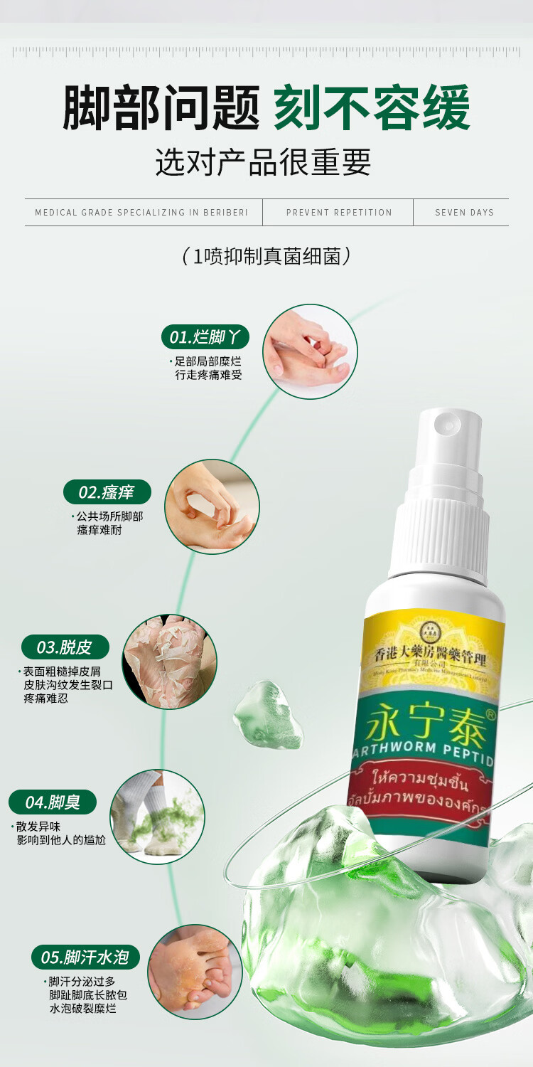 地龙多肽草本抑菌脚气喷雾脚臭止痒脱皮手足喷雾护理剂膏H1A 【体验装】1瓶(贵在运费/不推荐)