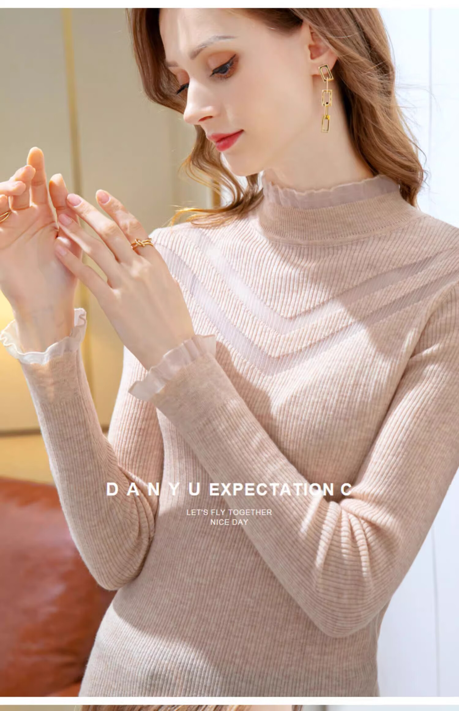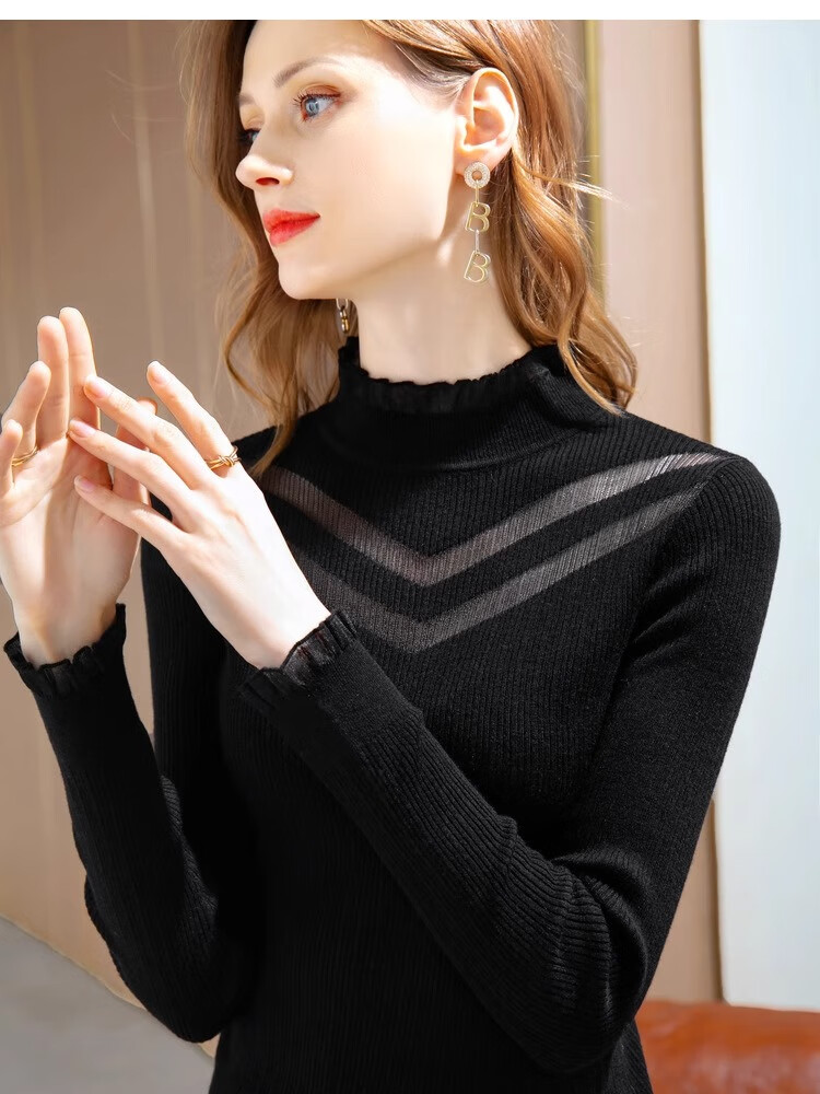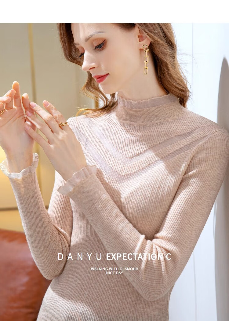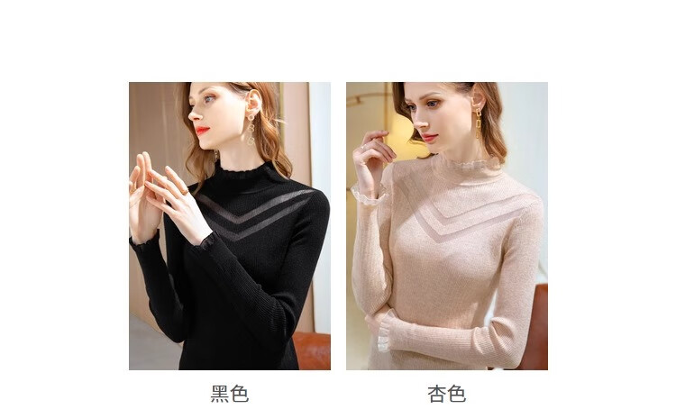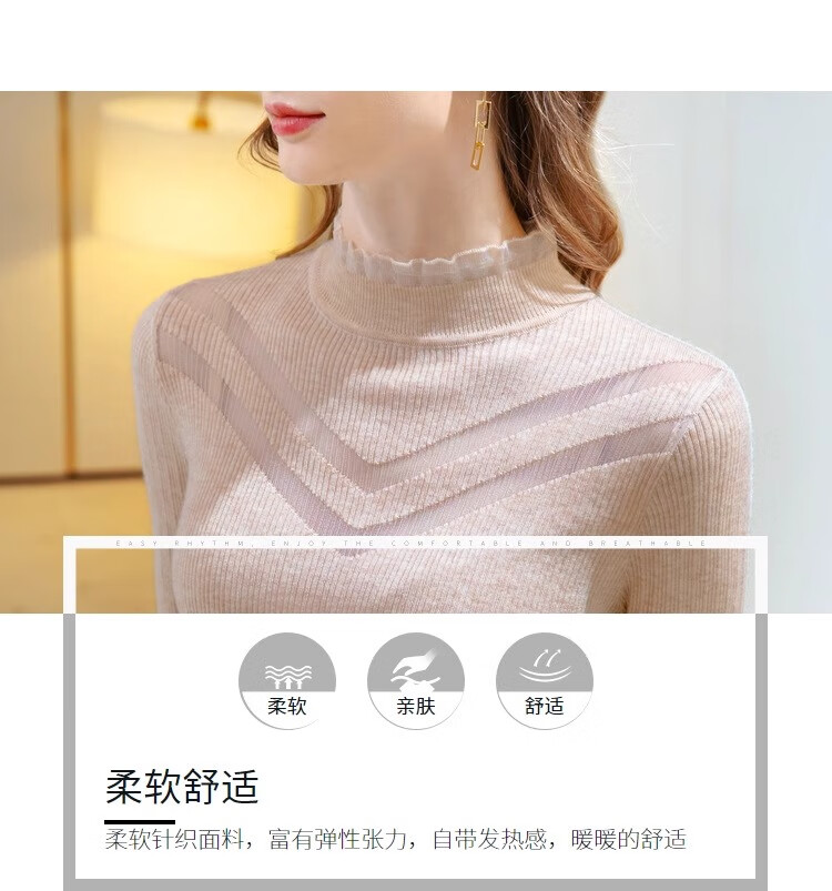锦裳淑打底衫女内搭针织衫打底秋冬新款半高领洋气长袖t恤 杏色 均码