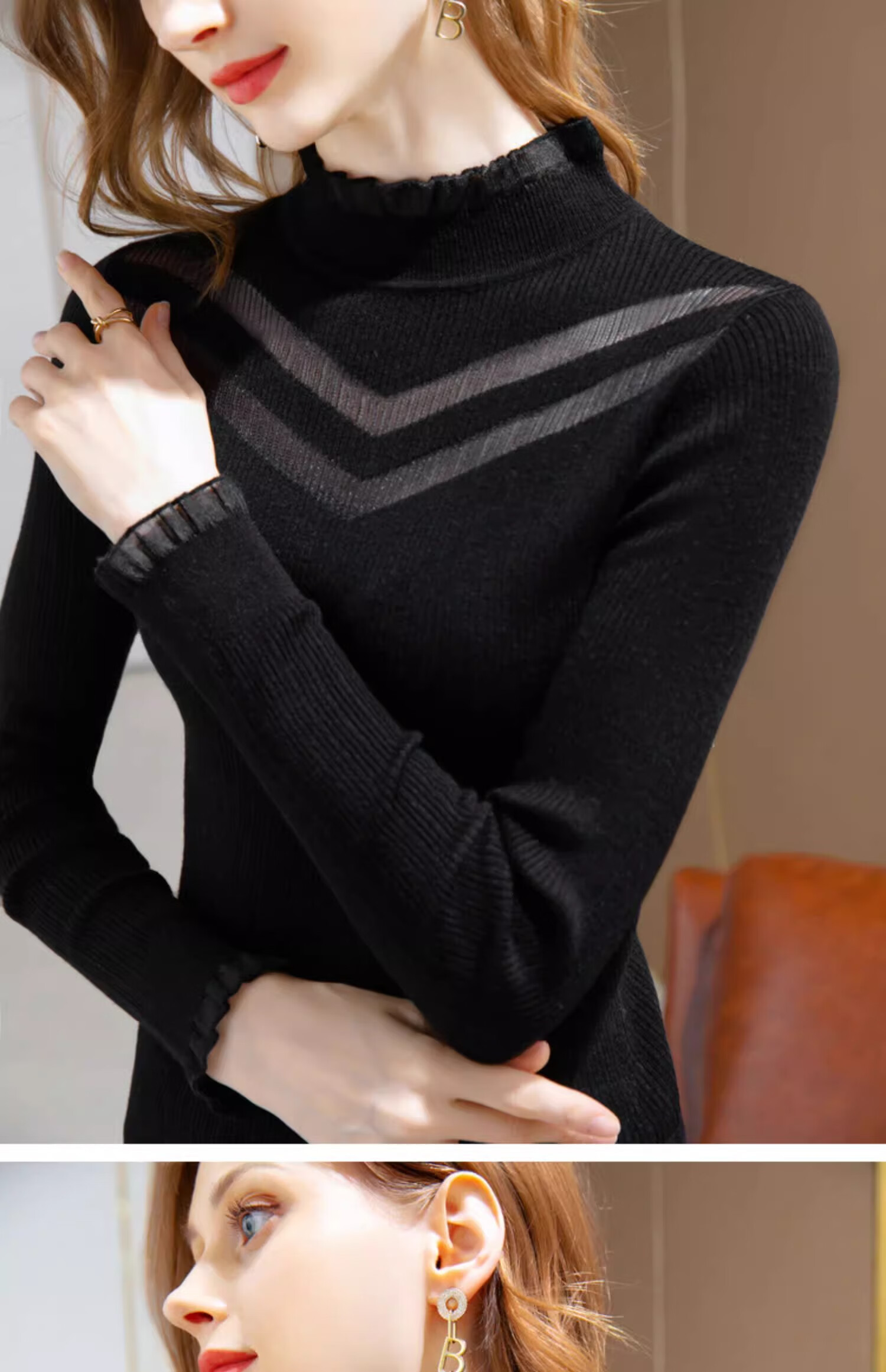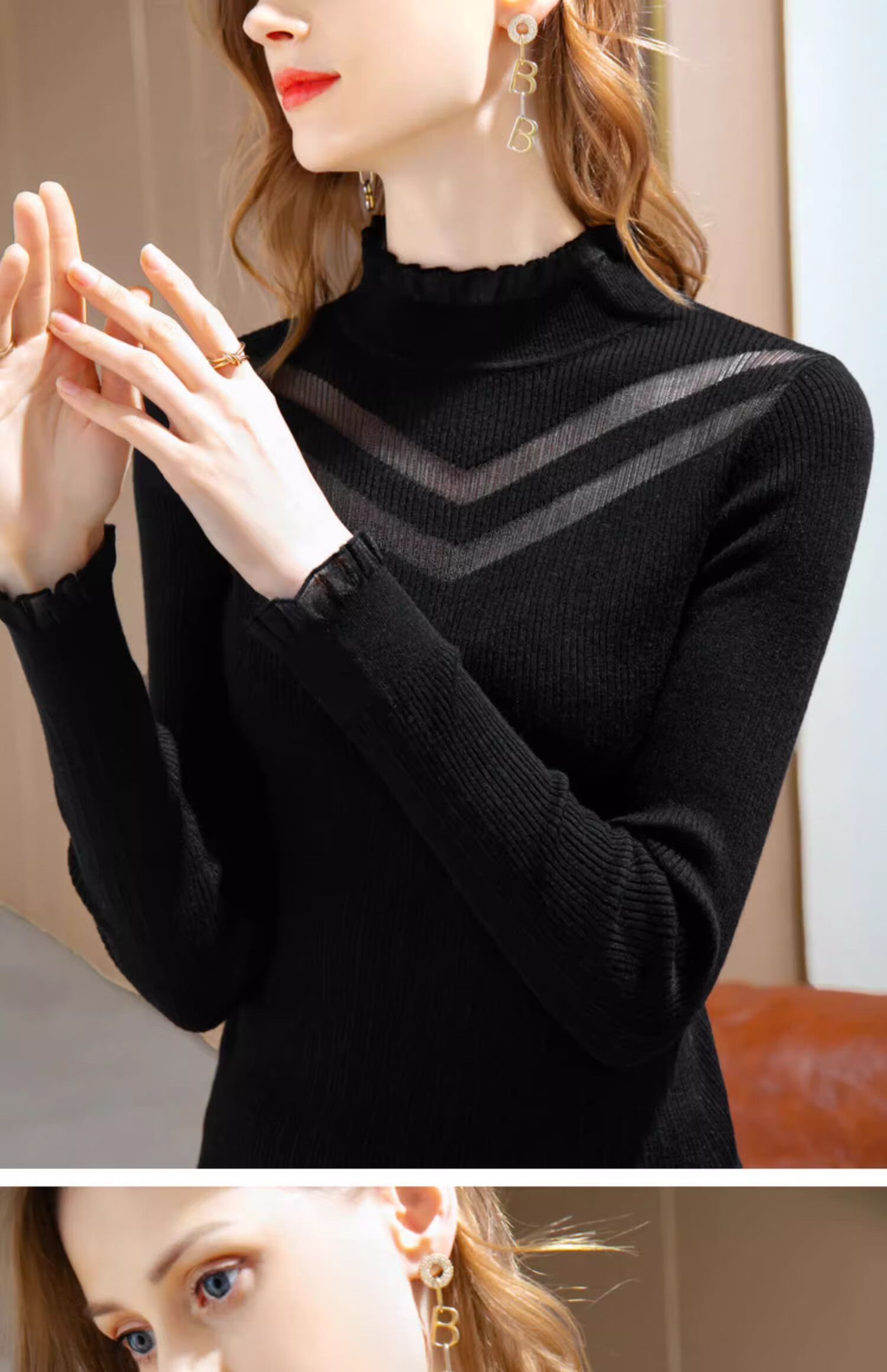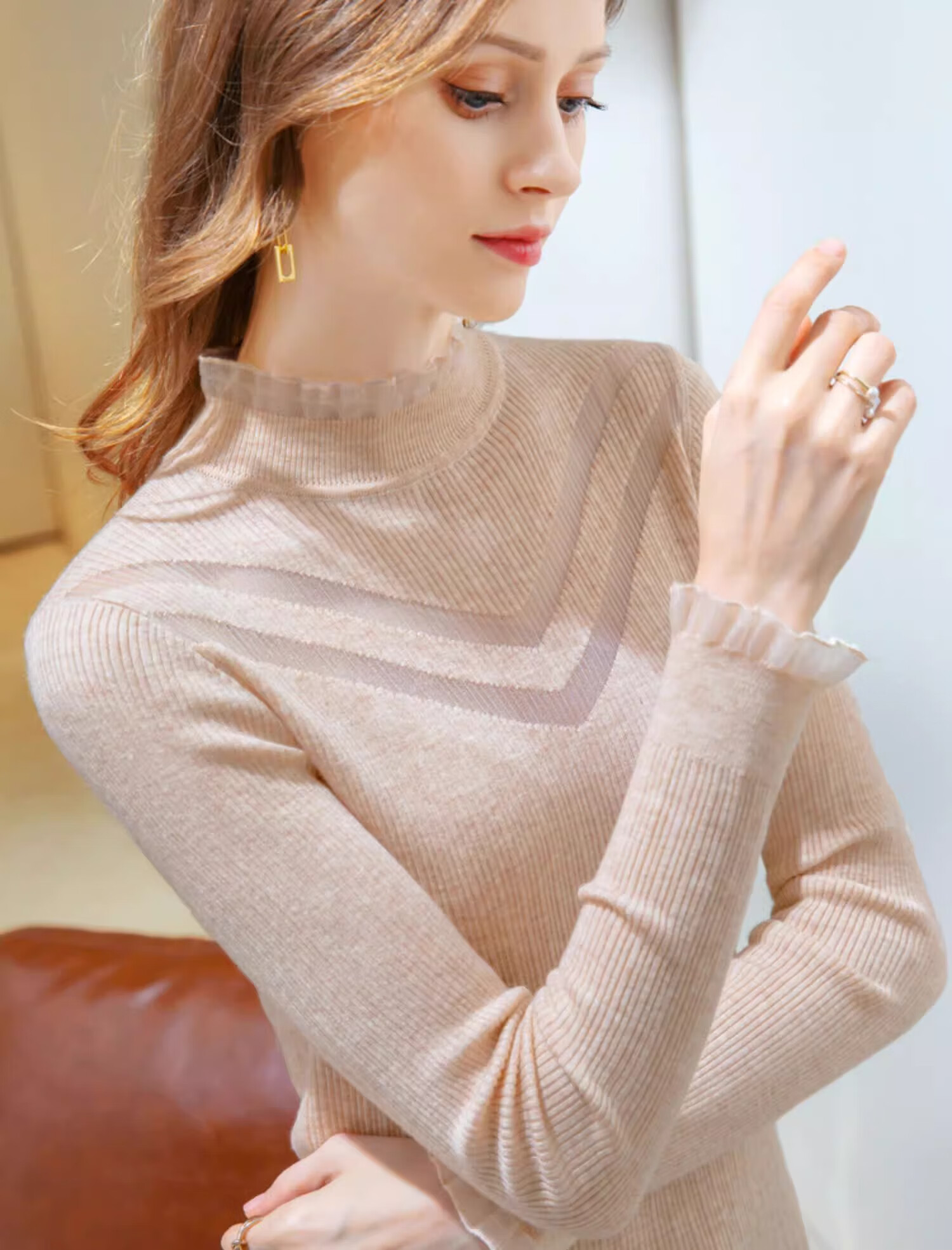 锦裳淑打底衫女内搭针织衫打底秋冬新款半高领洋气长袖t恤 杏色 均码